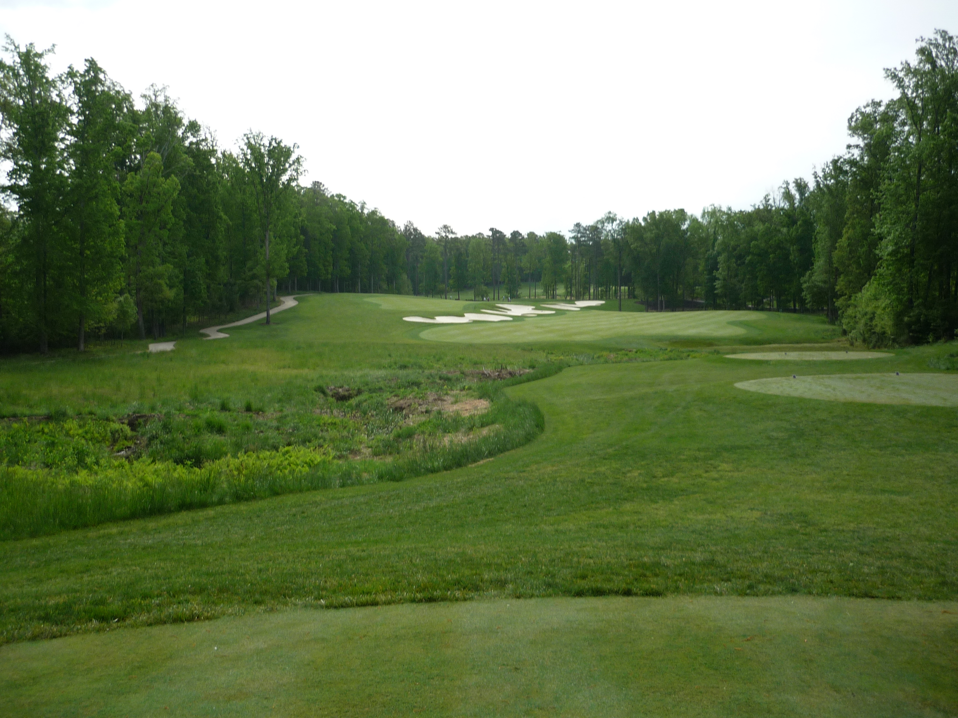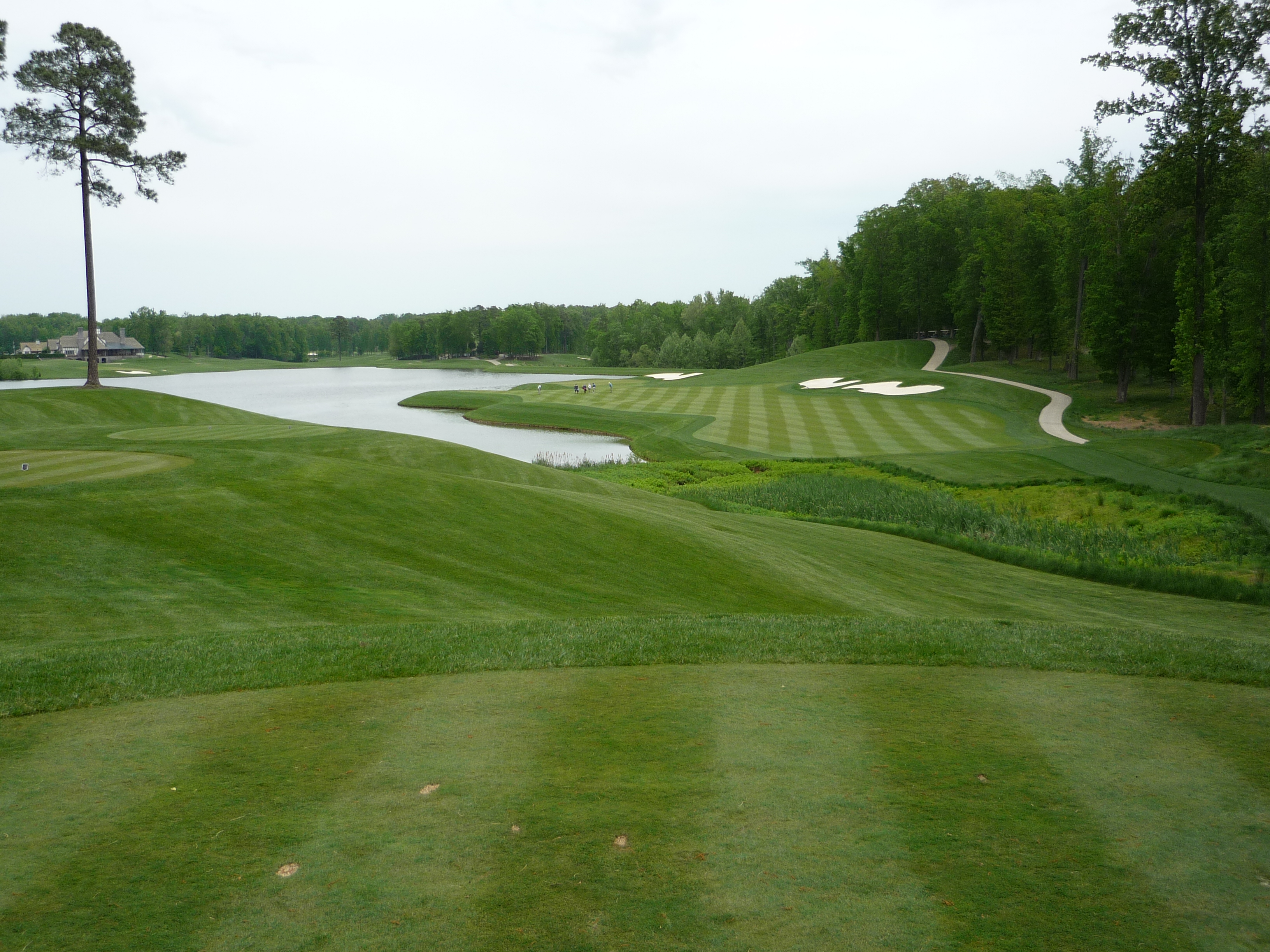 I would call sixteen the signature hole at Kinloch. It is a truly beautiful hole and I can only imagine what it looks like in the fall. A nice draw down the middle works well here.