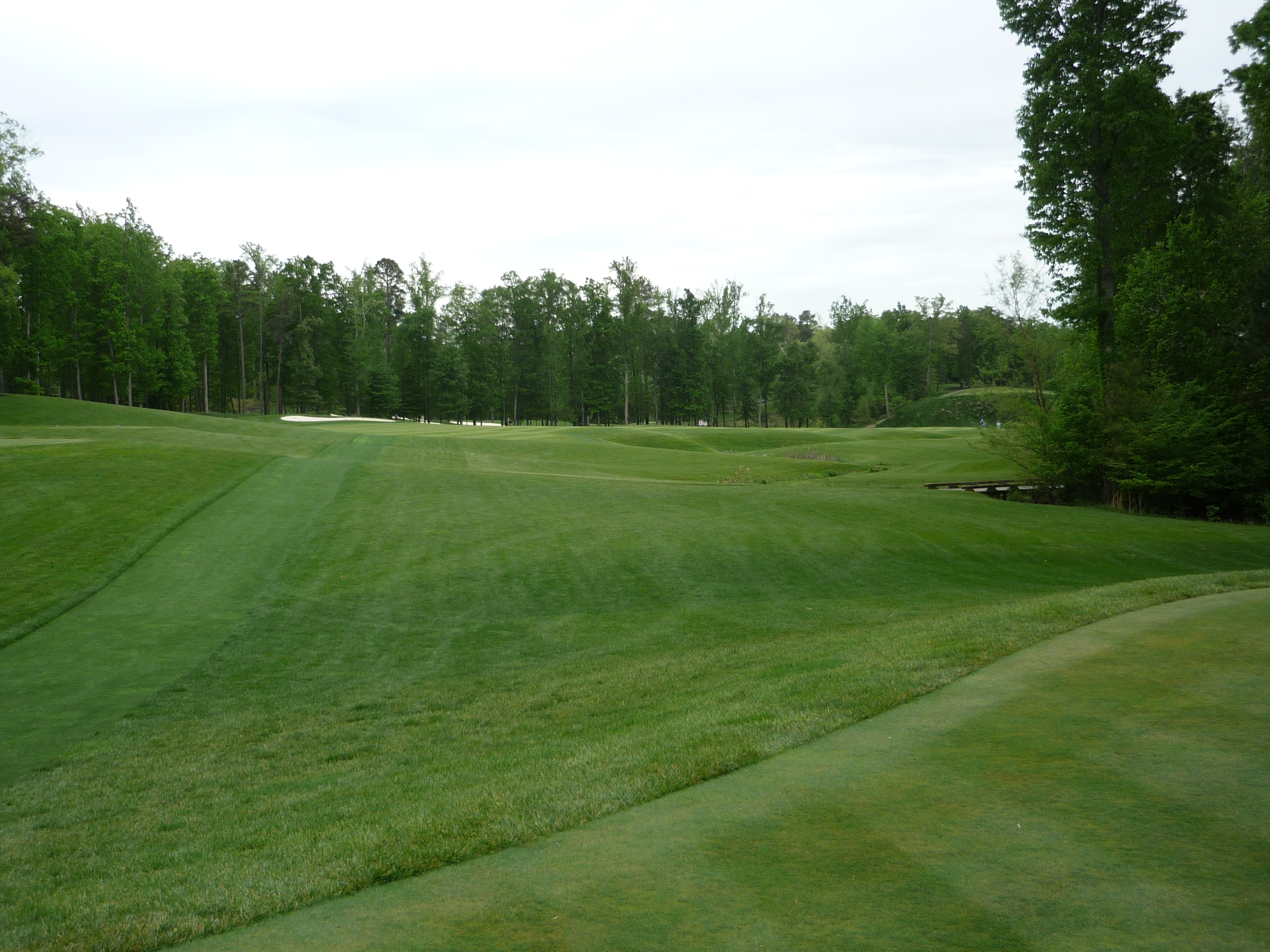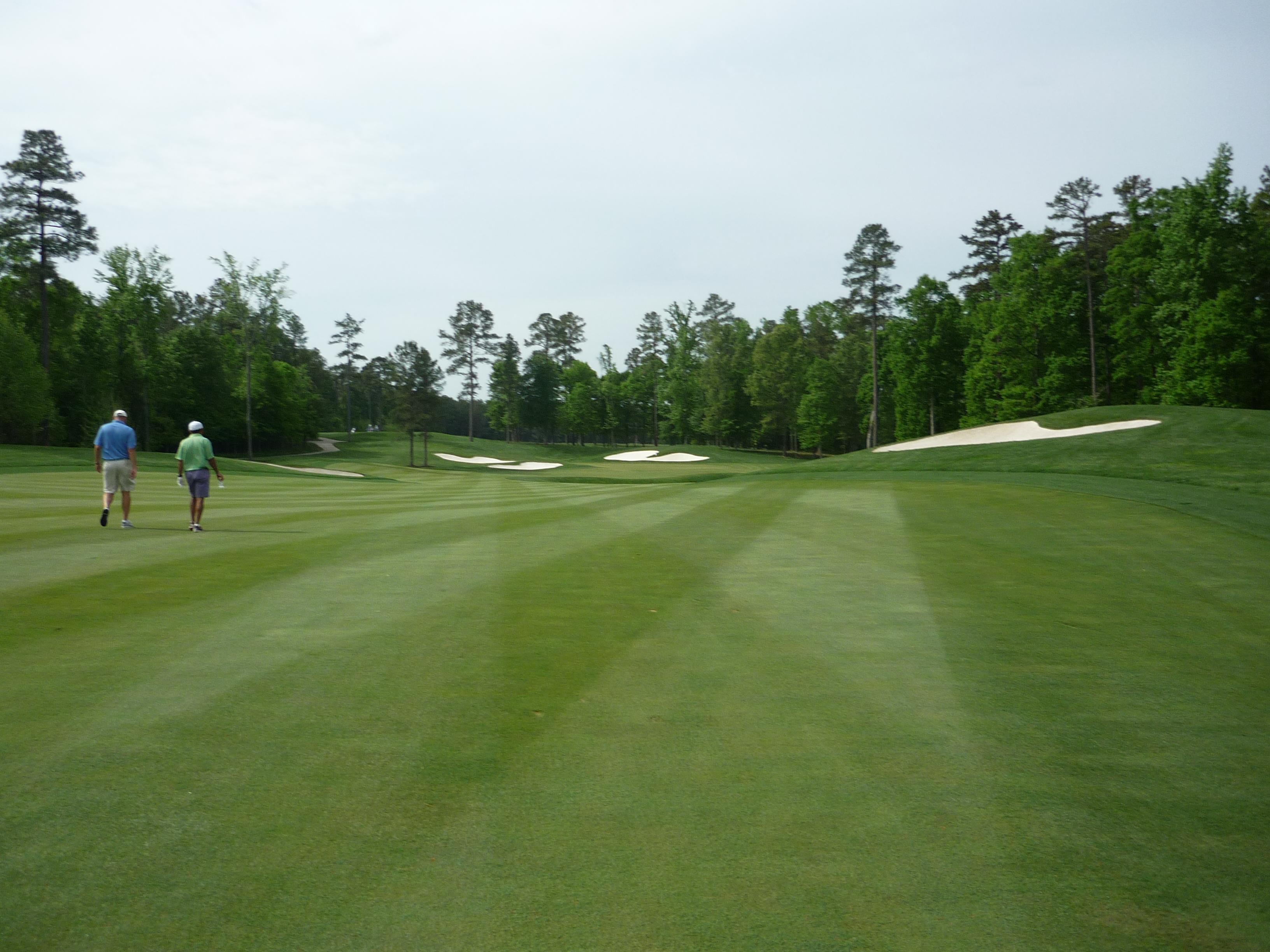 Here is a photo of the second shot. This is what I mean by playing shorter. It’s all downhill to the green and firm. I got my 210 yard club just short of the green from about 240 yards.