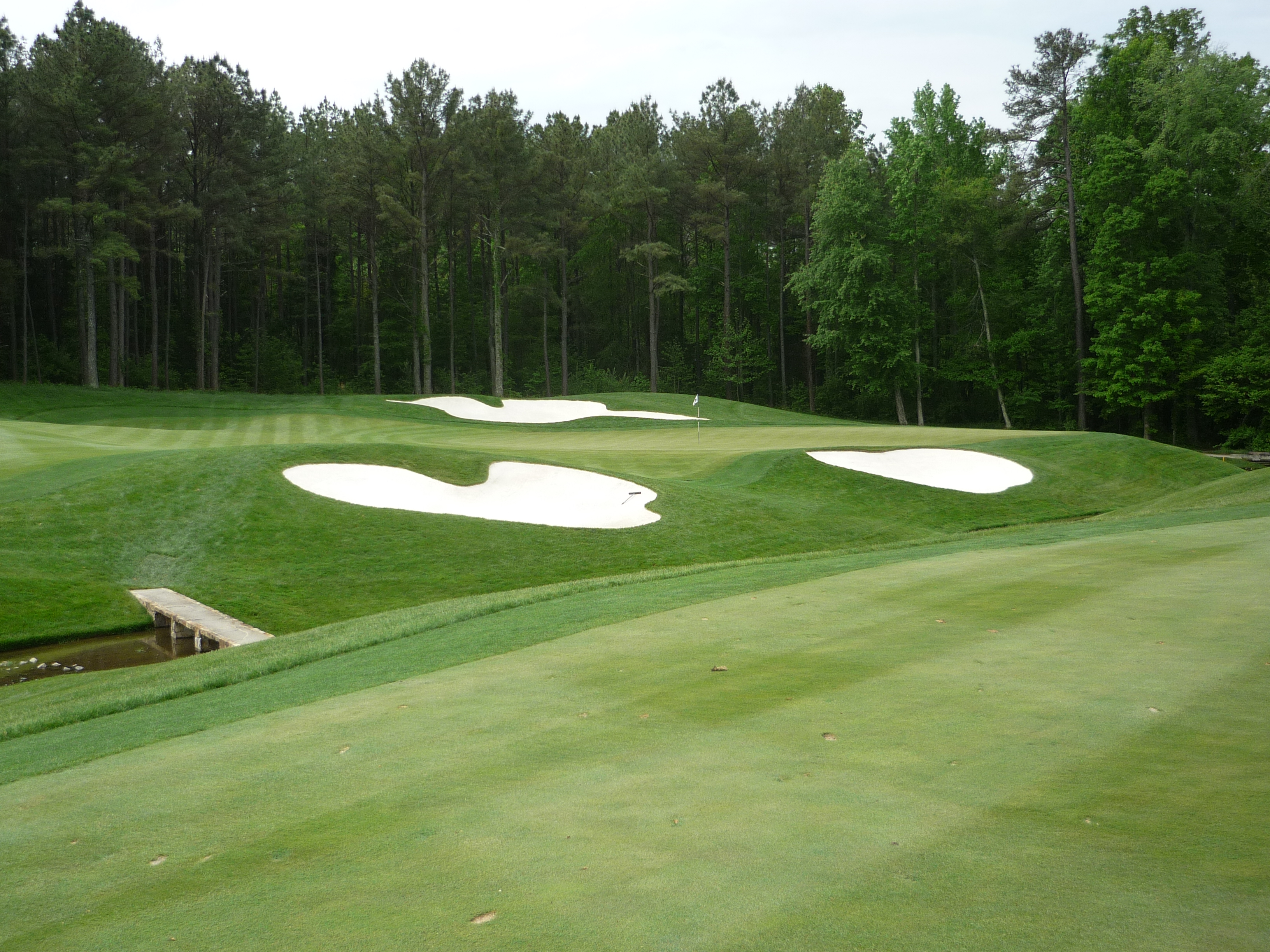 The green, below, has an hourglass shape and some bunkers to avoid.