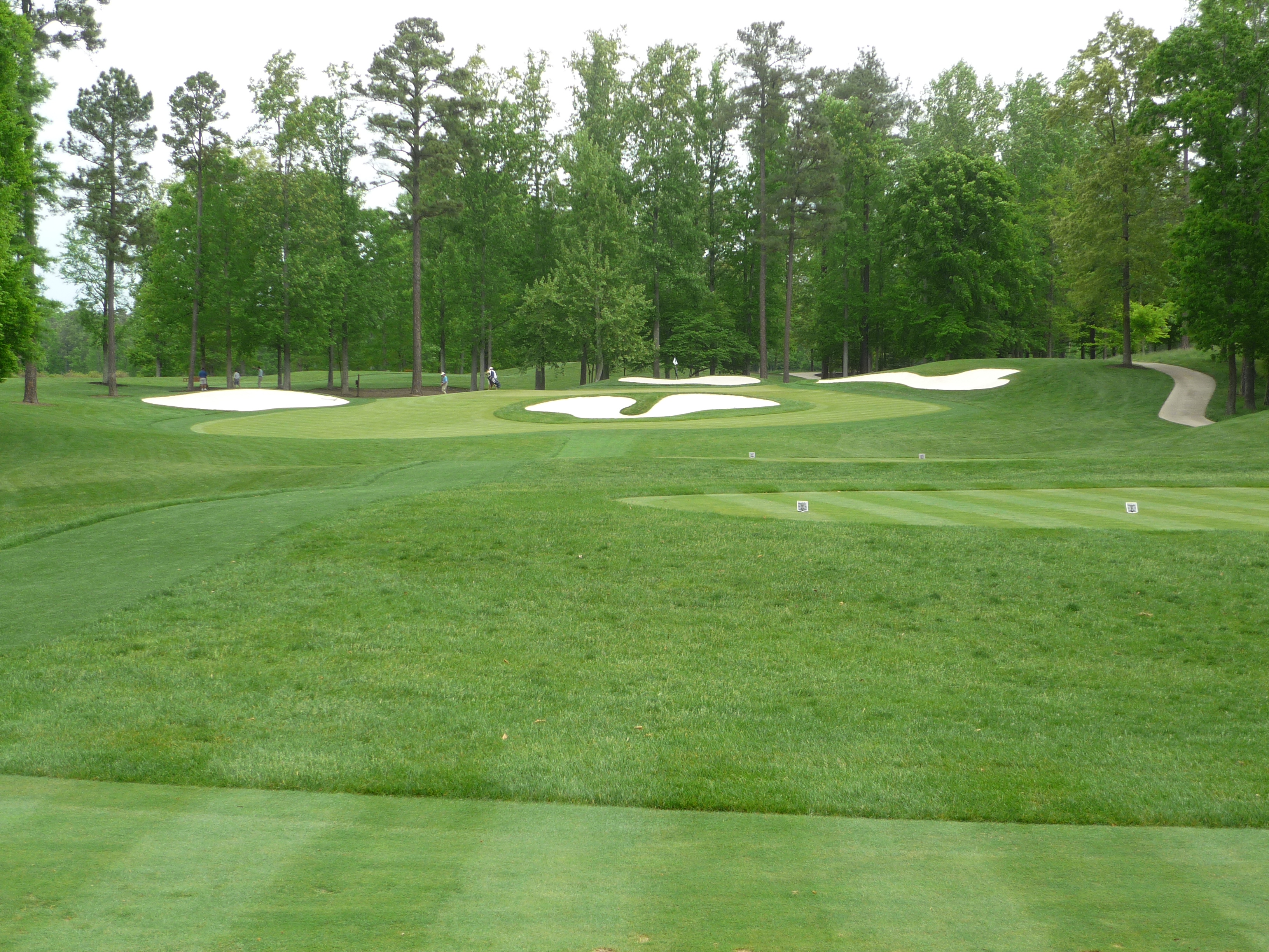 This hole plays much shorter than the yardage. A bomb down the middle is all you need here.