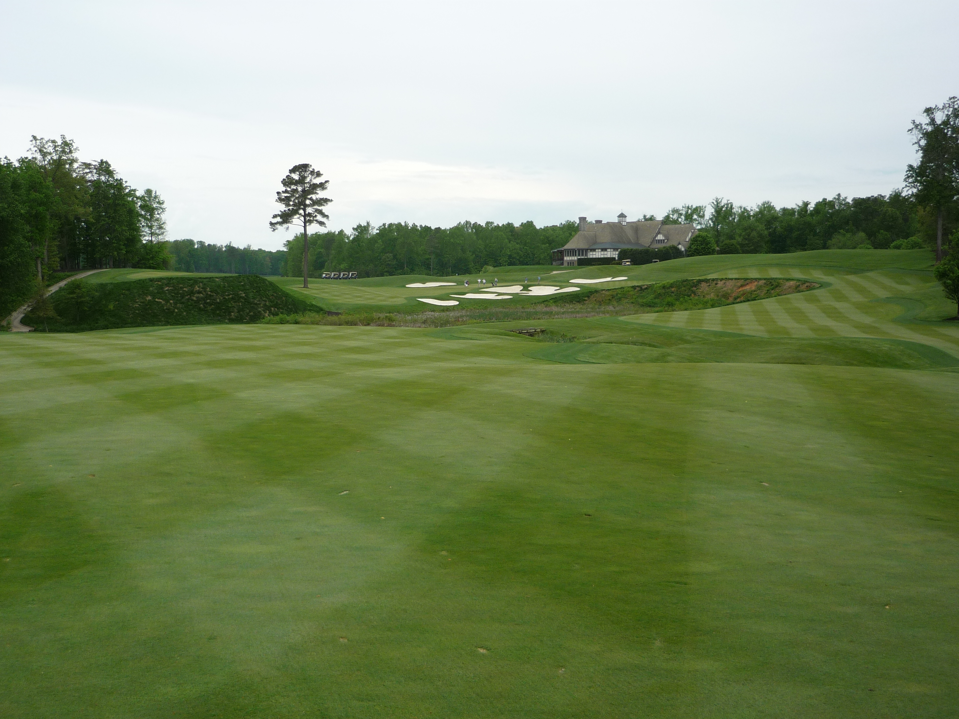The final hole is an intimidating shot if your miss is left. Take a deep breath and pipe one down the middle. The hole is downhill so you don’t have to kill it to have a reasonable second shot.