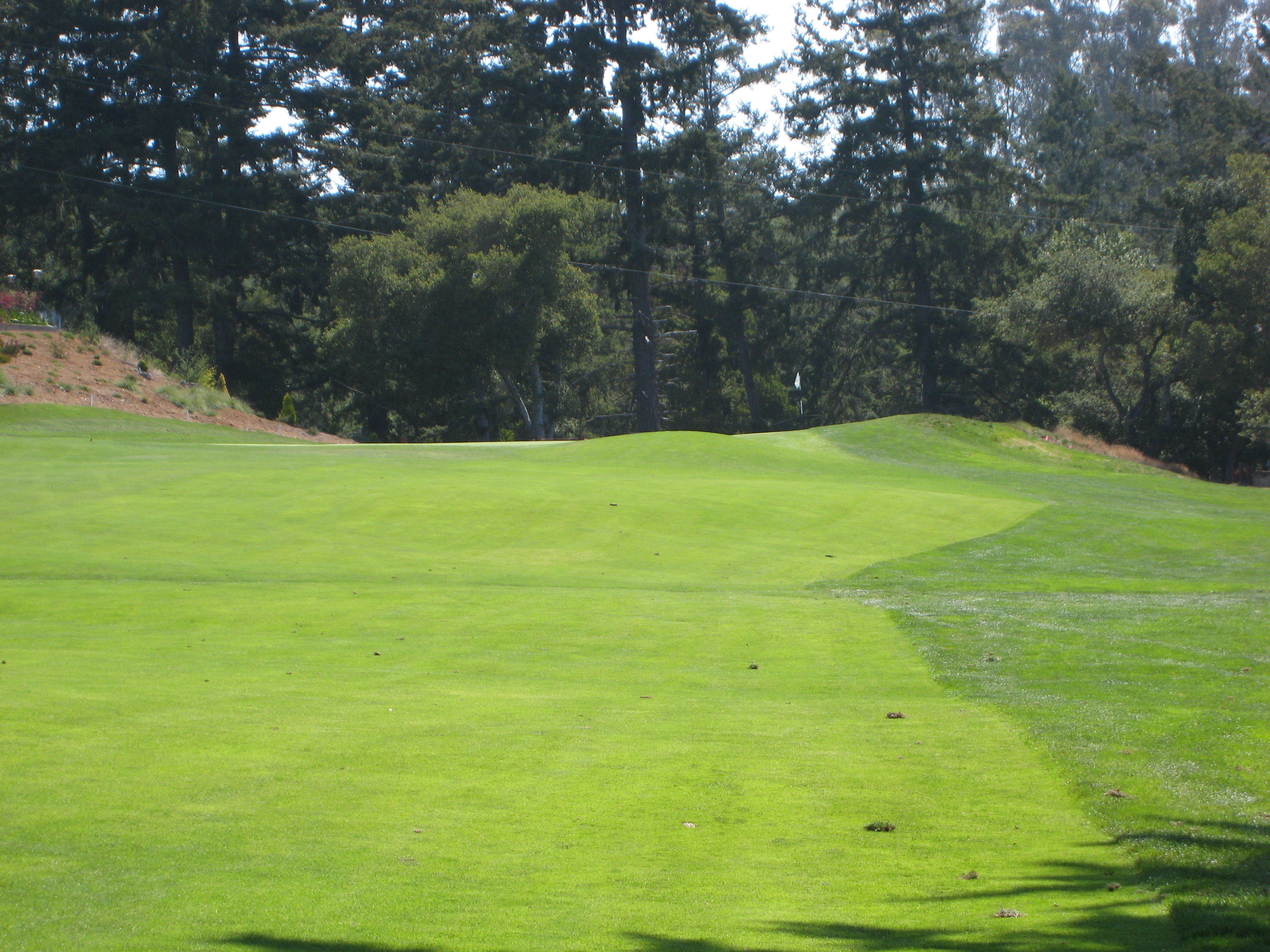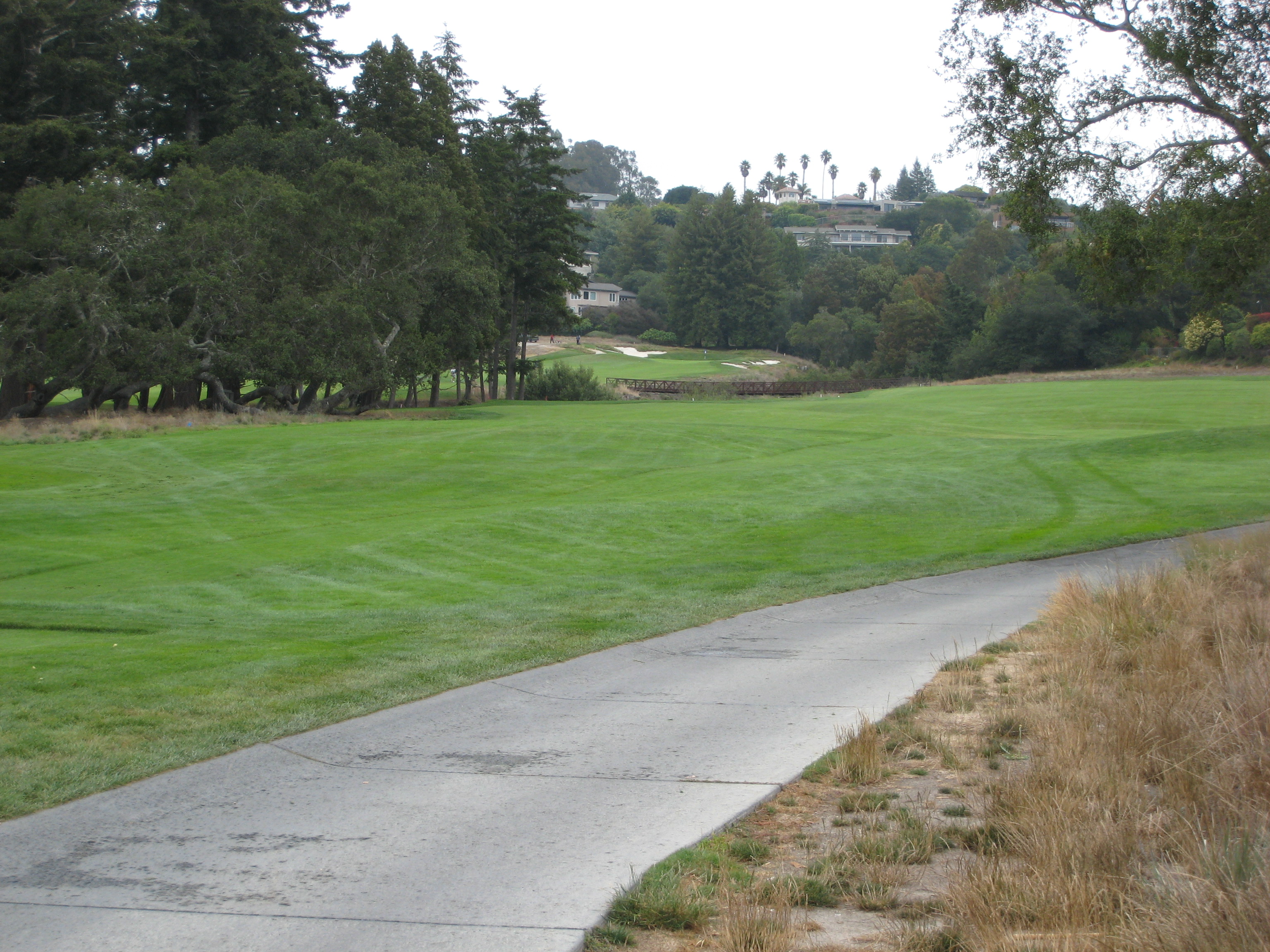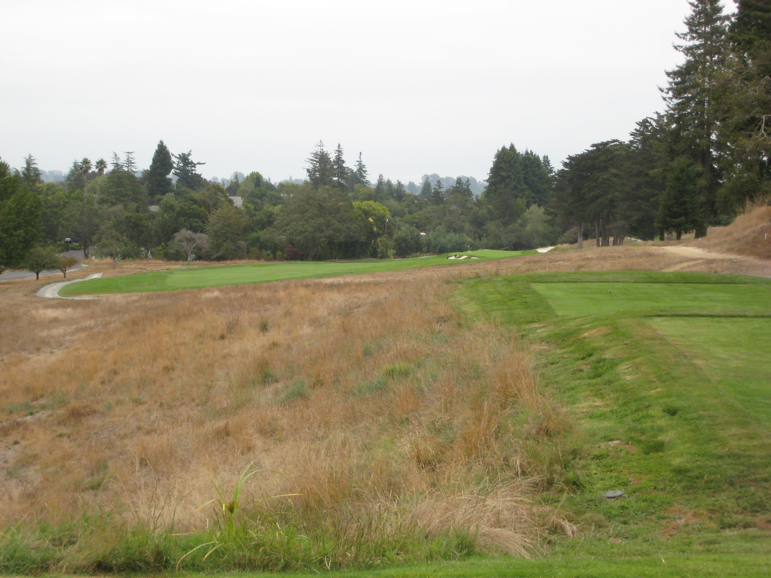 Aha! A downhill par 4, just what I needed. According to my partner, at the annual college tournament held here, they make this side of the hole out of bounds. I was a little confused. He said that since 11 and 12 run parallel, players would try and hit huge cuts down 11 and try to hit the green. He said it goes back to Tiger when he played at Stanford. Think about this if you get a chance to play it. For us mere mortals, a hybrid down the fairway mowing line is all you really need here.