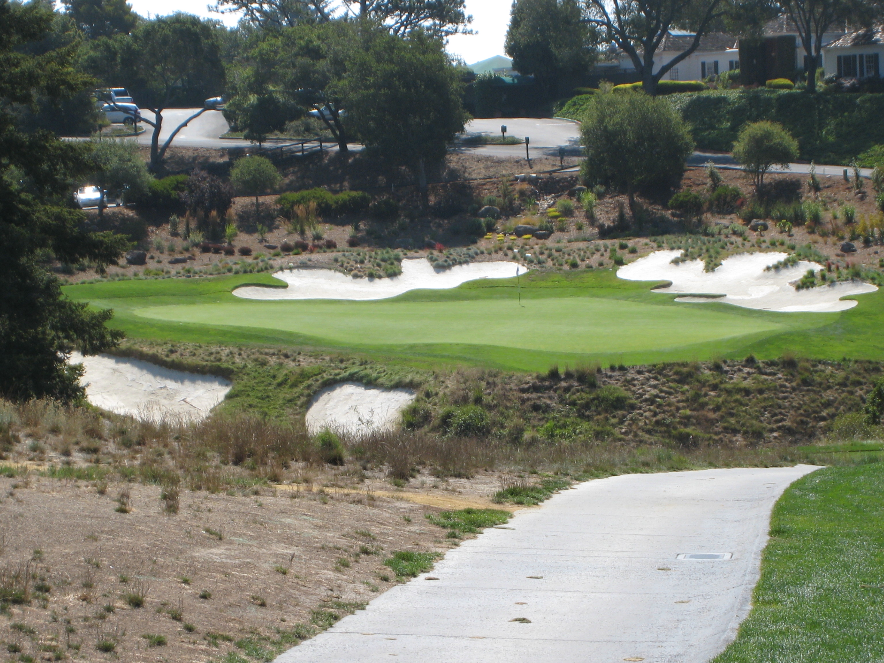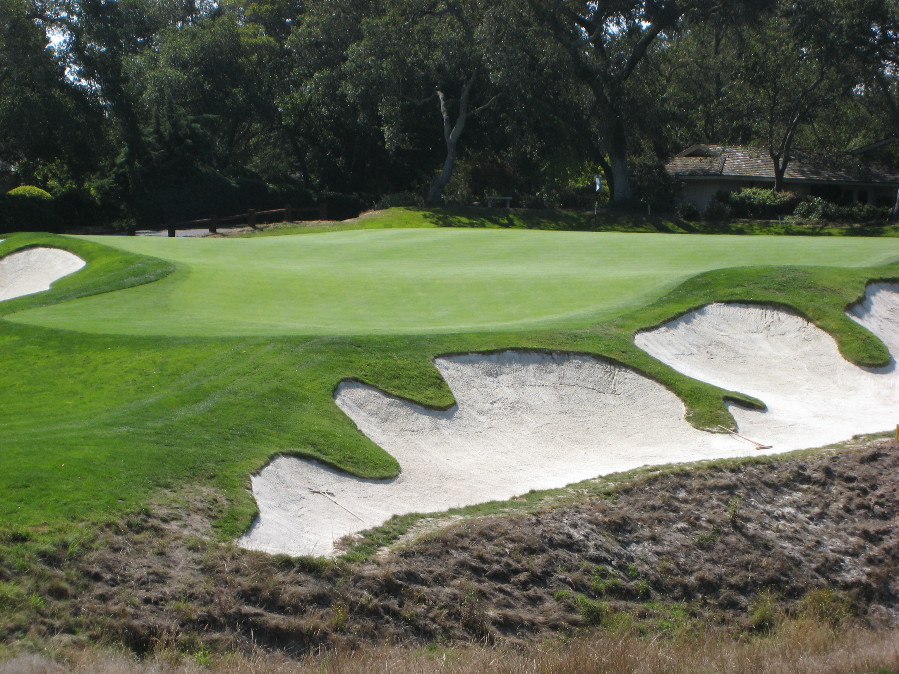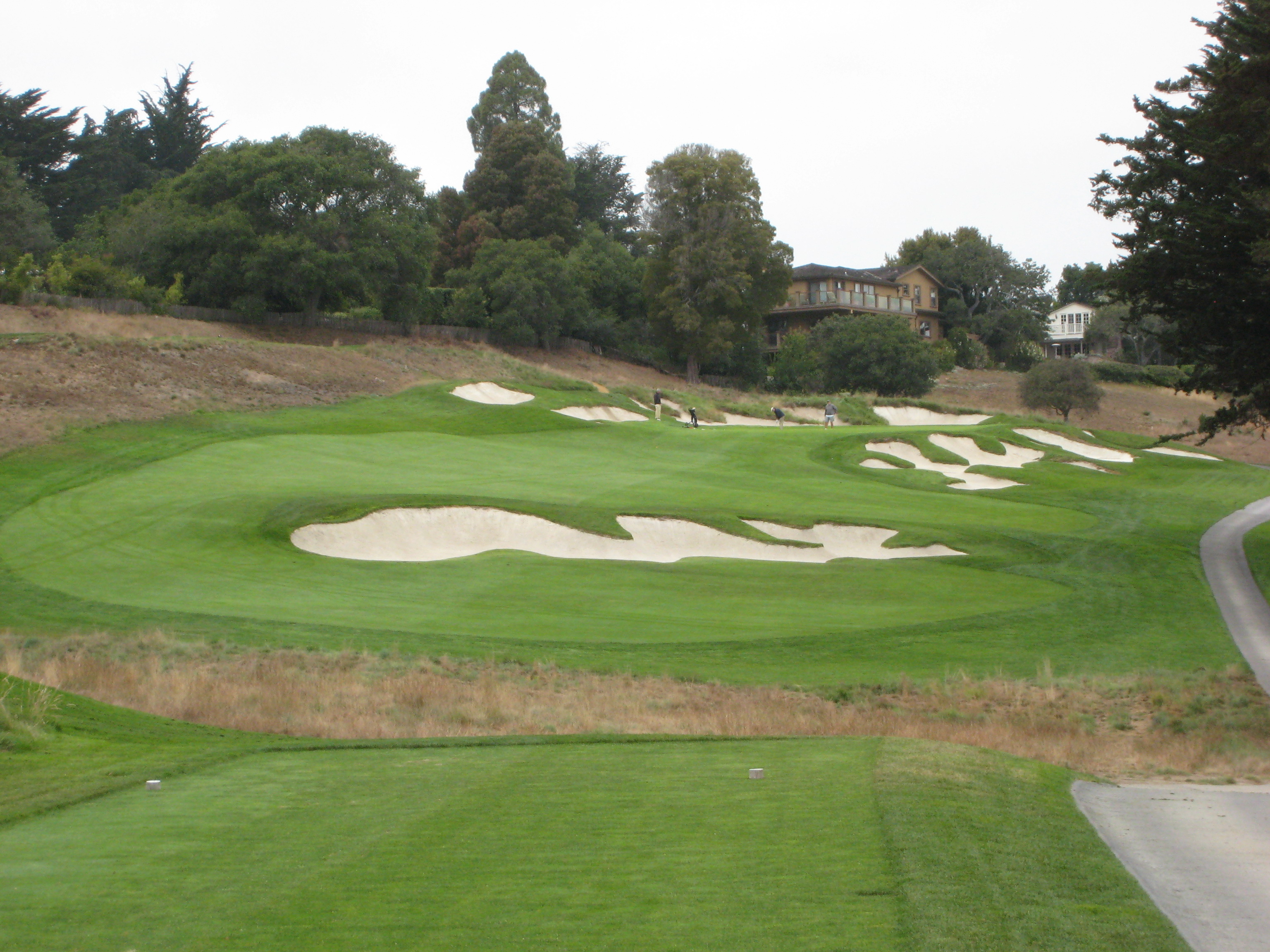 The approach shot here is from about 120 yards. This hole is just another example of exquisite bunkering at Pasatiempo.