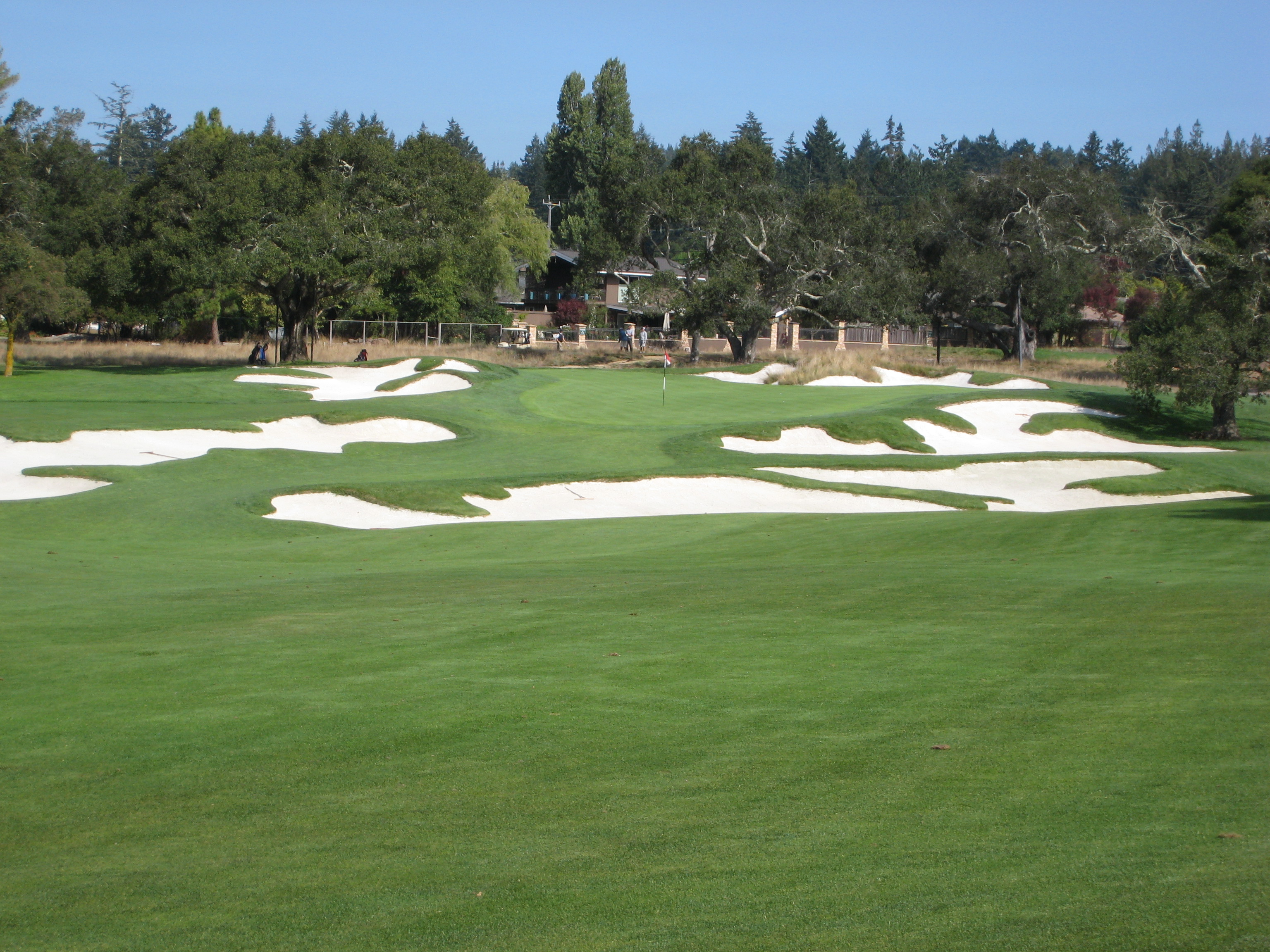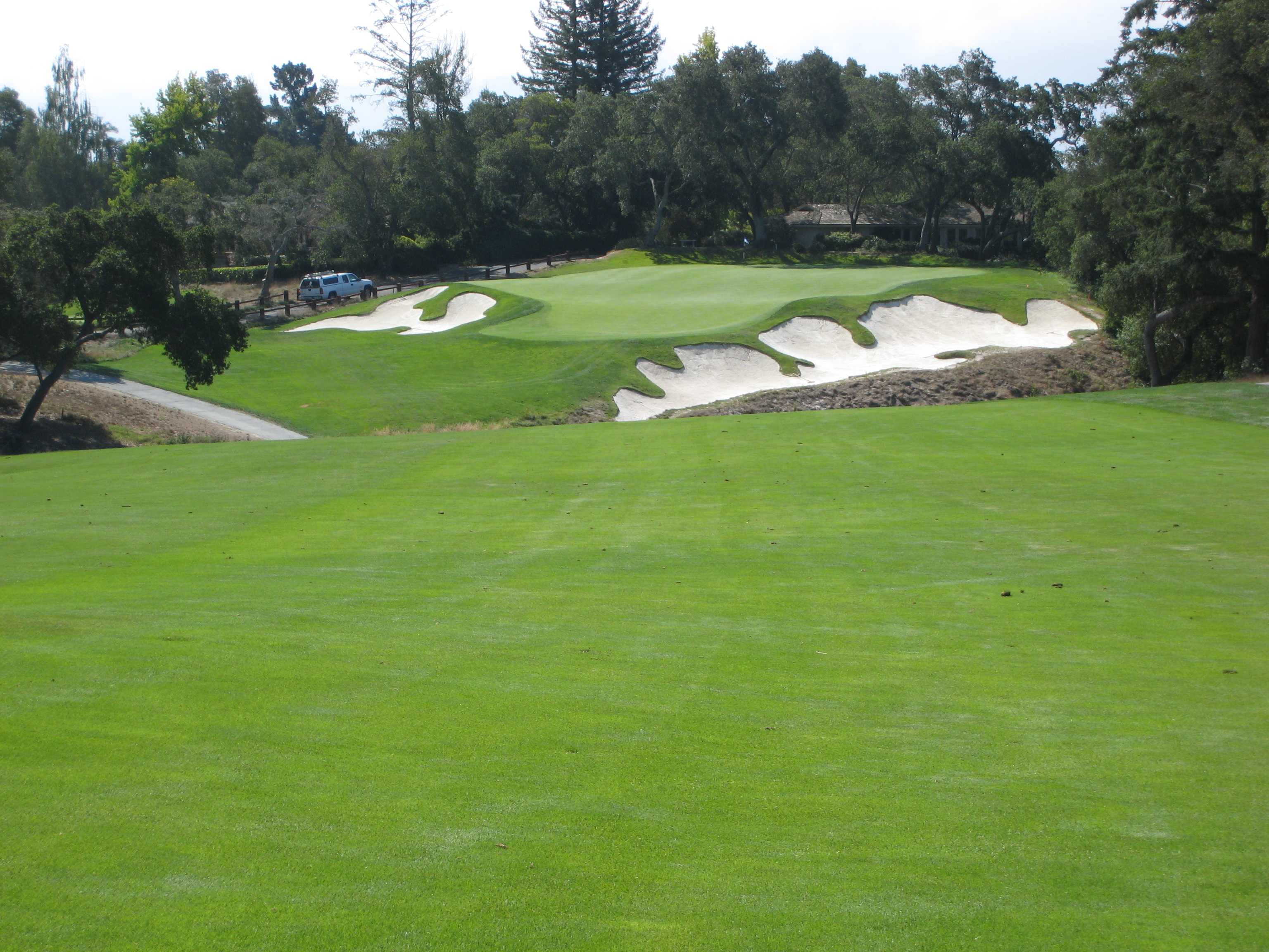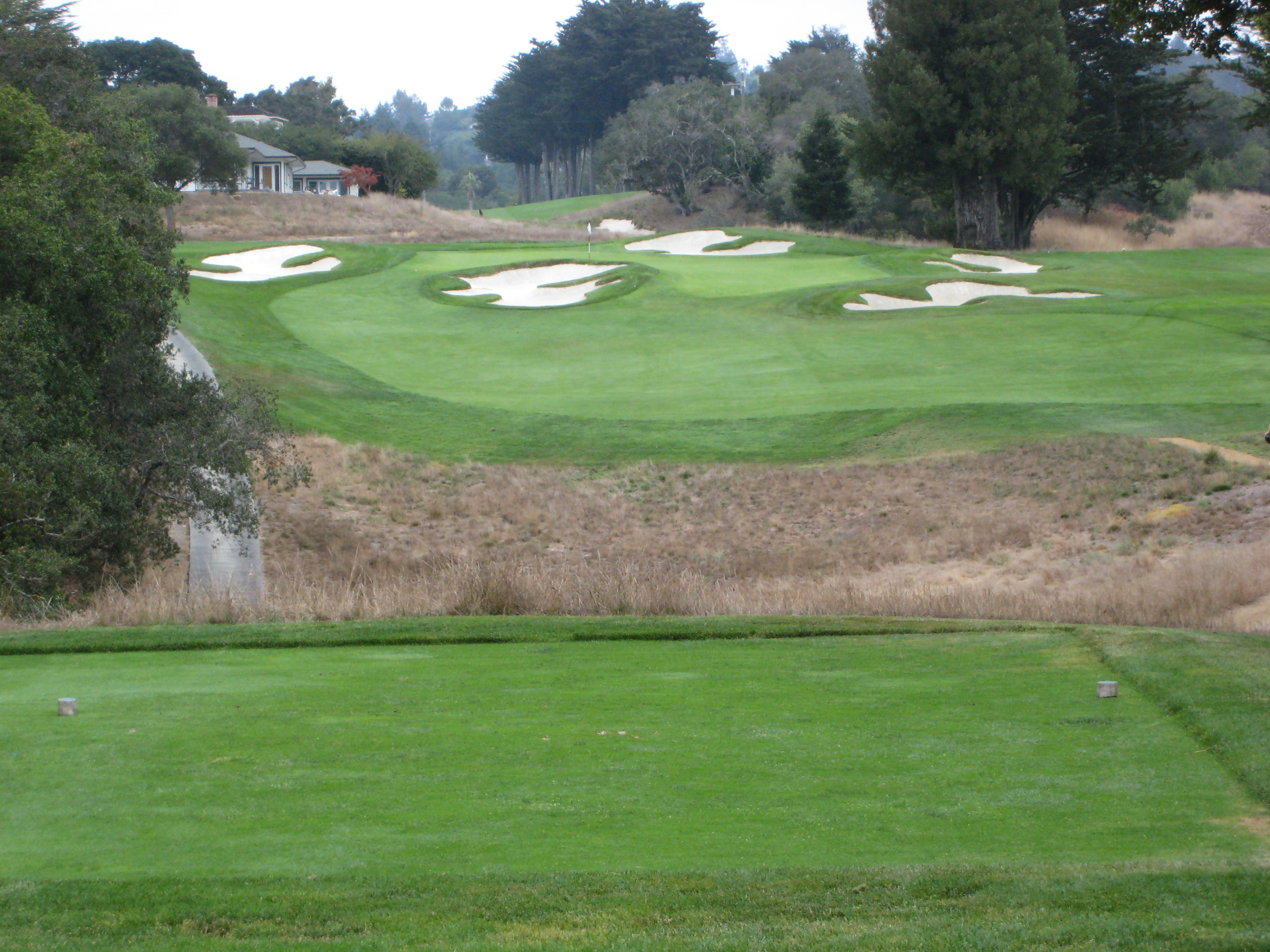 The approach shot here is from about 120 yards. This hole is just another example of exquisite bunkering at Pasatiempo.