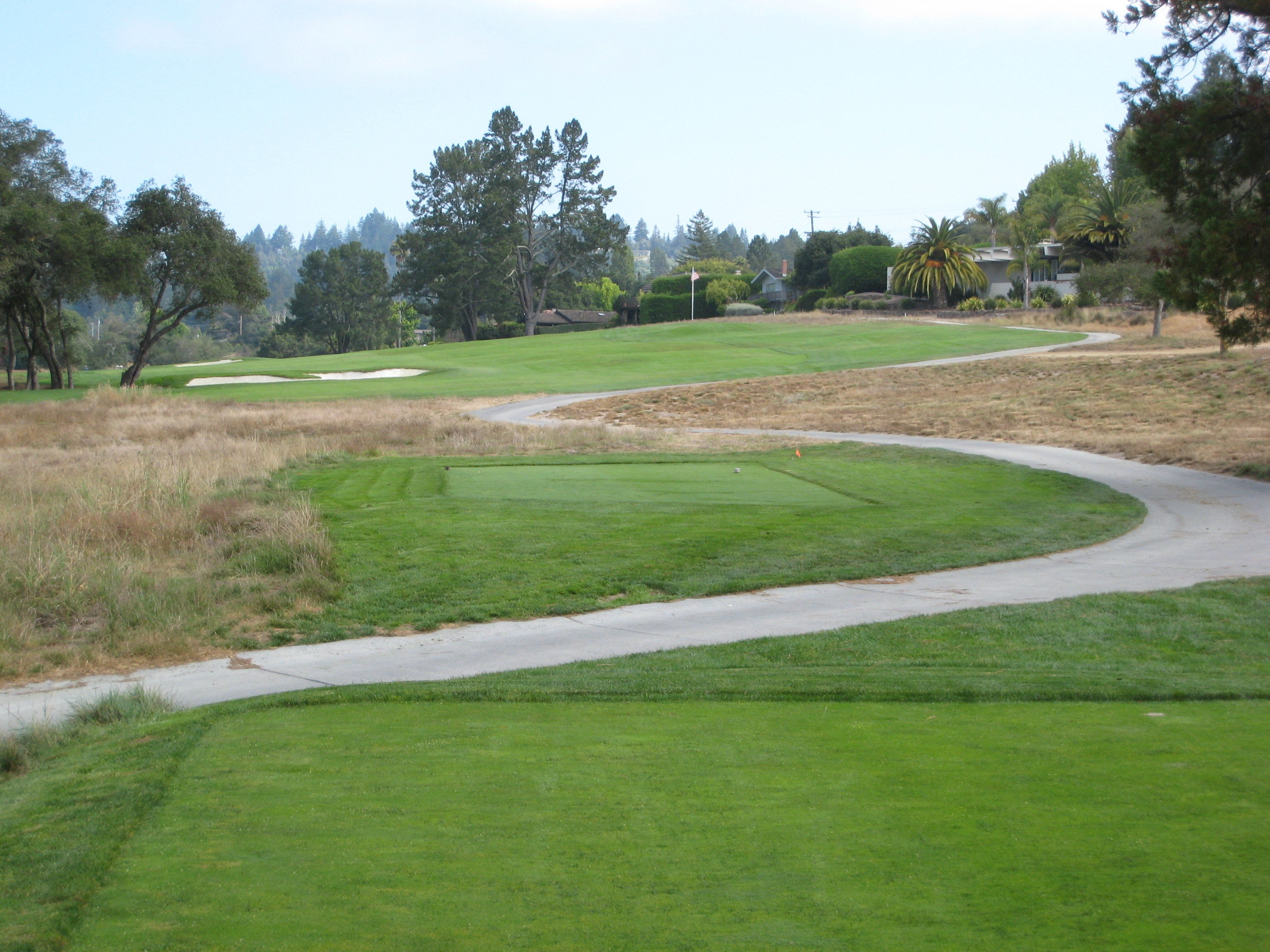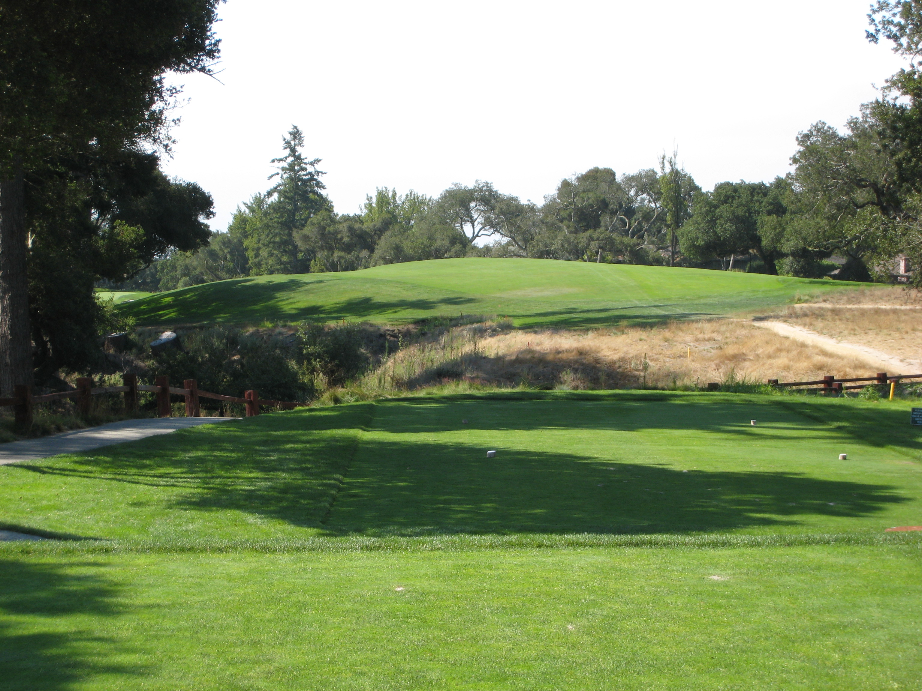 The tee shot here is straightforward. A shot at the tall trees in the distance will work just fine.