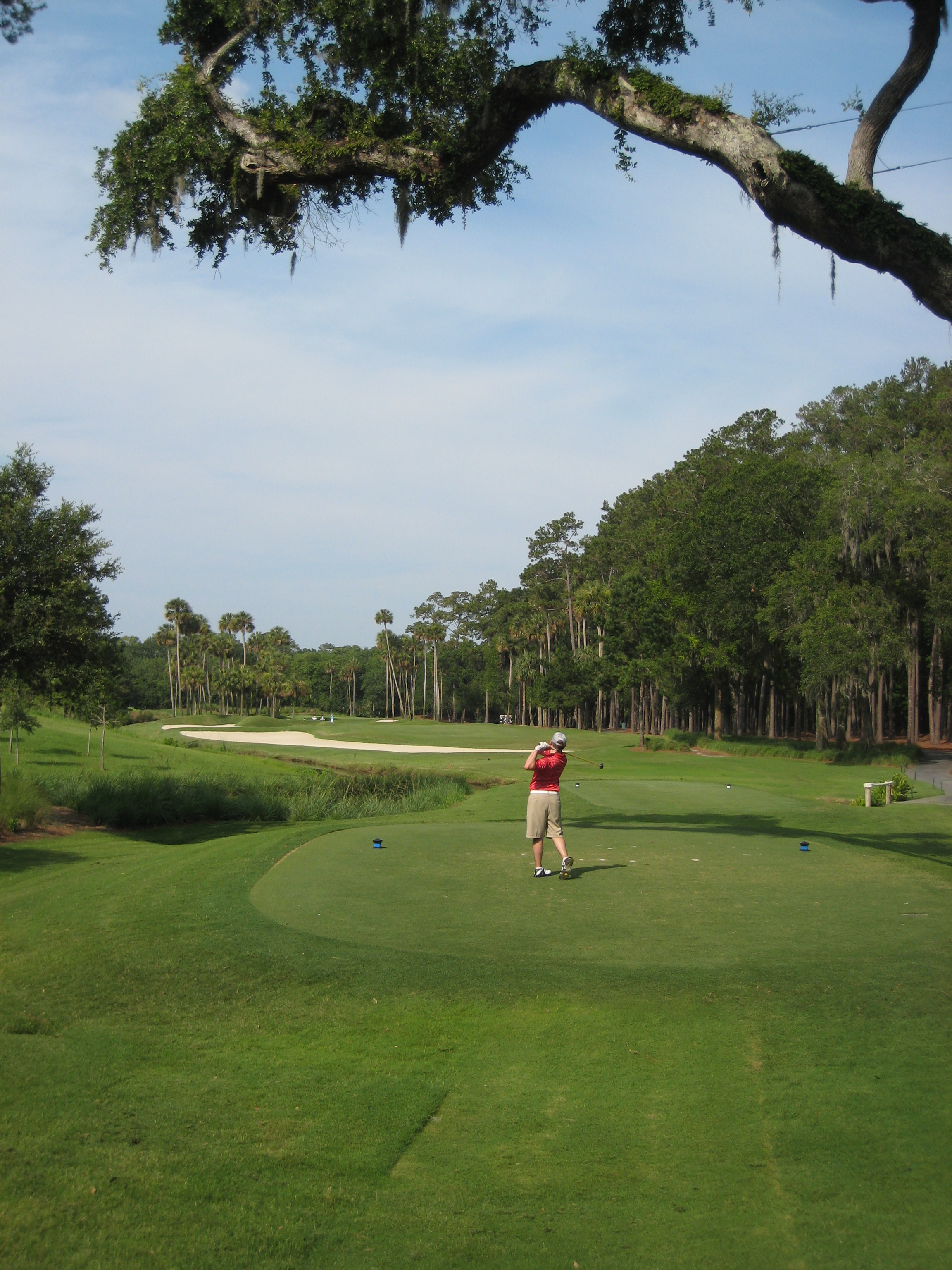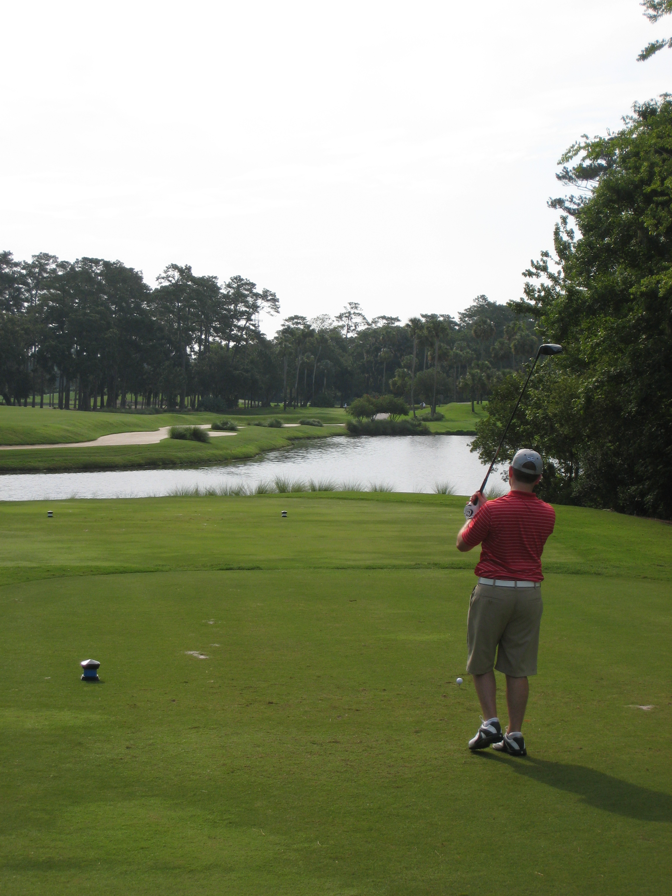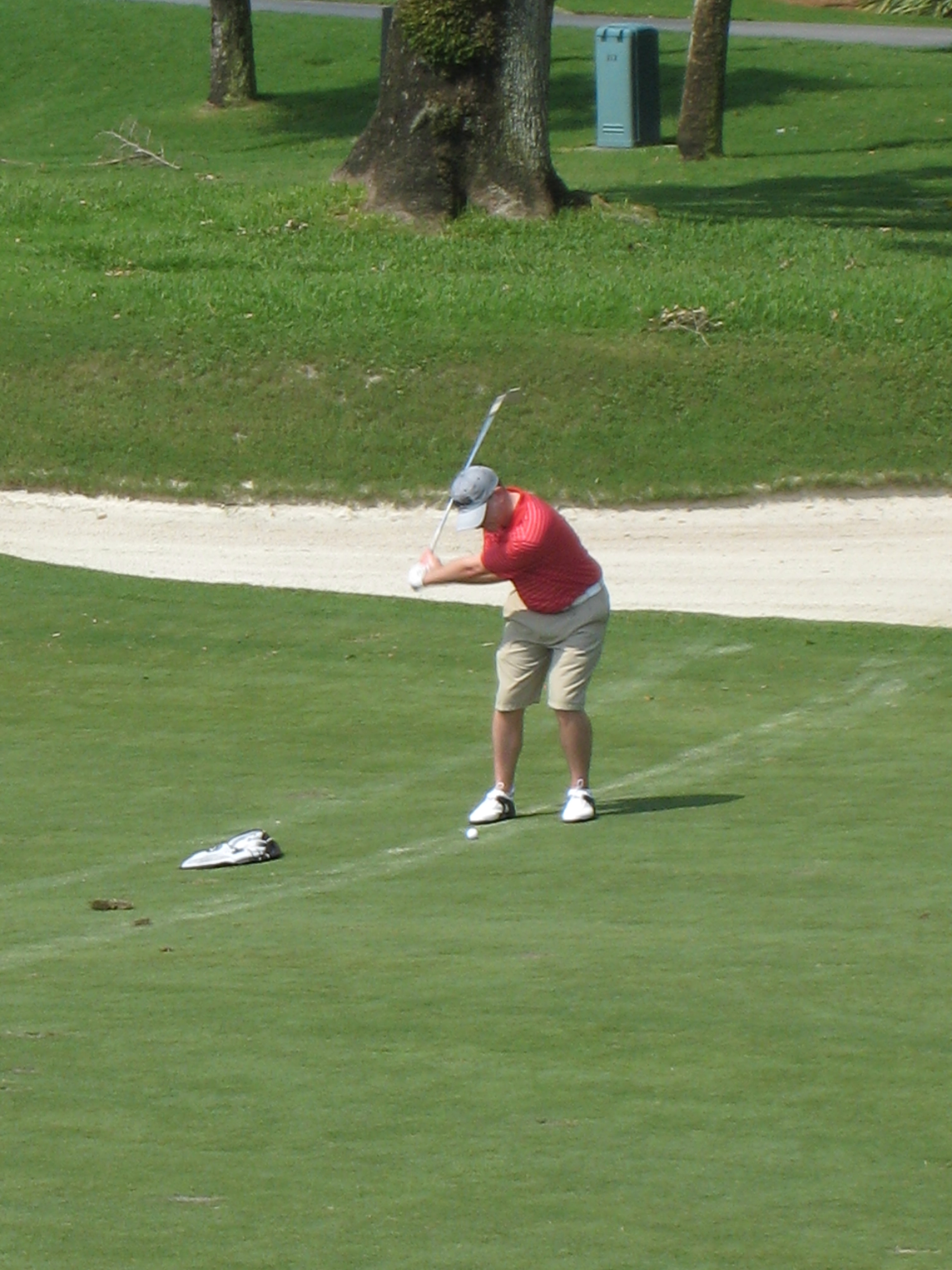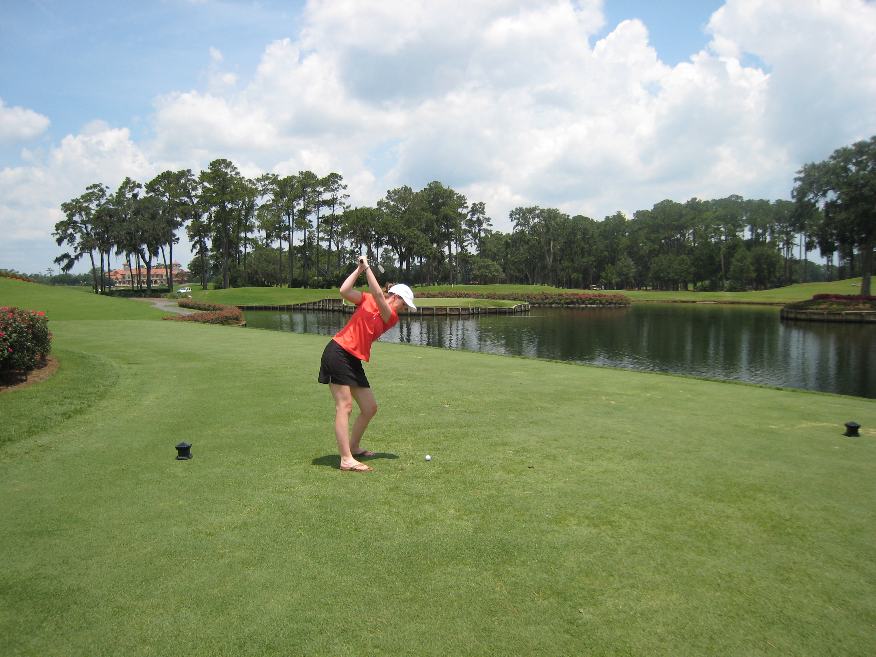 The wife didn’t play, but she slipped one of her clubs in my bag to take a shot here. Straight out of the cart and in flip flops, nice form!