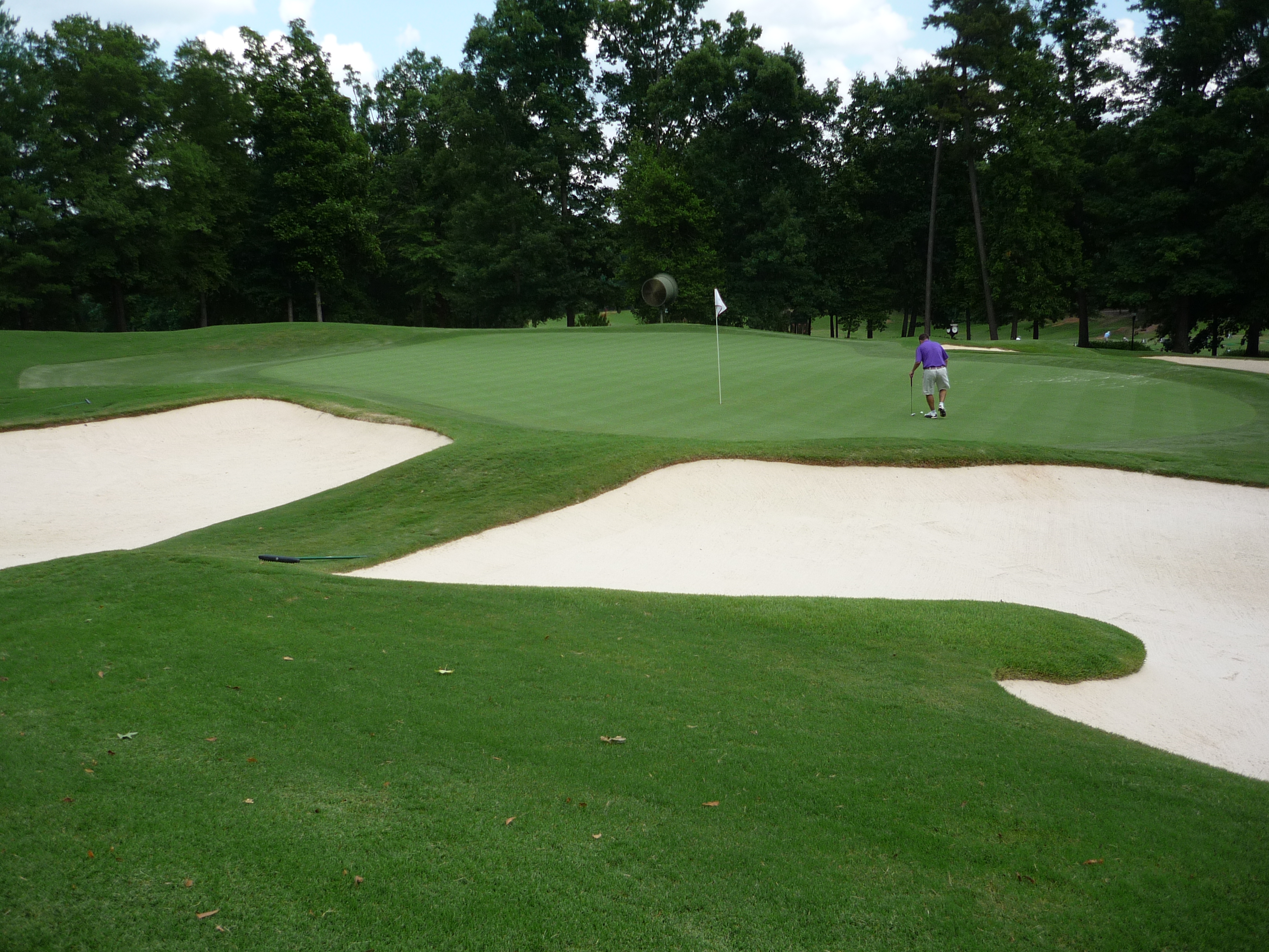 The front of the green is surrounded by a couple of deep sand traps that make an up and down difficult.