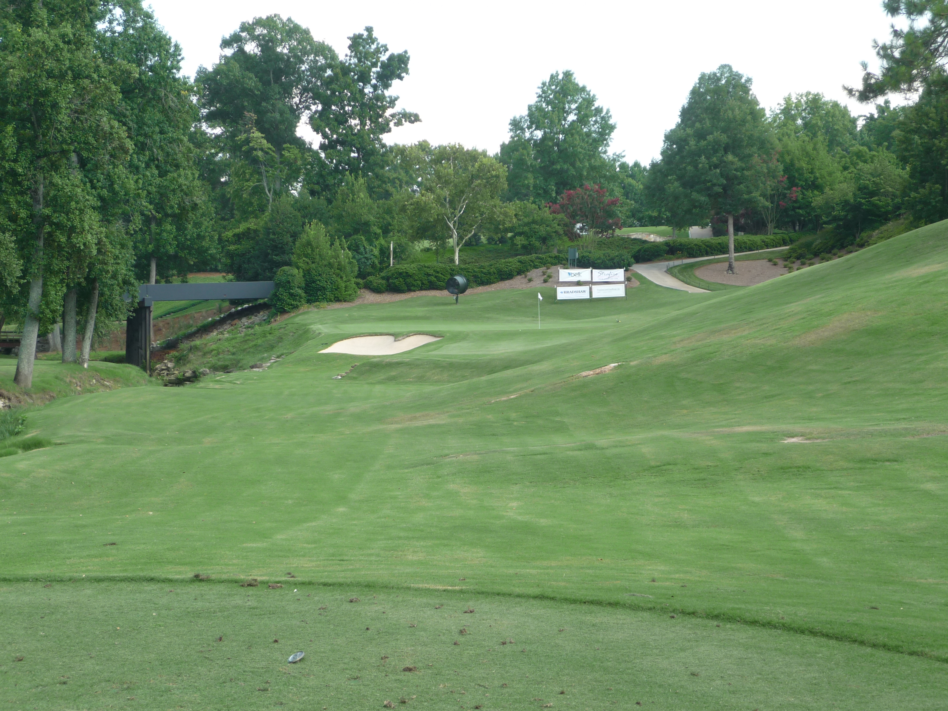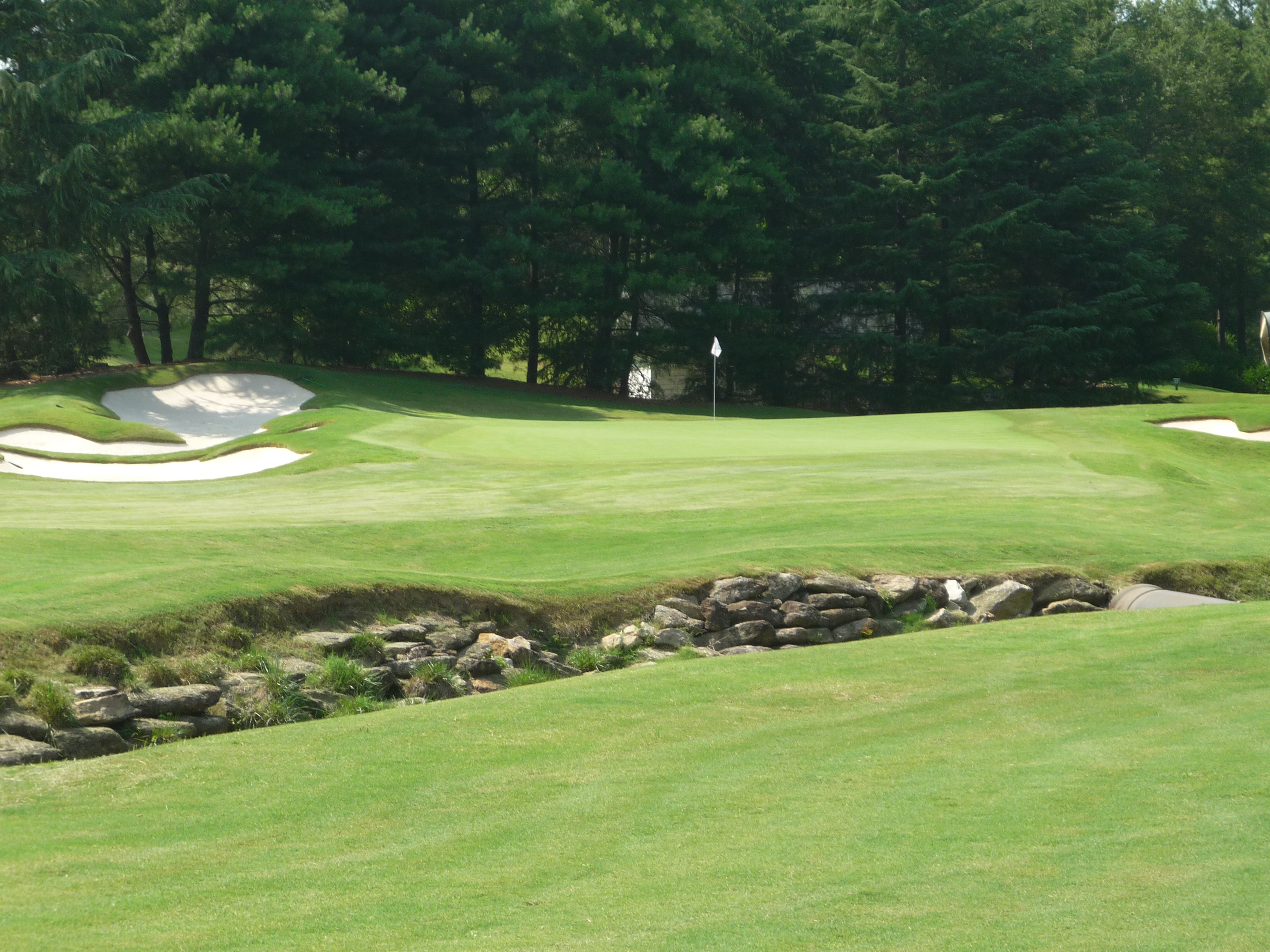 The second plays over a creek to a green guarded by the two bunkers seen here.