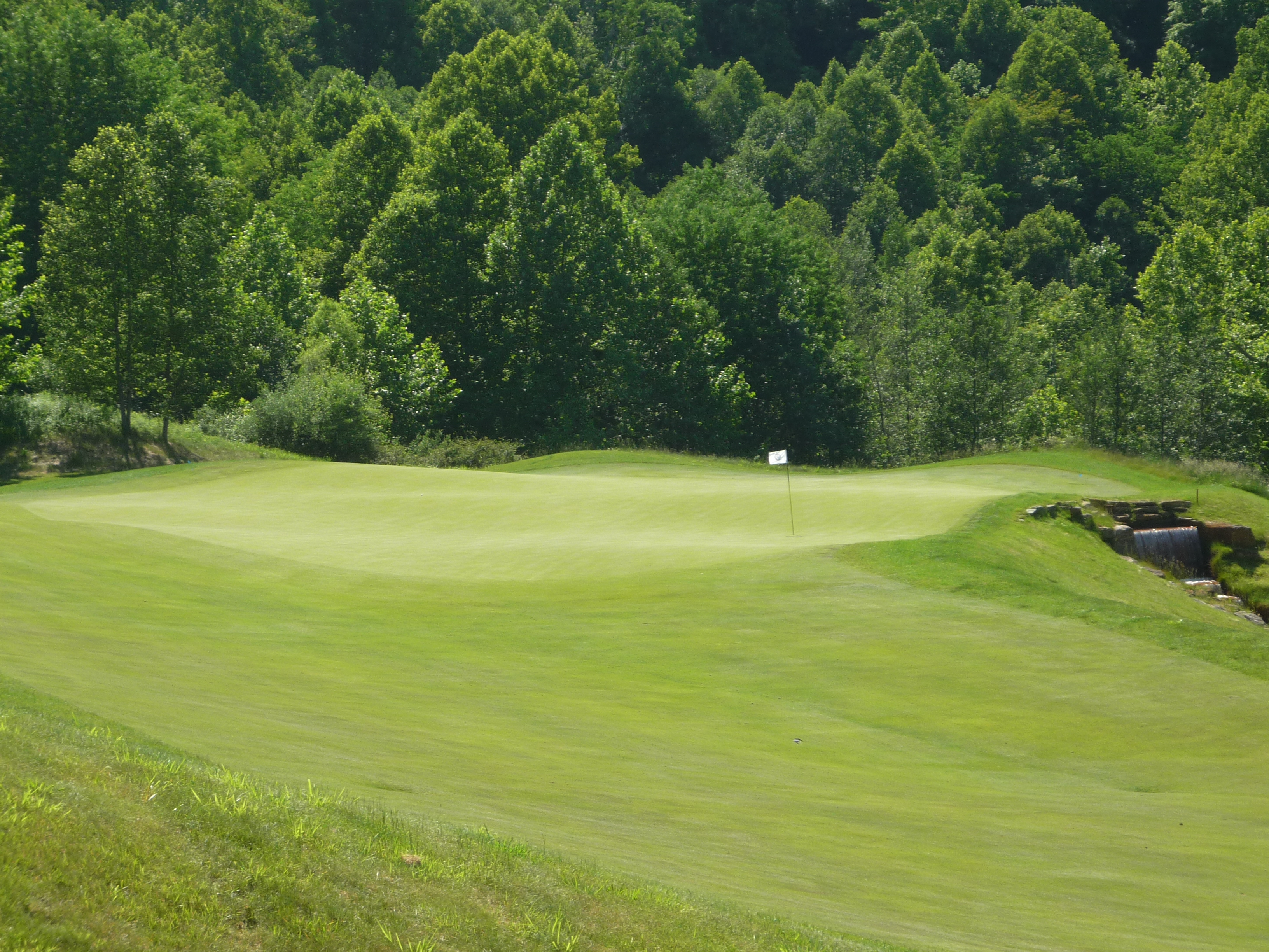 The green has a cool waterfall to the right of it. It is all-natural and they built around it