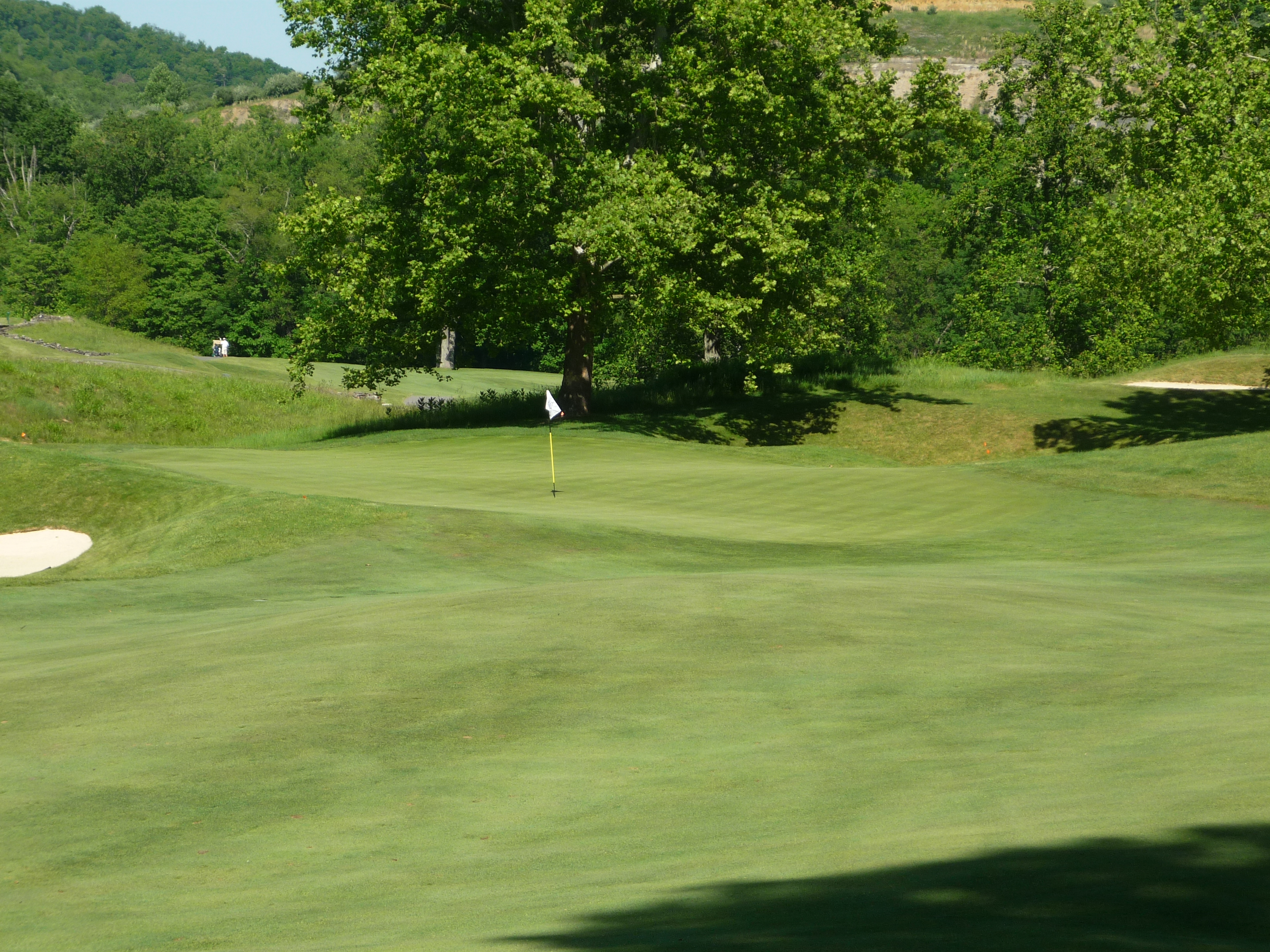 The wife and I drove up to play West Virginia’s Pete Dye Golf Club this past summer for the first leg of a two-course weekend barn burner that also included Scioto. The course may be familiar to you from when it hosted a Korn Ferry Tour event in the years 2004 to 2009. The course was transformed from a coal mine and you will see from the pictures that this influence was preserved.