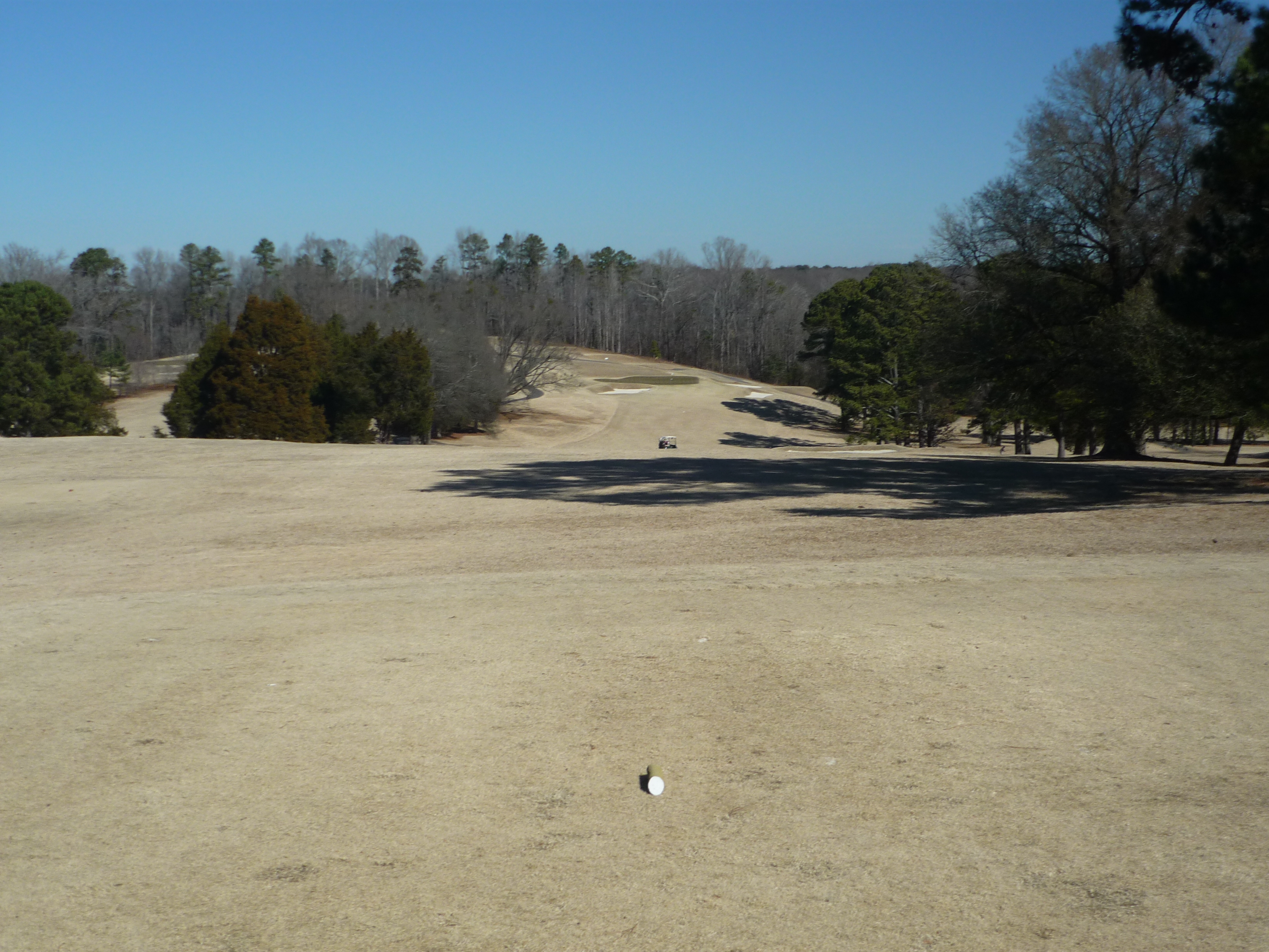 This hole can trick you. The tee shot needs to be played a good bit to the right. Any shot that goes up the middle of this fairway will most likely end up down in the valley. It is playable from there, just not as easy.