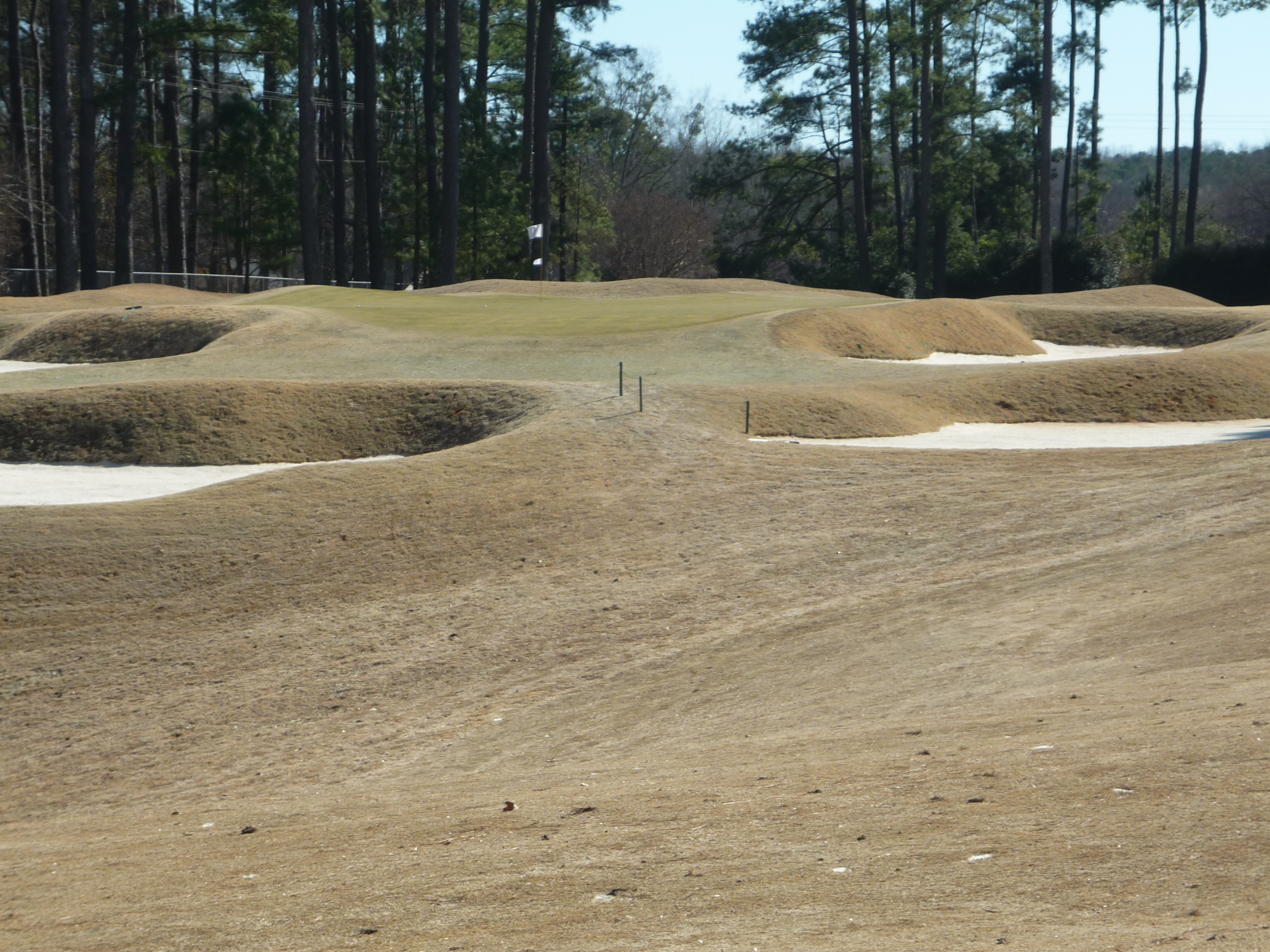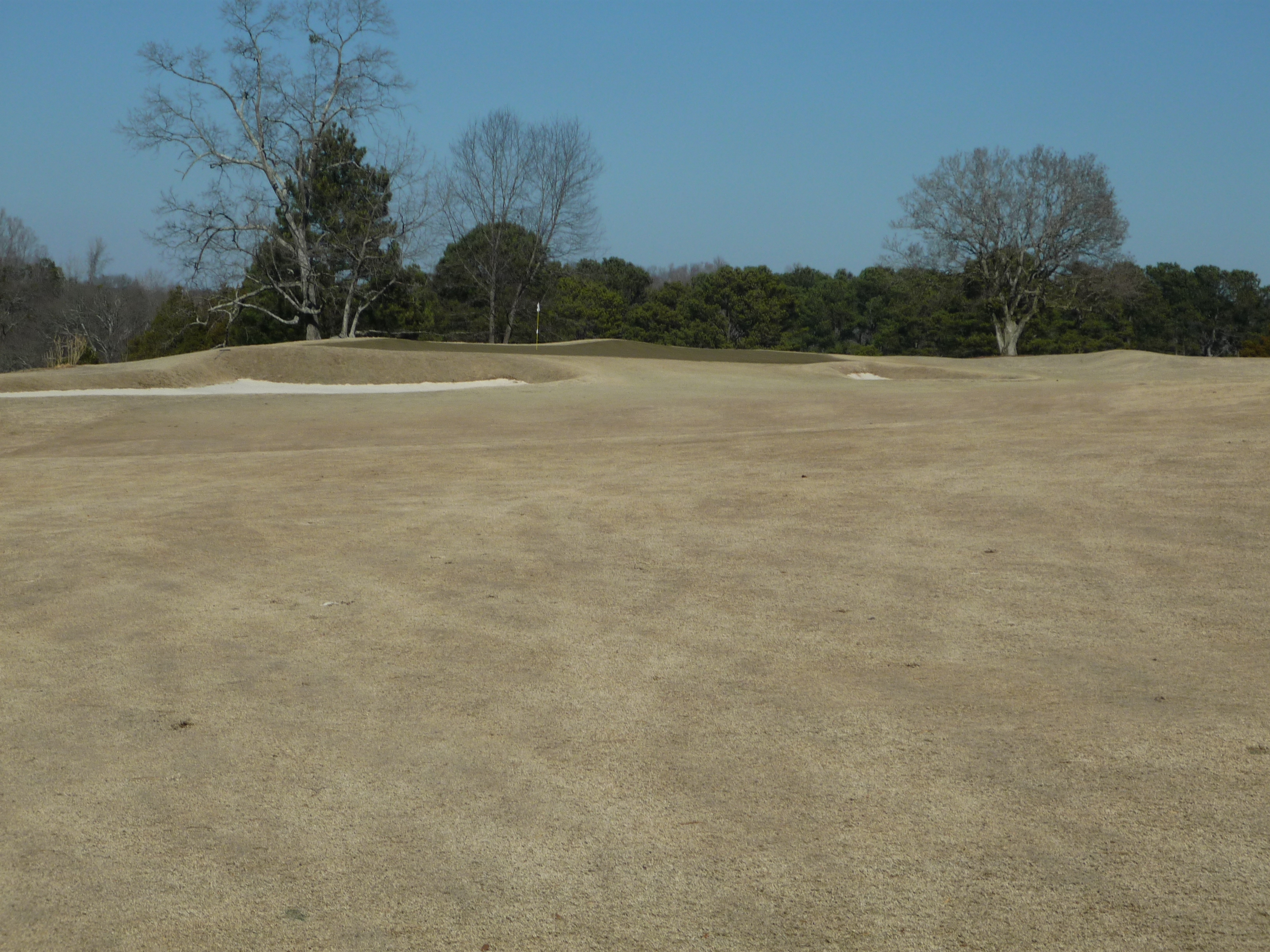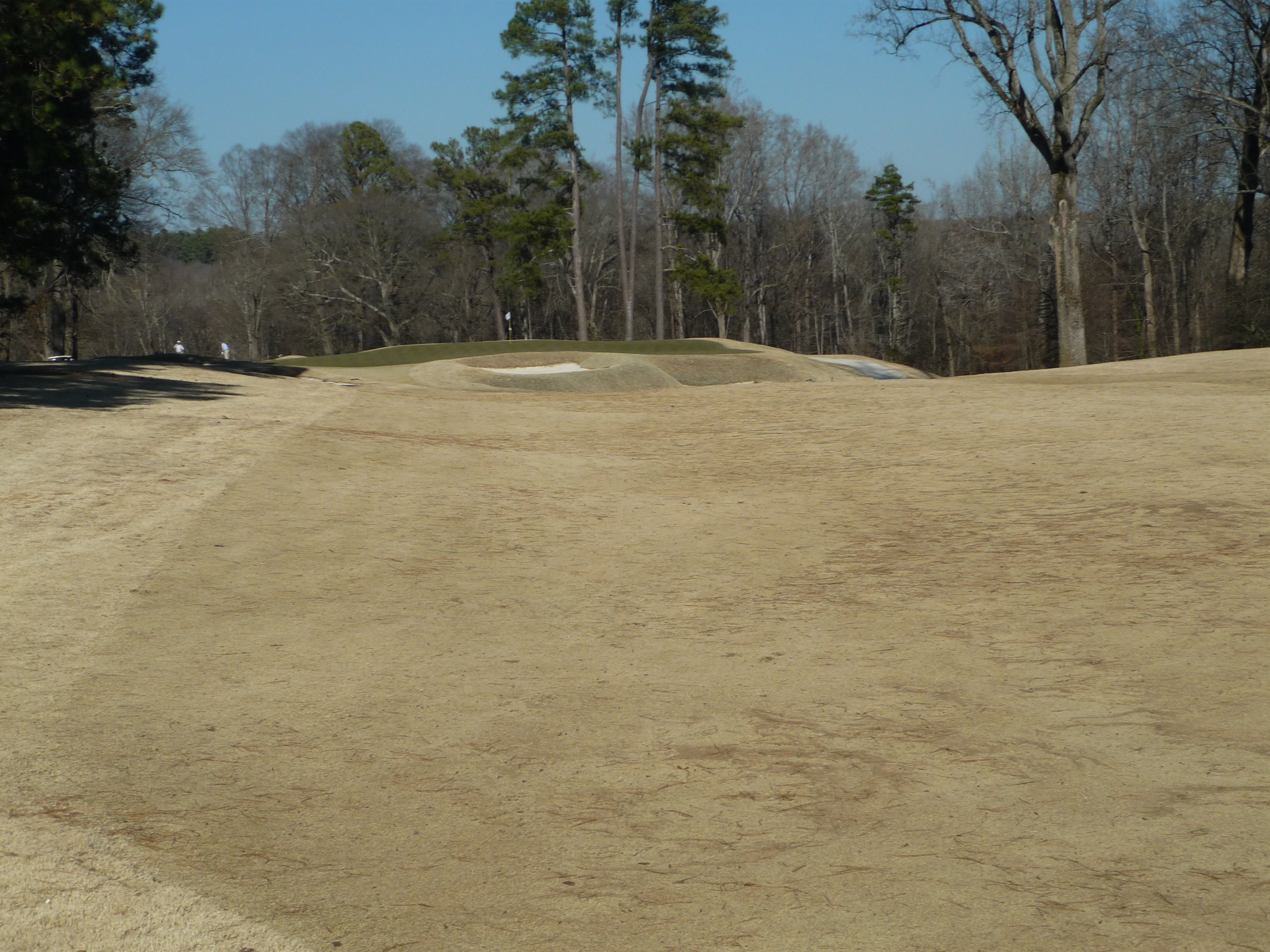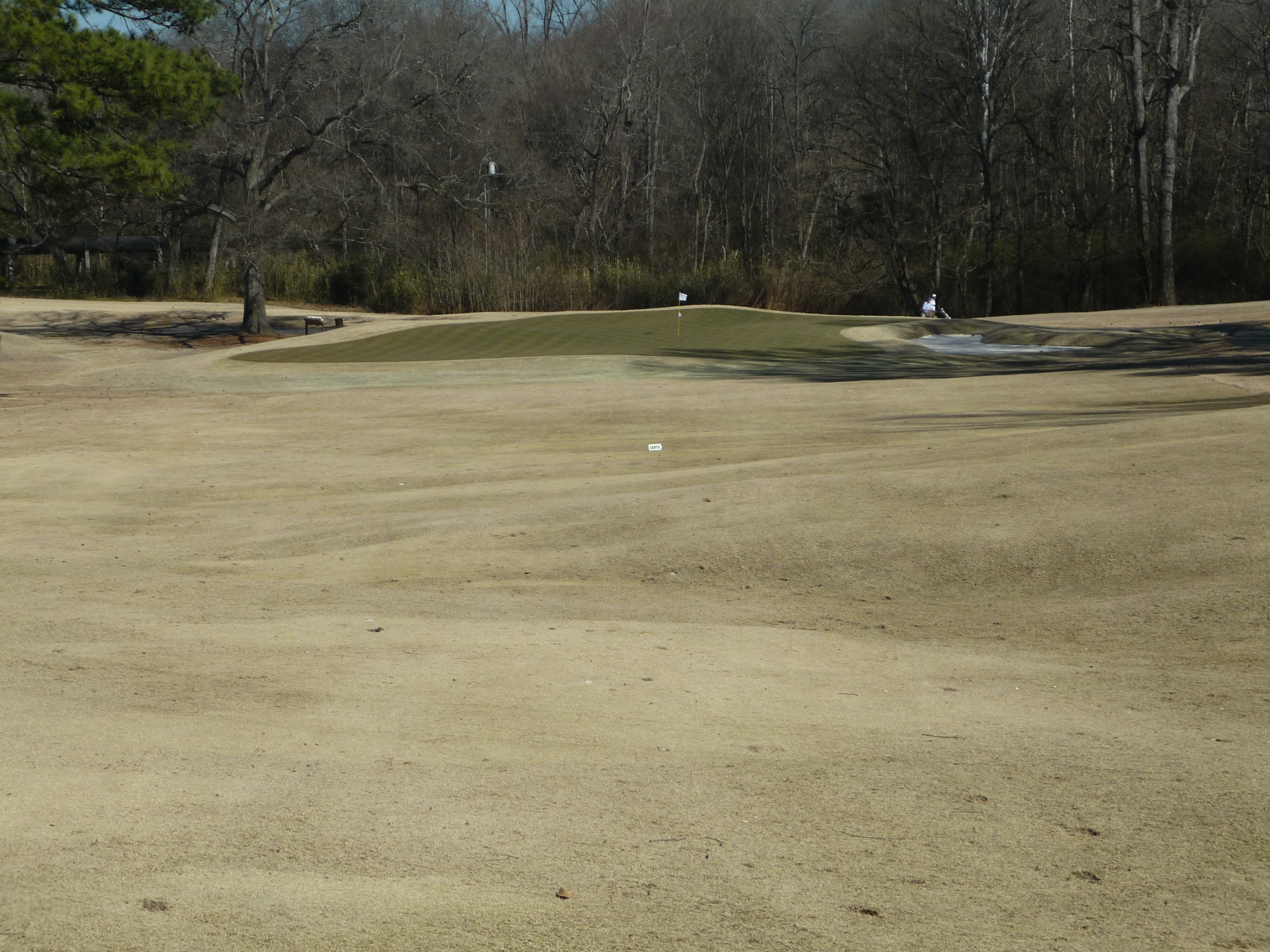 Here is the approach shot from the more manageable wedge distance. The bunkers you see in front of the green are in play. The one on the right is well below the putting surface.