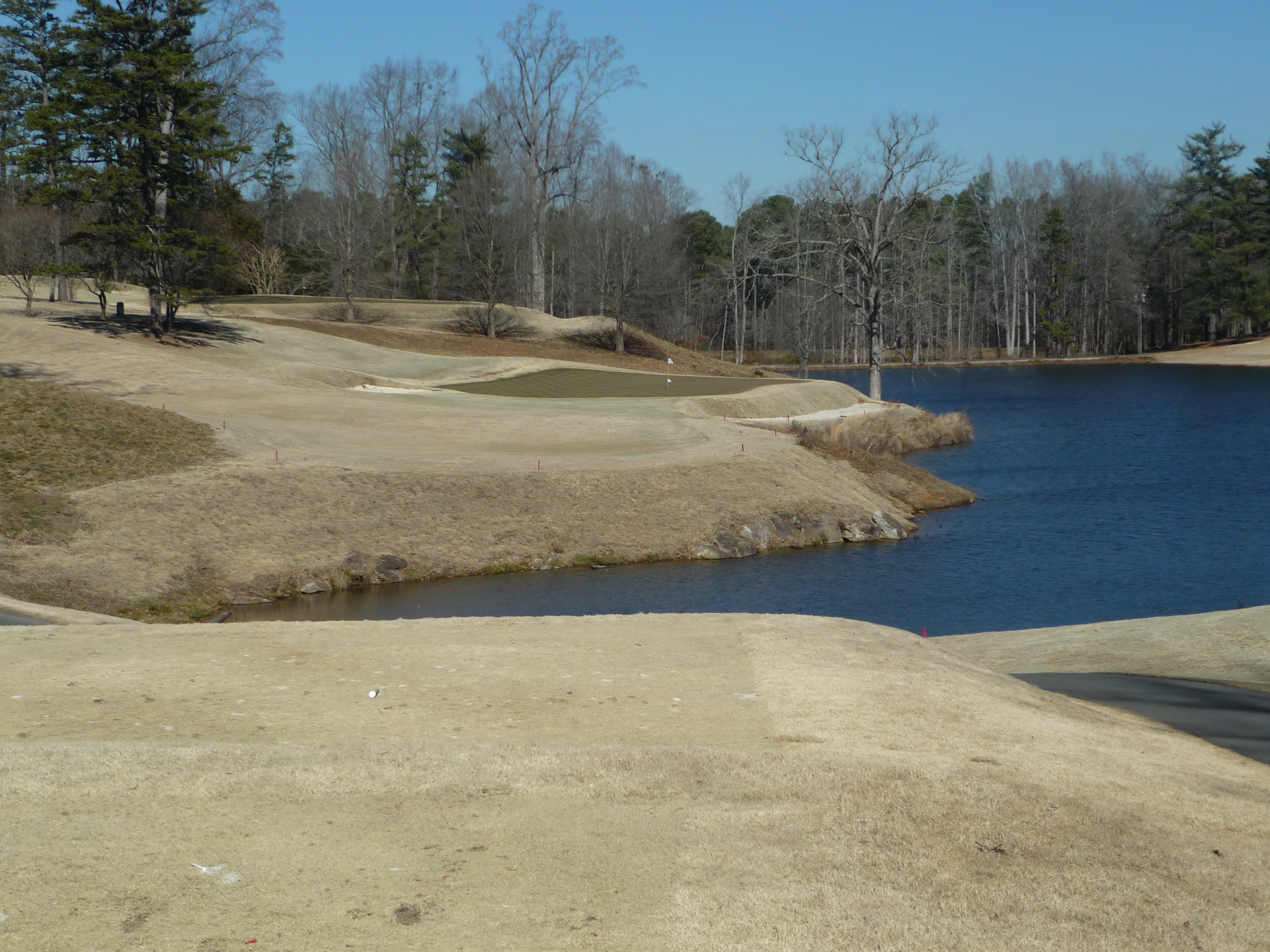 This photo does not do it justice because this green is incredibly sloped. I have played the hole five times and still haven’t hit the green.