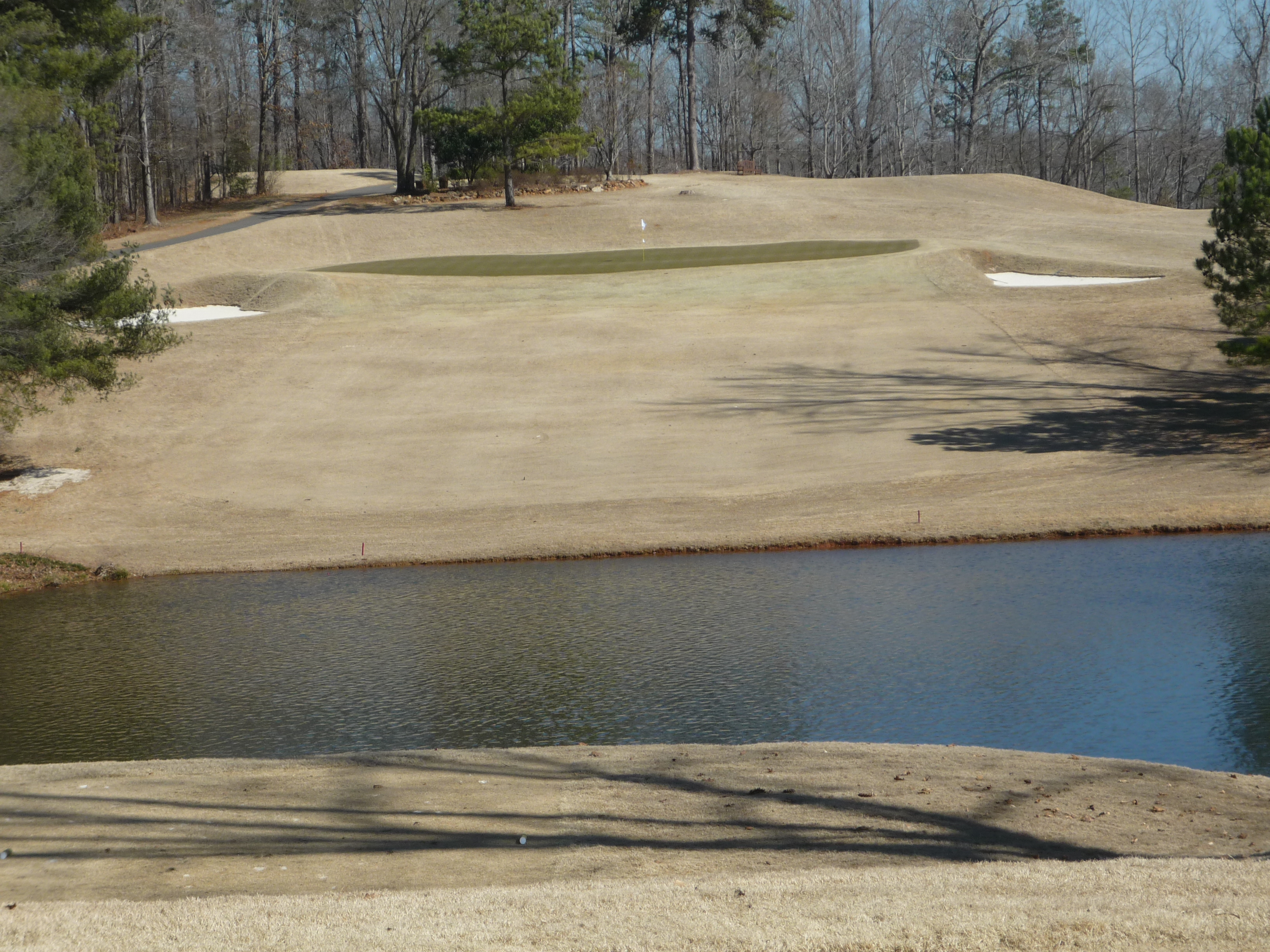 While this hole is shorter than the last par three, it does not get any easier. The green is much smaller and guarded by deep sand traps.