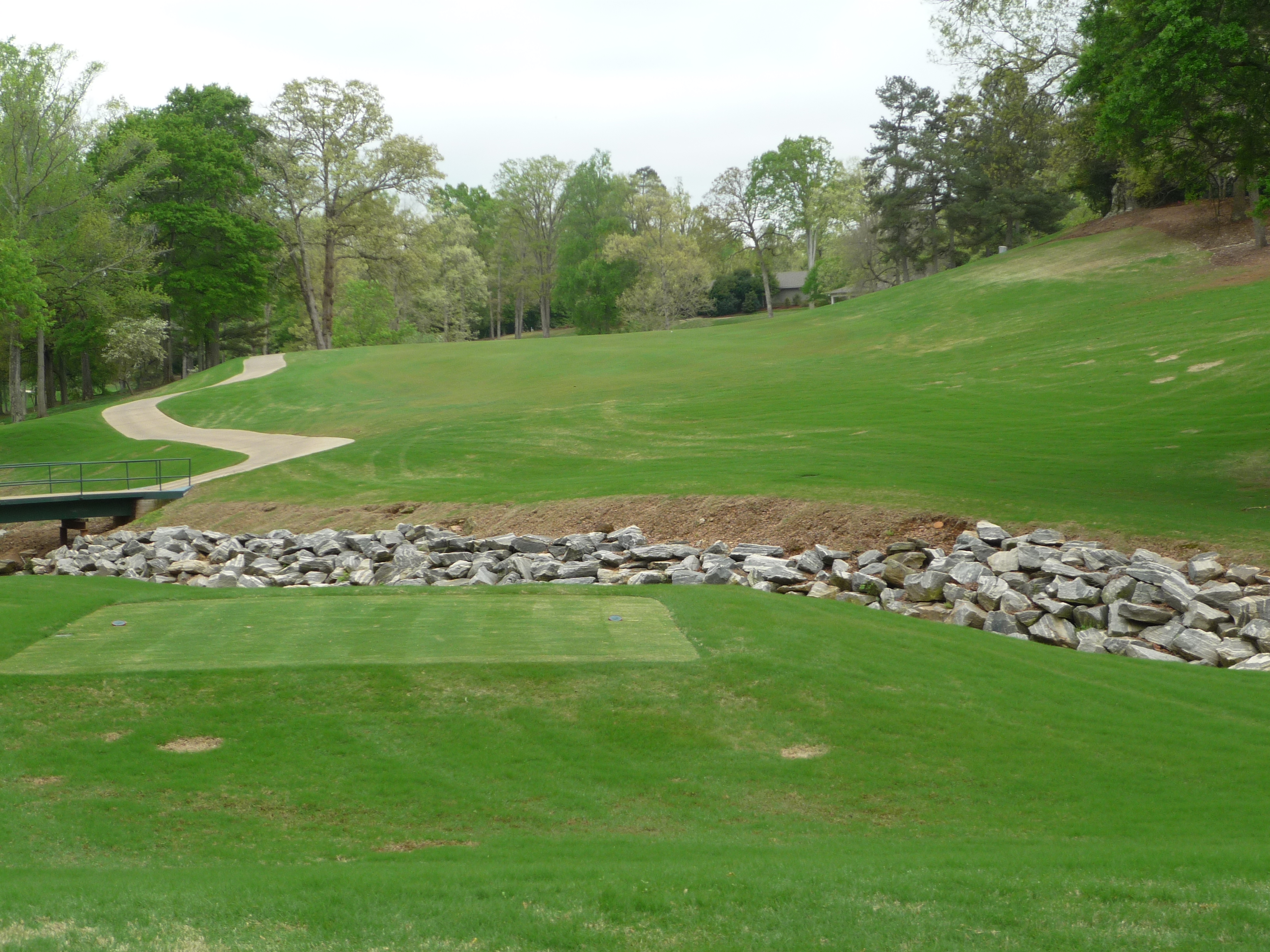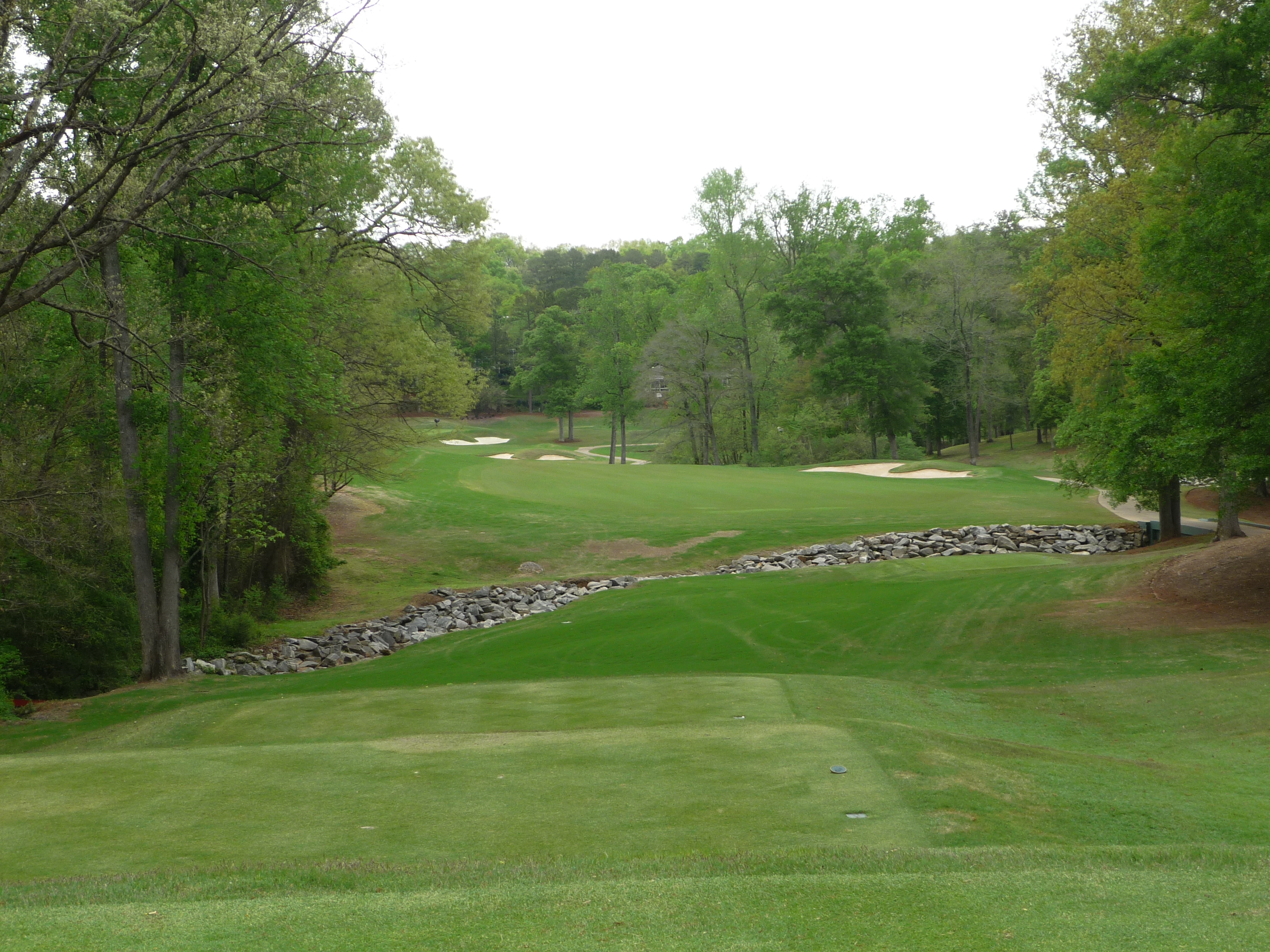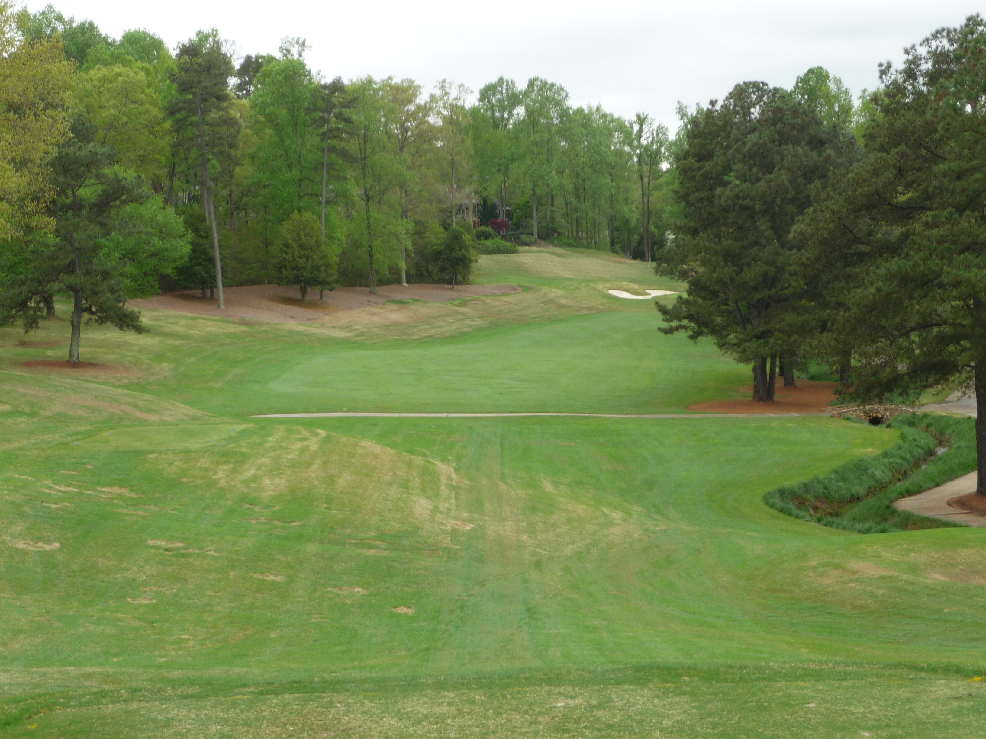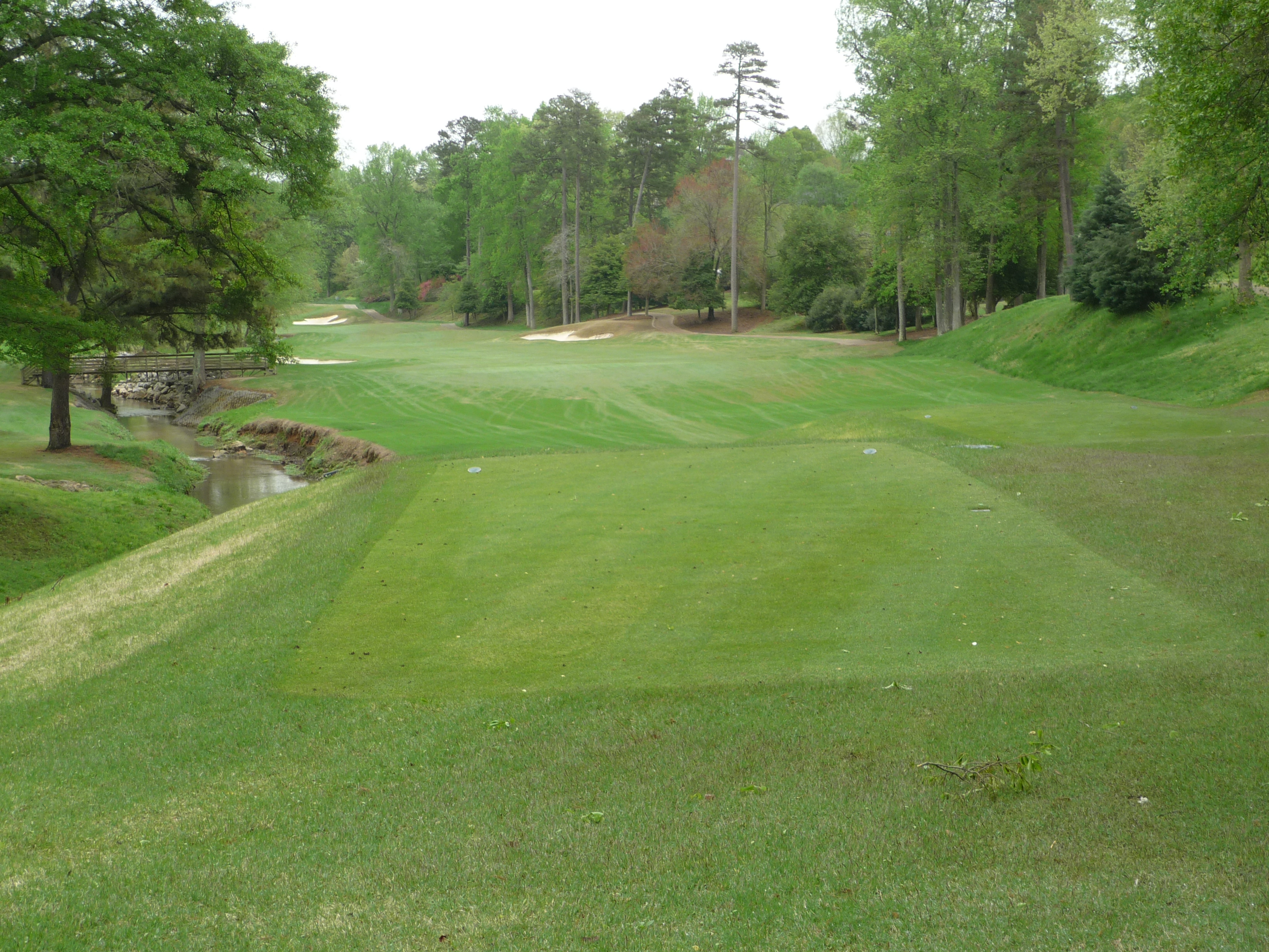 The approach is played over that creek with some nice rock work in it. A good drive will leave a wedge shot, so clearing the water shouldn’t be too bad.