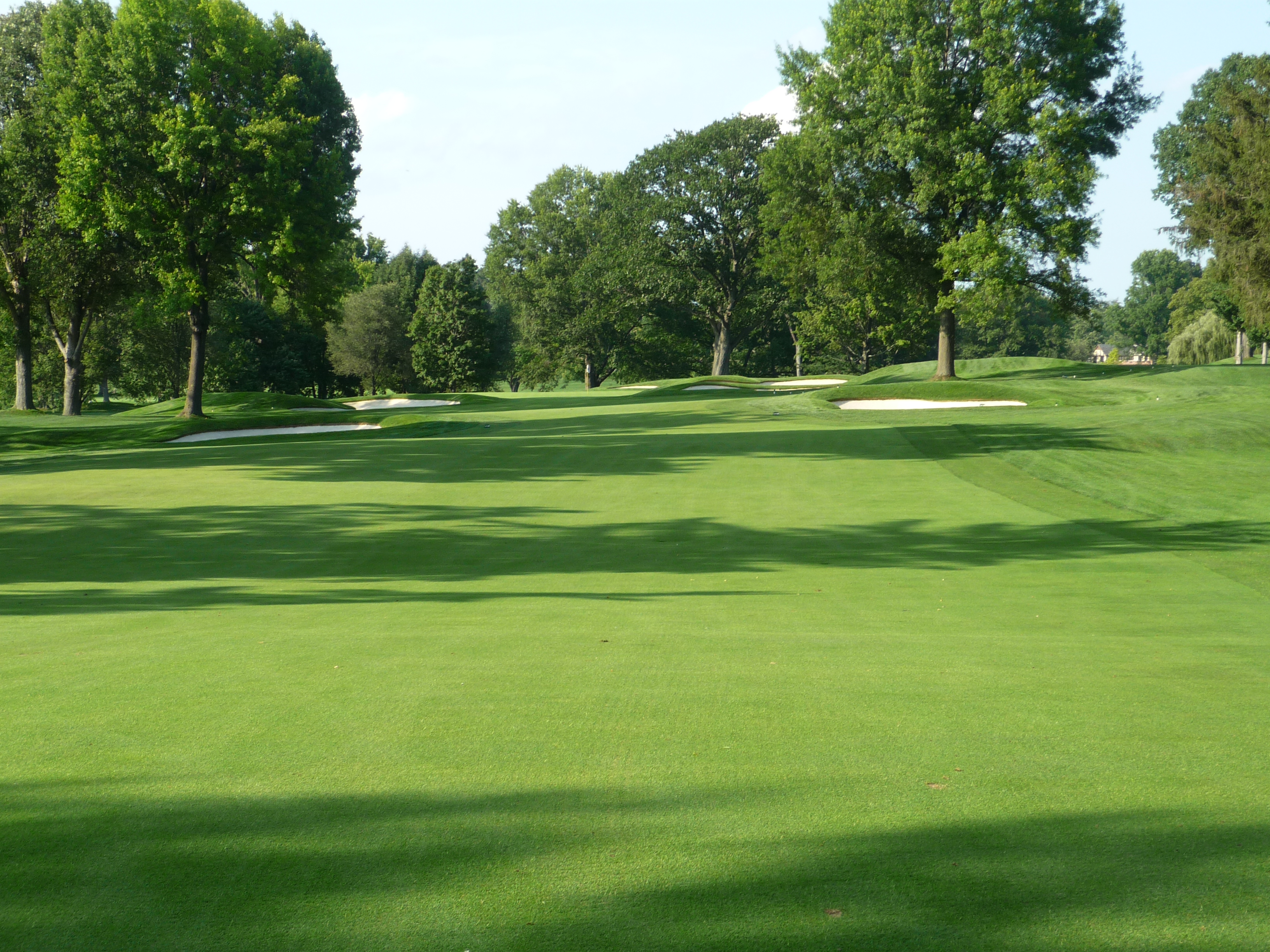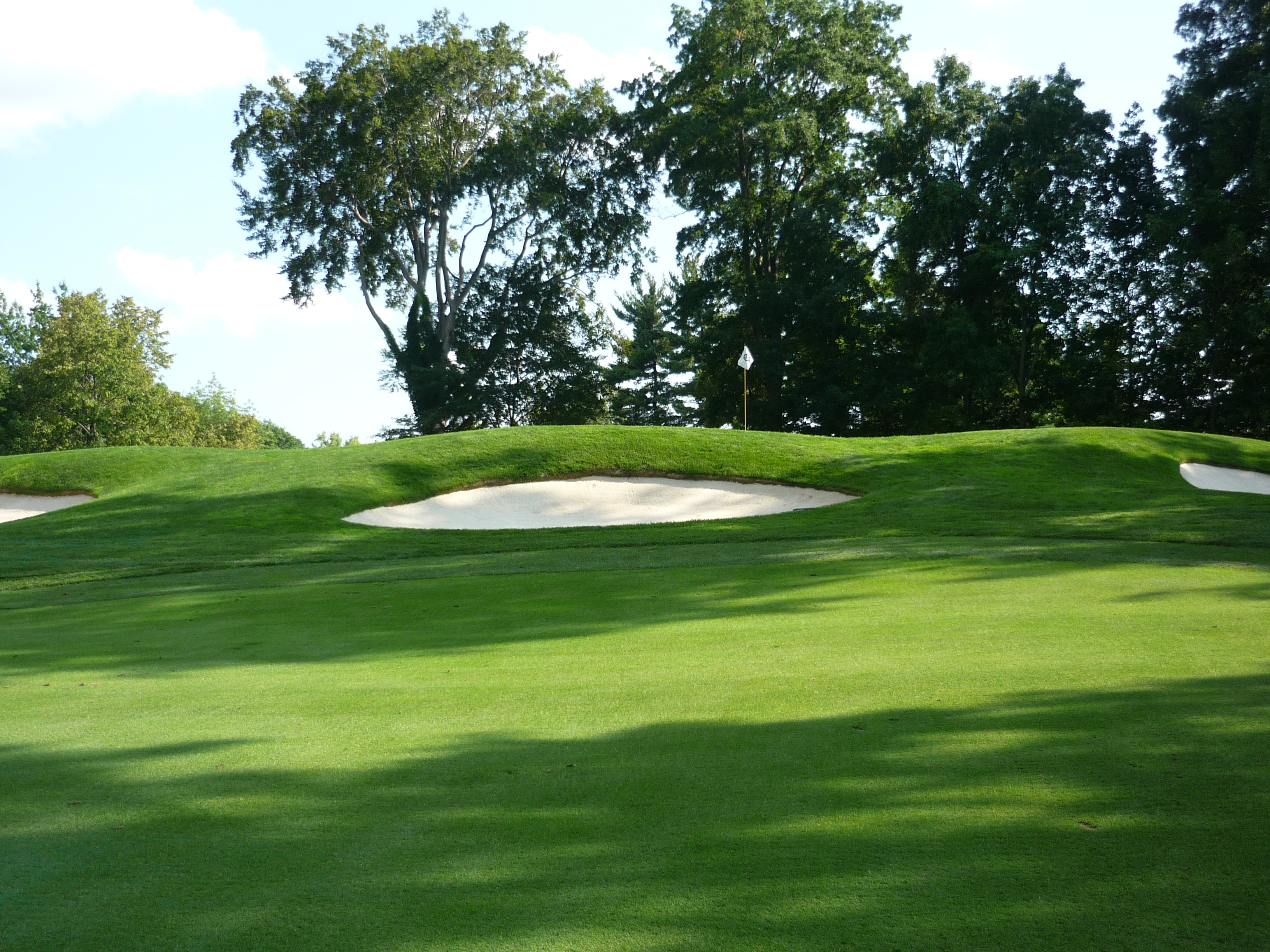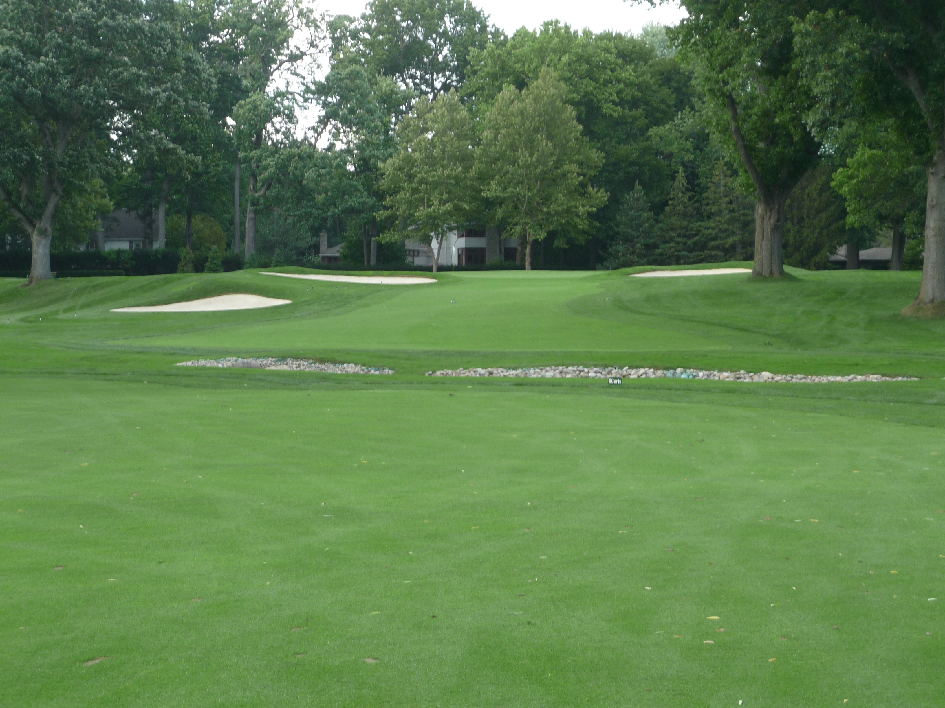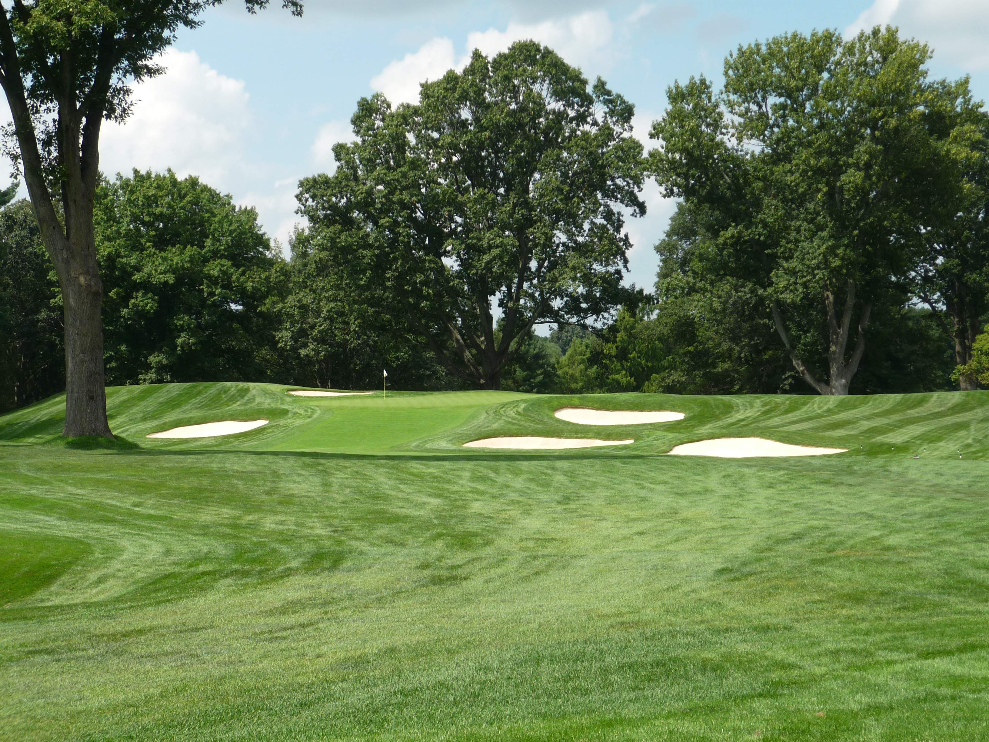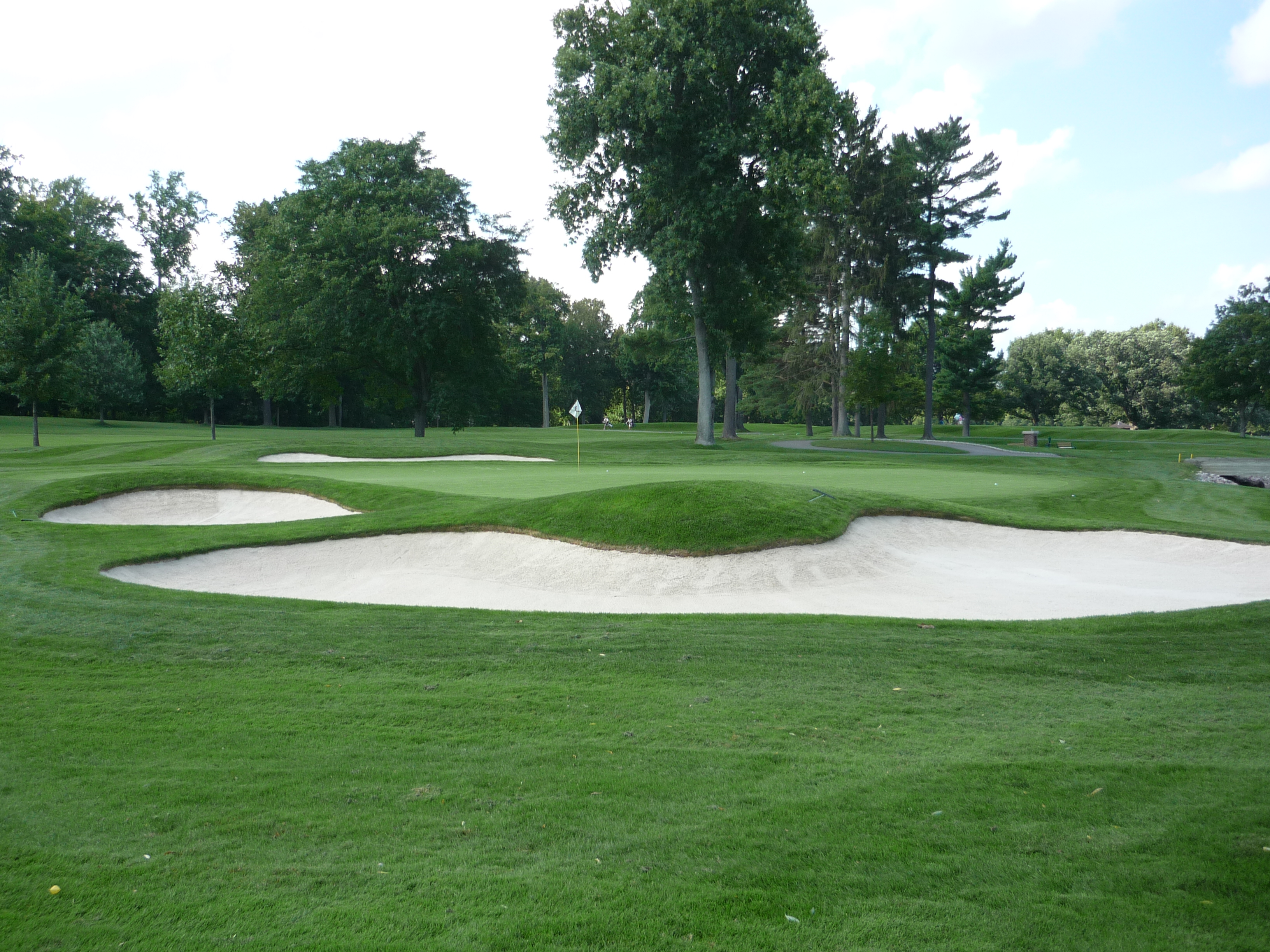 The green is seen below. You can see that is guarded by many bunkers. The green slopes severely from back to front.