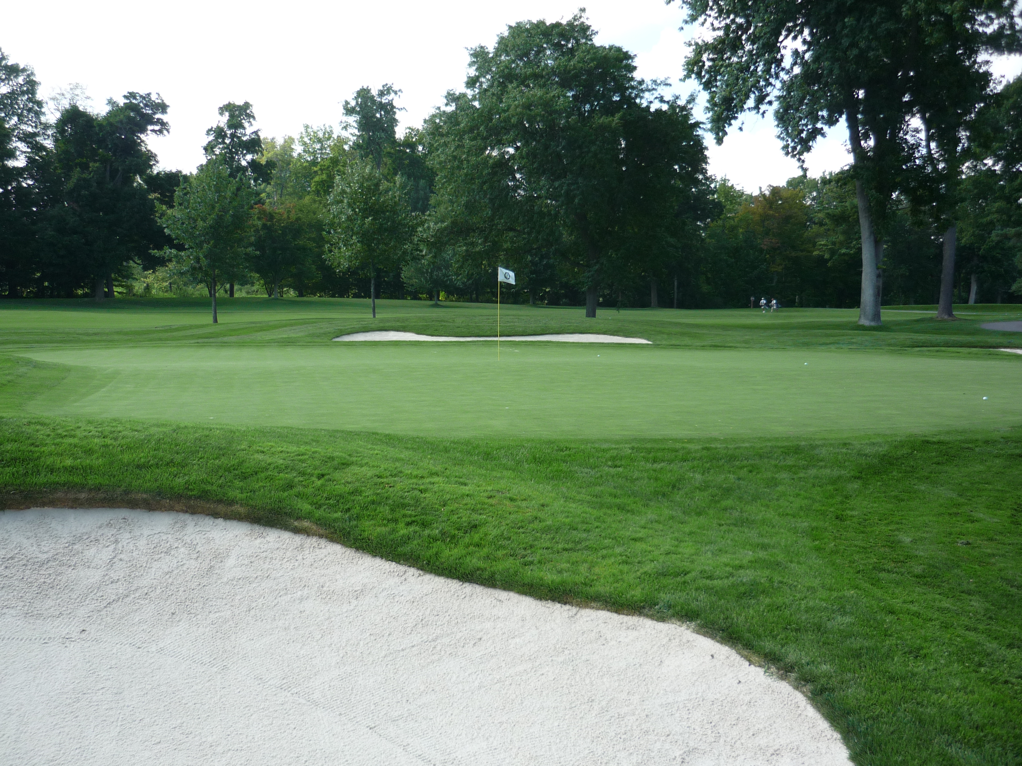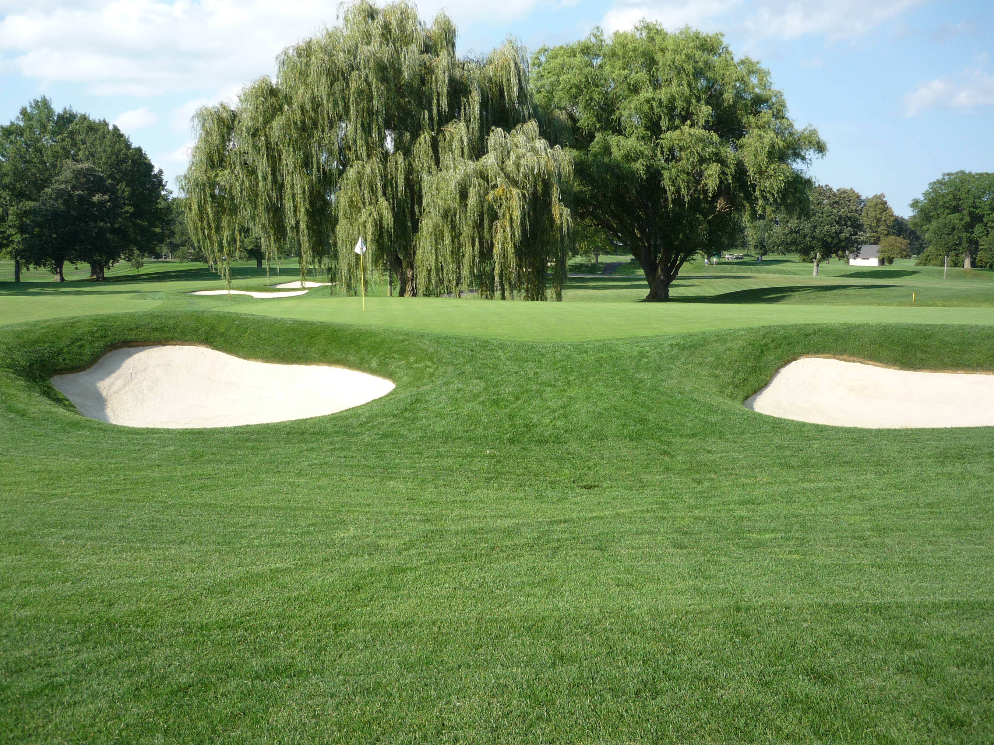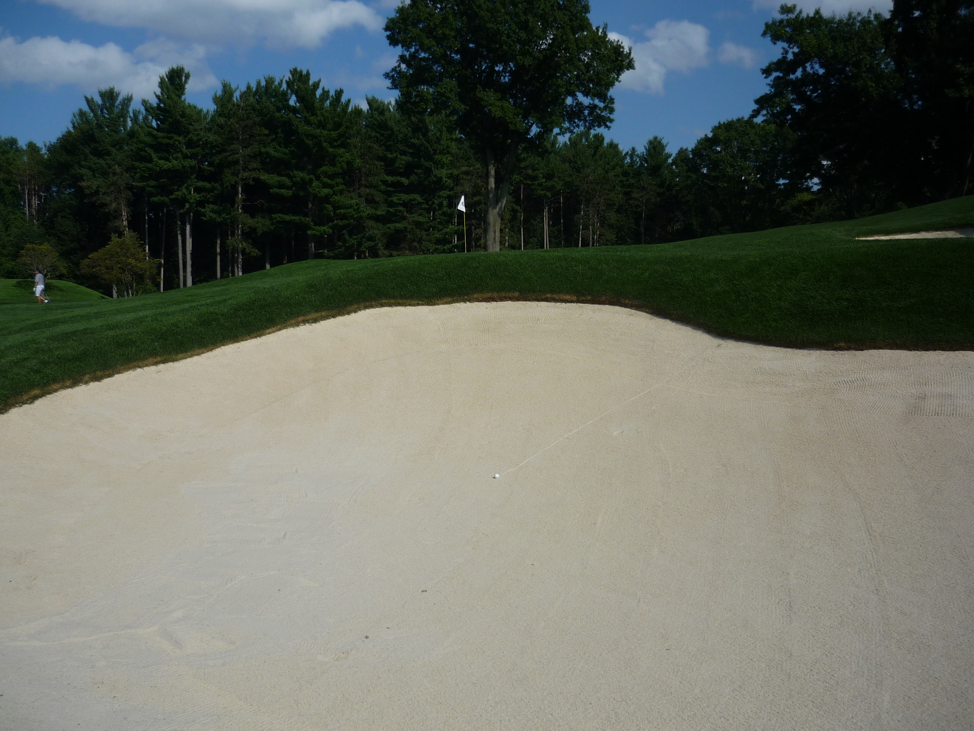 This view from the right of the green shows the massive bunker on that side.