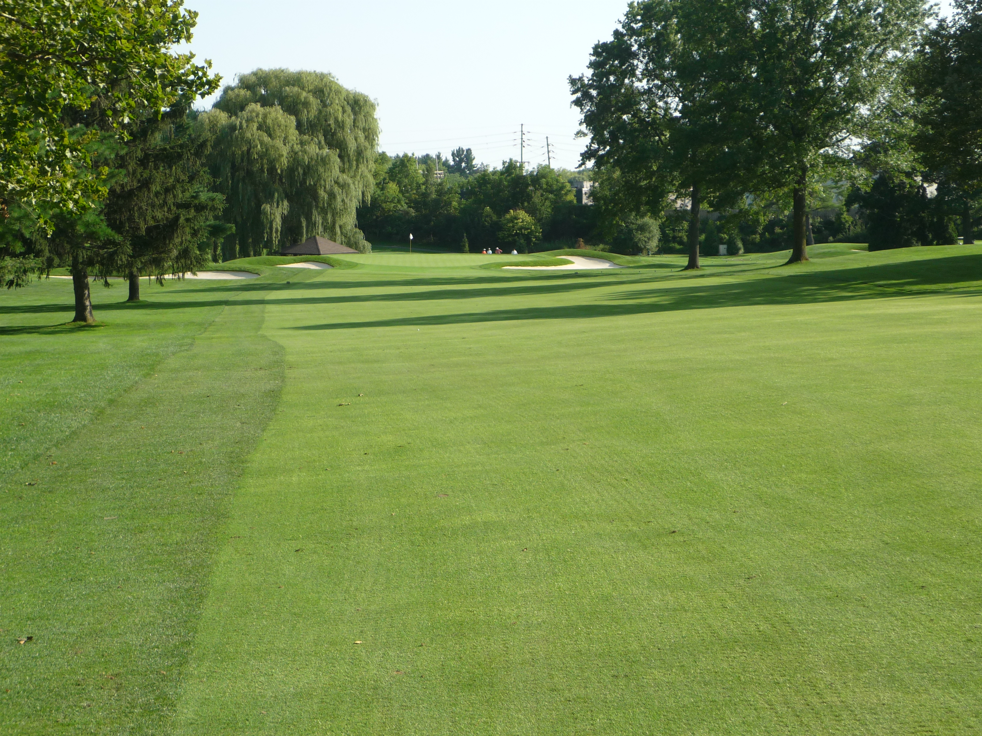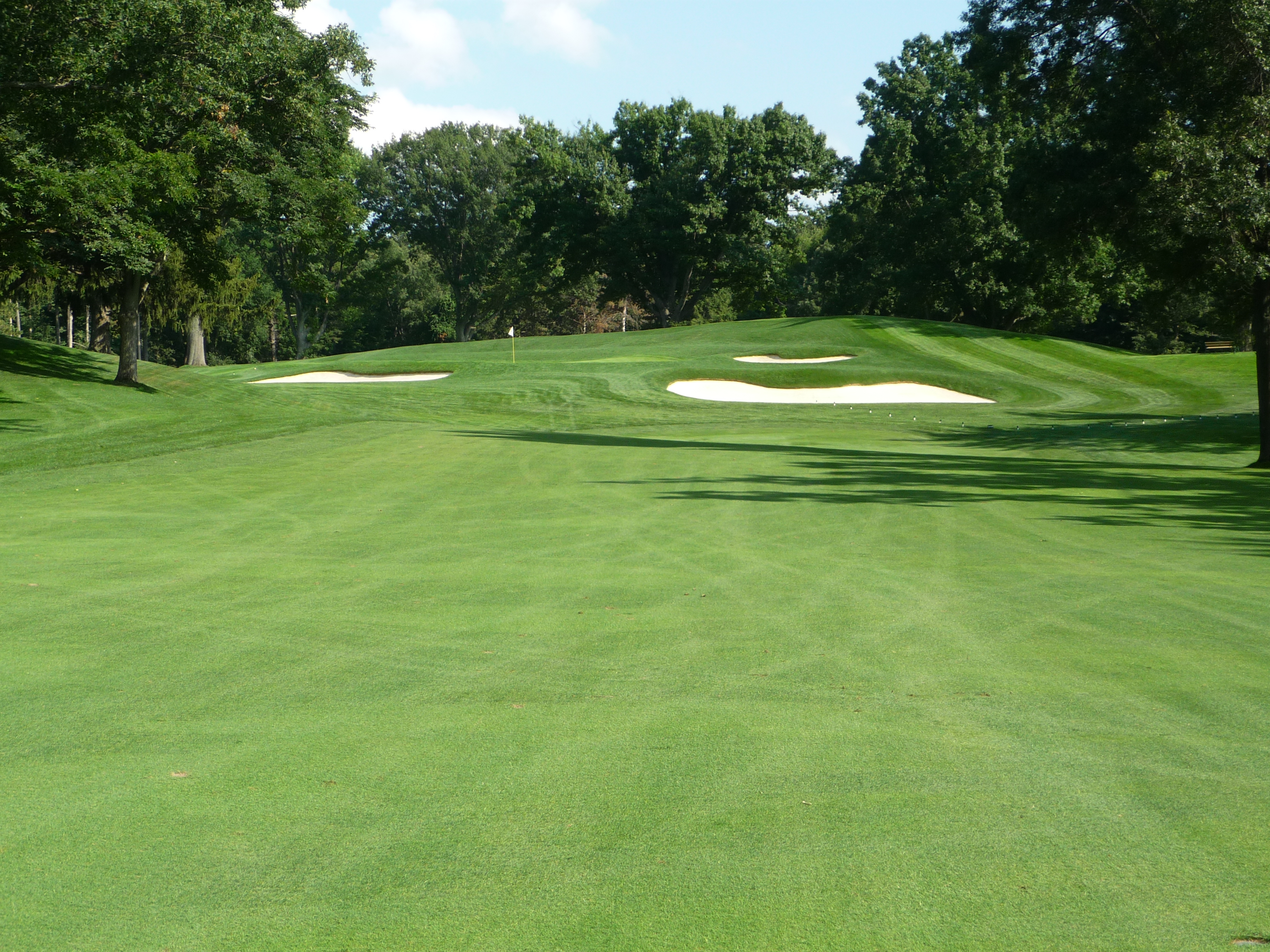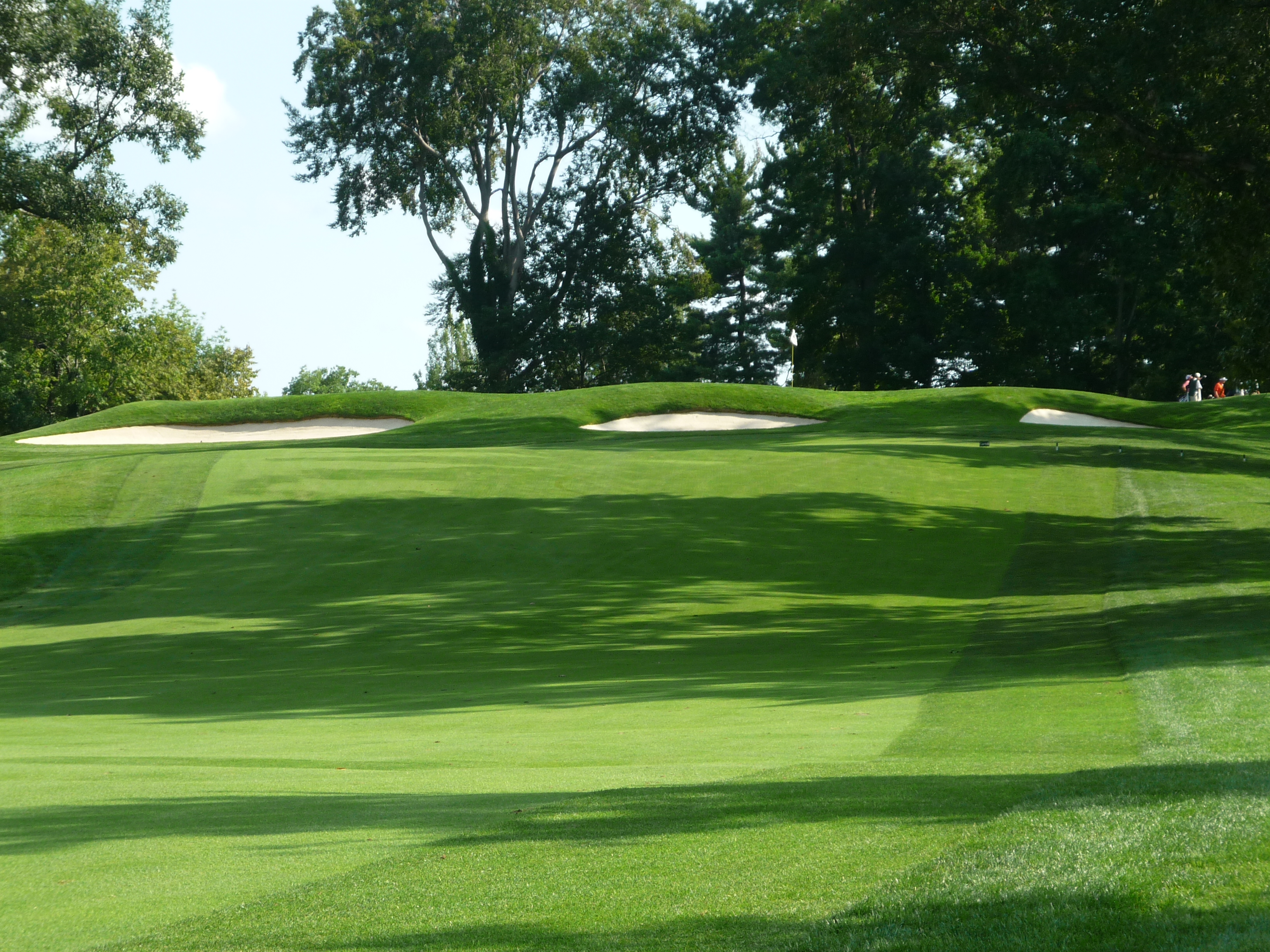 The approach shot plays up the hill. The first bunker on the right is not as close to the green as it may look.