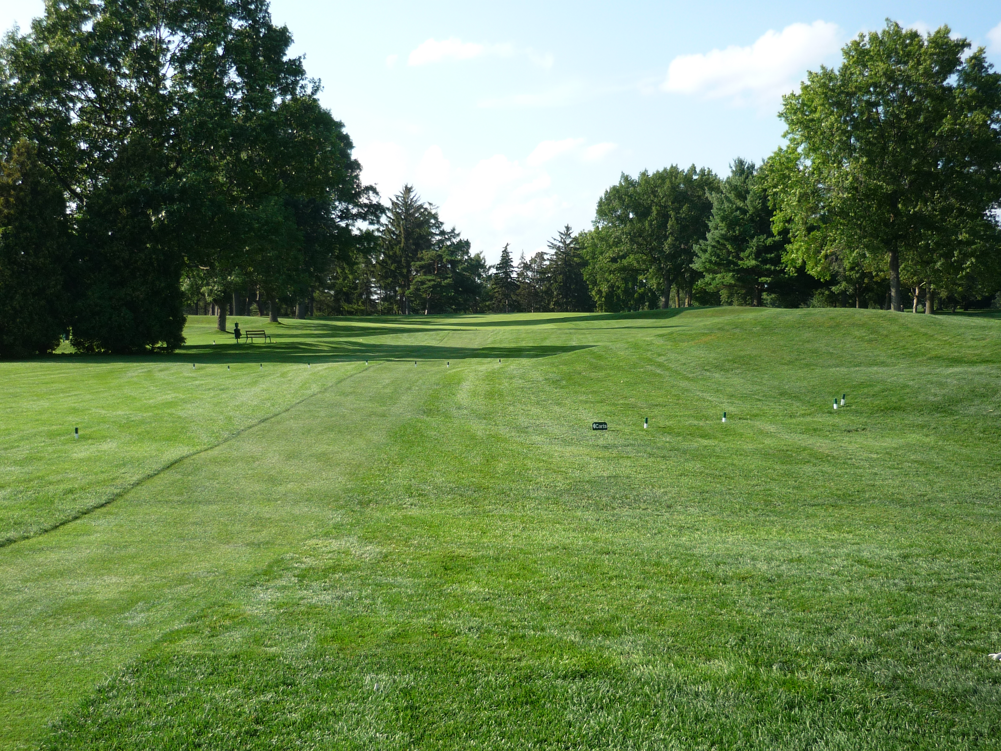 This is the signature hole of The East Course. The Hill of Fame is located here. It is a great hole from start to finish. It demands a good drive. The creek crossed the fairway and is up the right side as well.