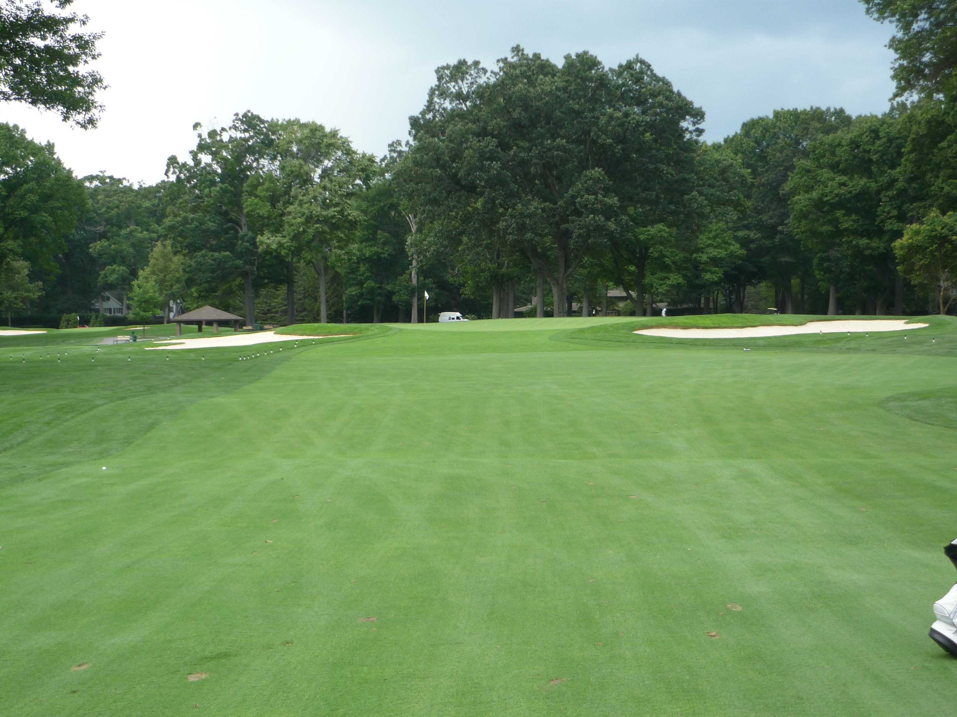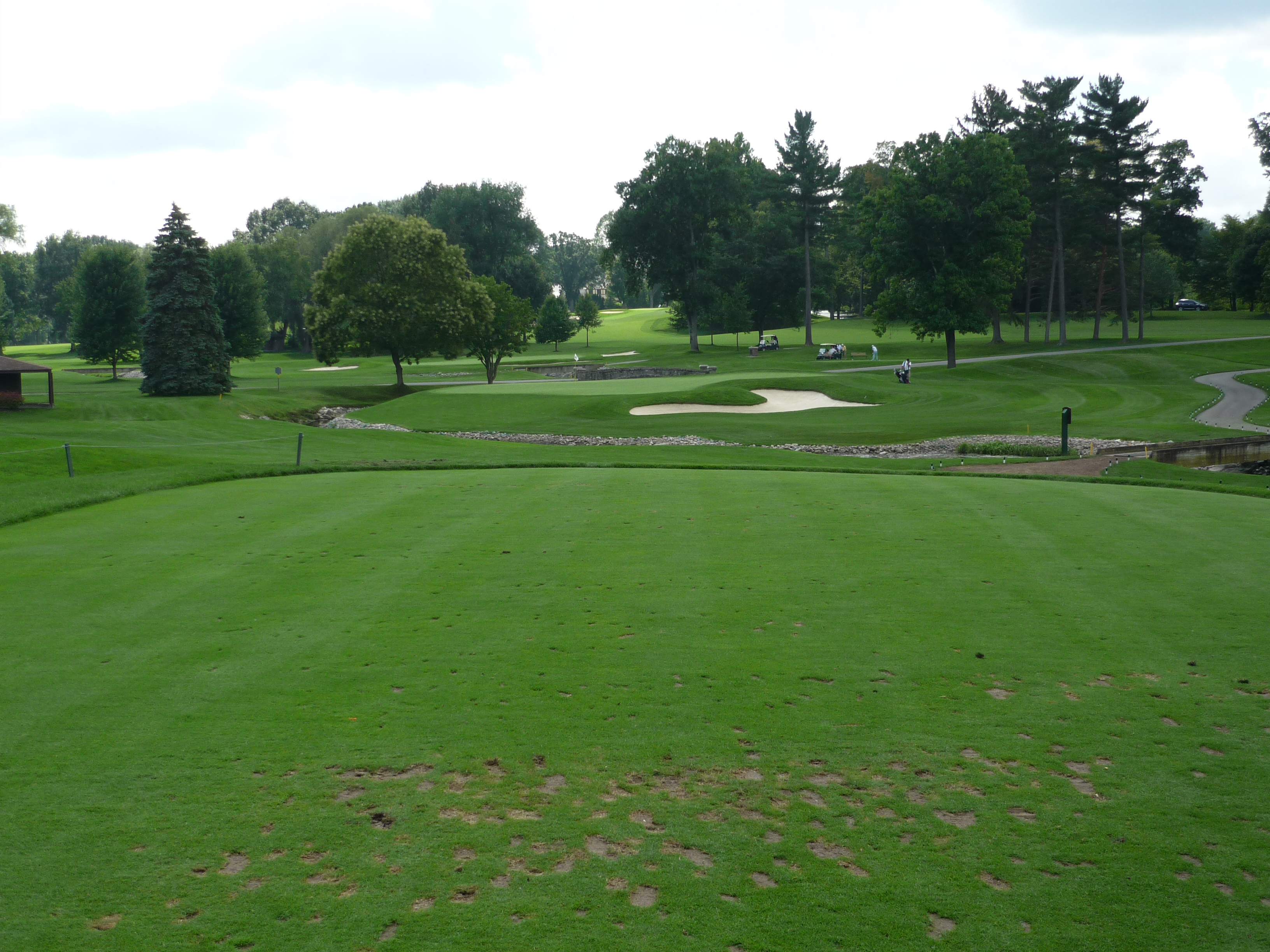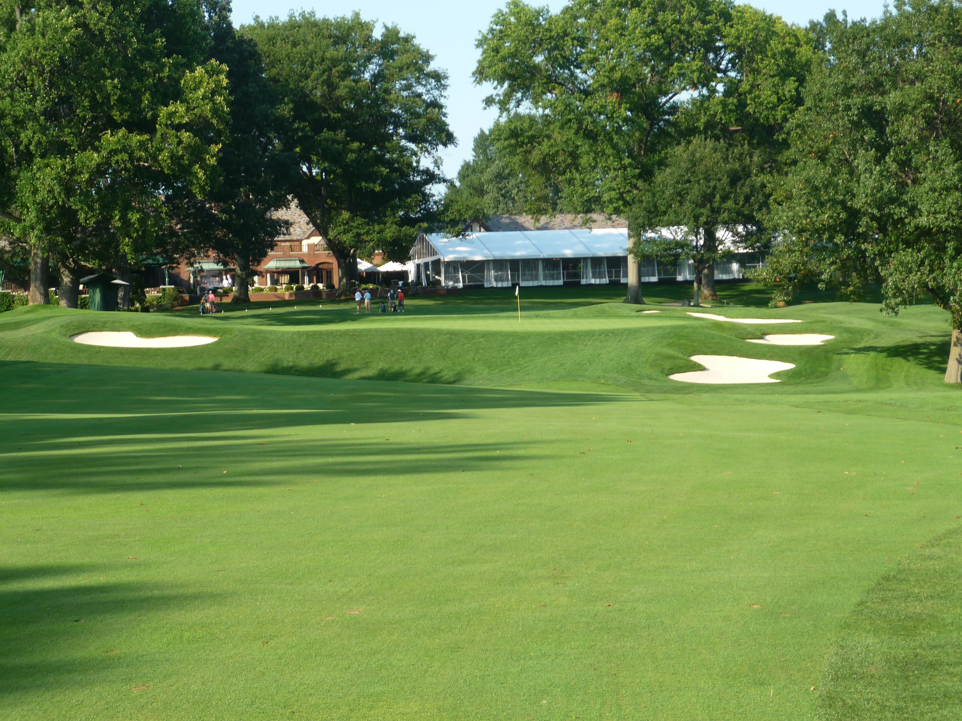 The last hole is no picnic. You need another long and straight drive here. That has been a hallmark of Oak Hill. You really need to position your tee shot. The bunkers on the right are in play so keep the tee shot to the left of them.