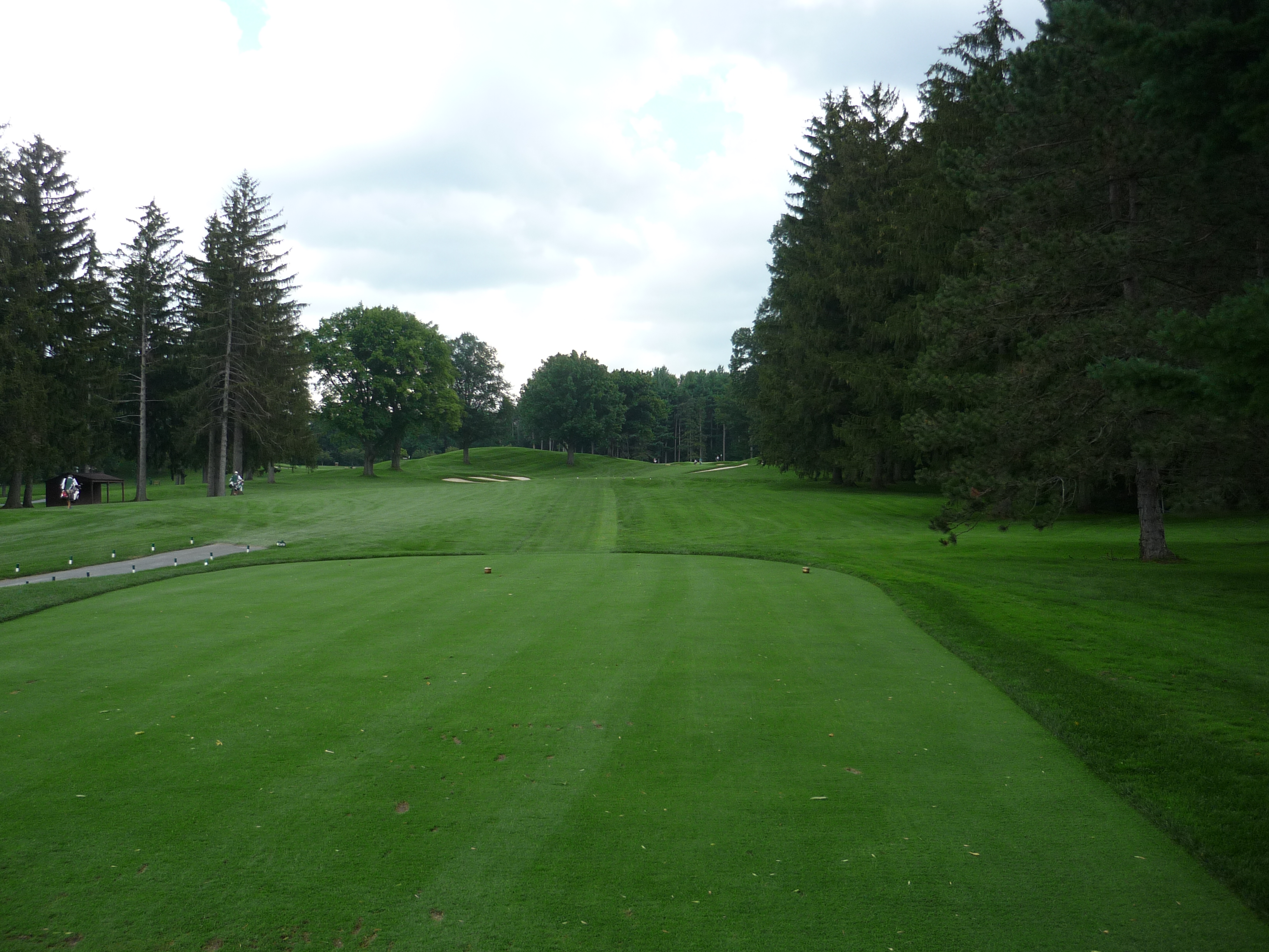 This hole is best played with a shorter club from the tee. The trees really hem down your aiming lines. You can see the green up the hill in the distance.