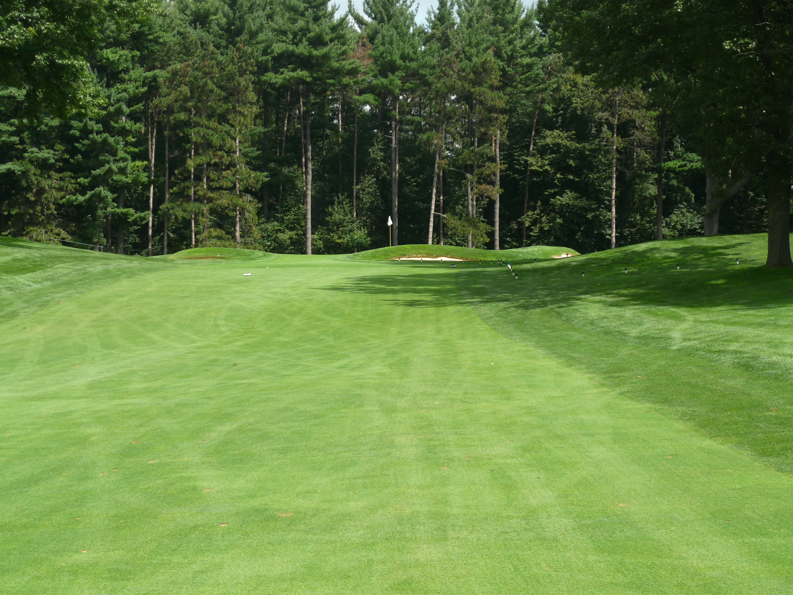 The approach shot plays uphill to a raised green. This one looked like quintessential Ross to me. There are three bunkers around the green ready to scoop up errant shots.