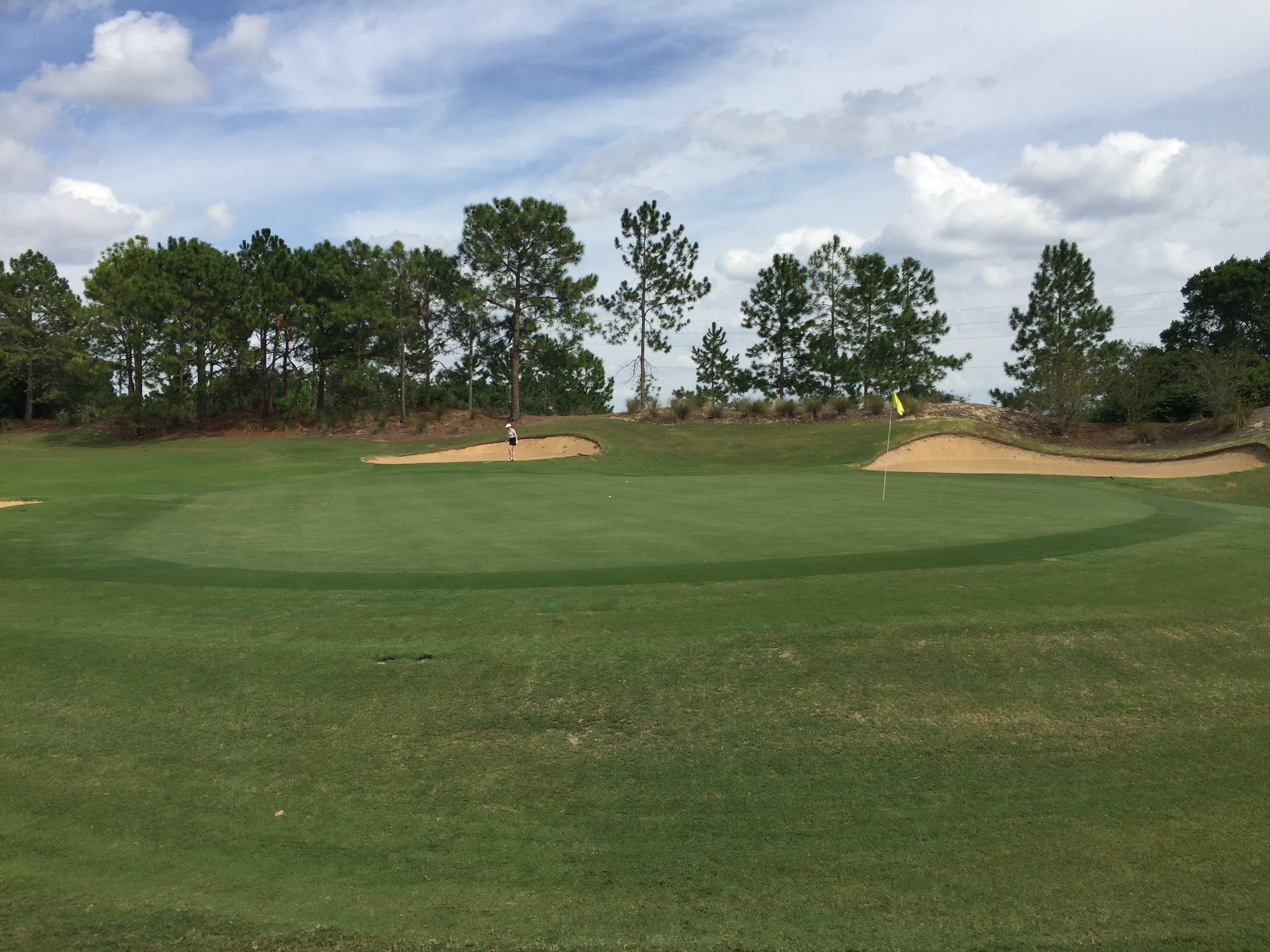 A wide view of the green shows that it is quite big. You may have to use your lag putting skills.
