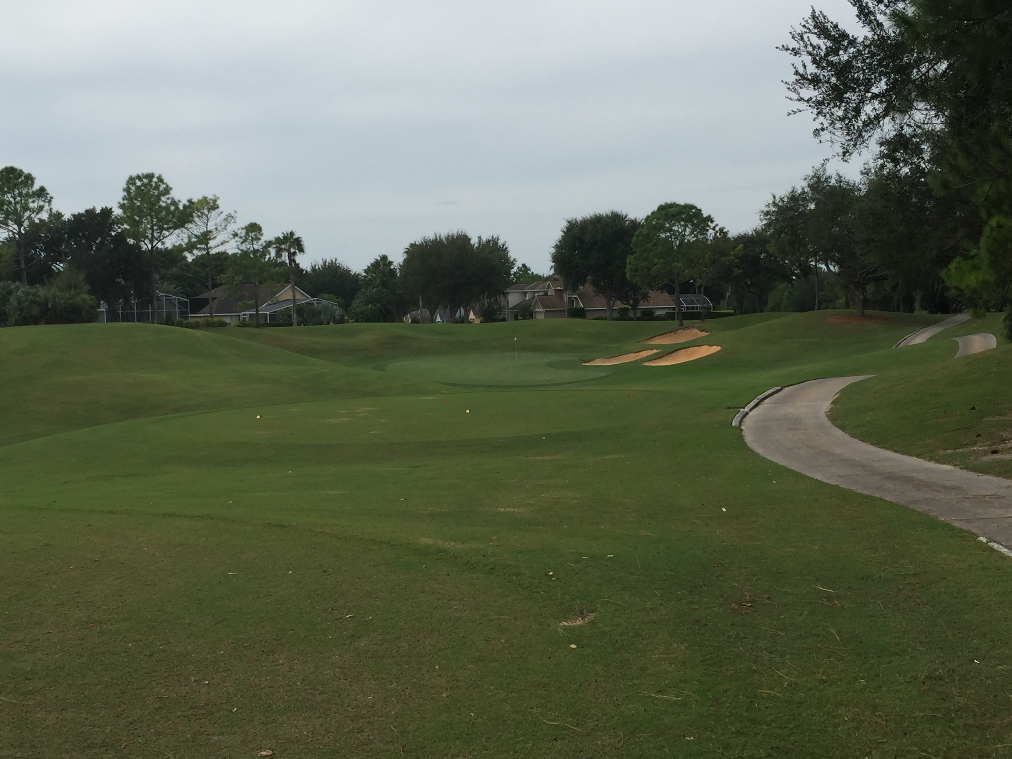 This one can be reached in two with a good drive. We weren’t getting a ton of roll, but on a drier day I can see many people getting home. A good line is up the left side of the cart path.