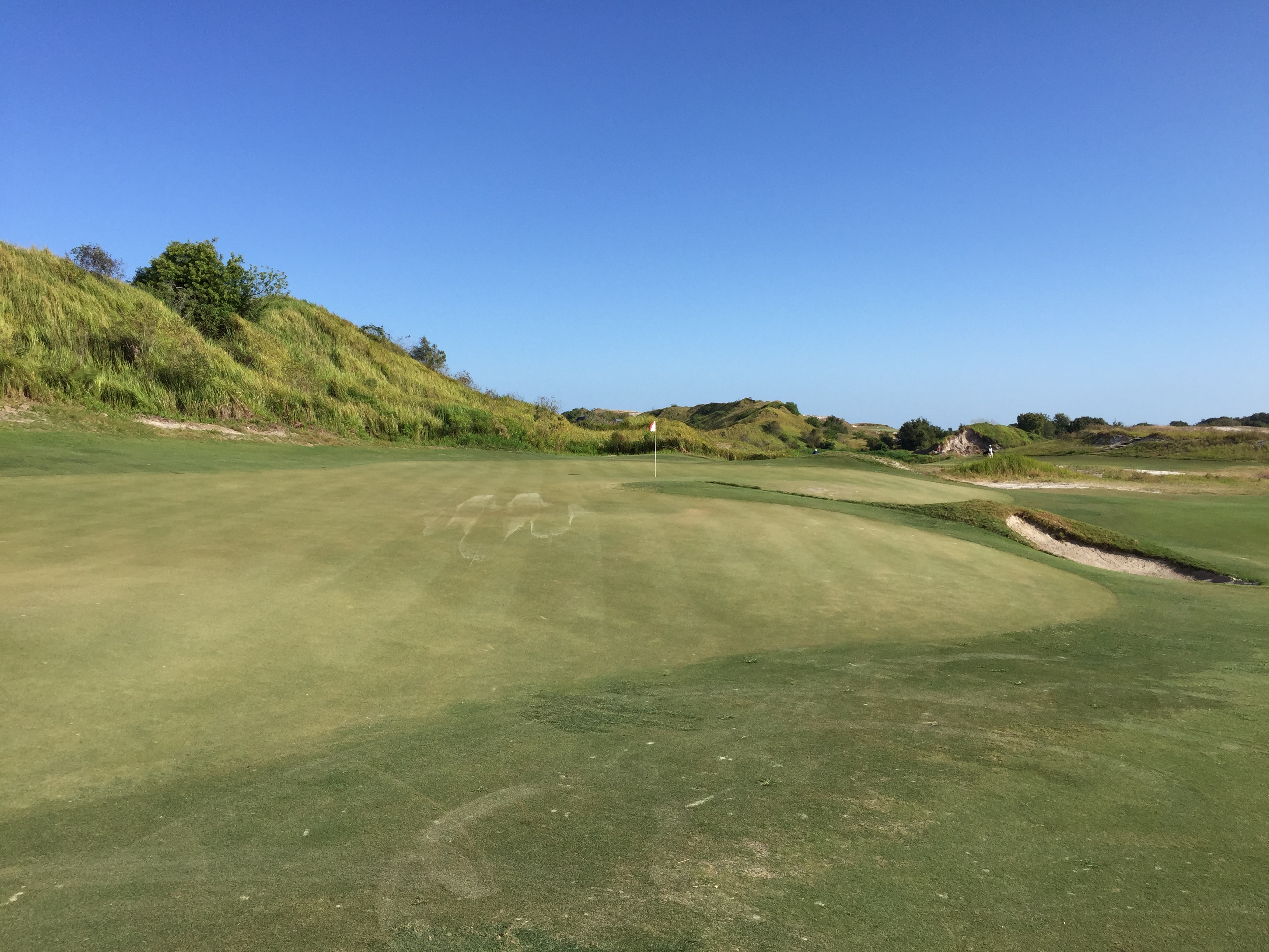 This one of the most unique greens I have seen. There is a big portion to the left of the dune and then it wraps around to another piece.
