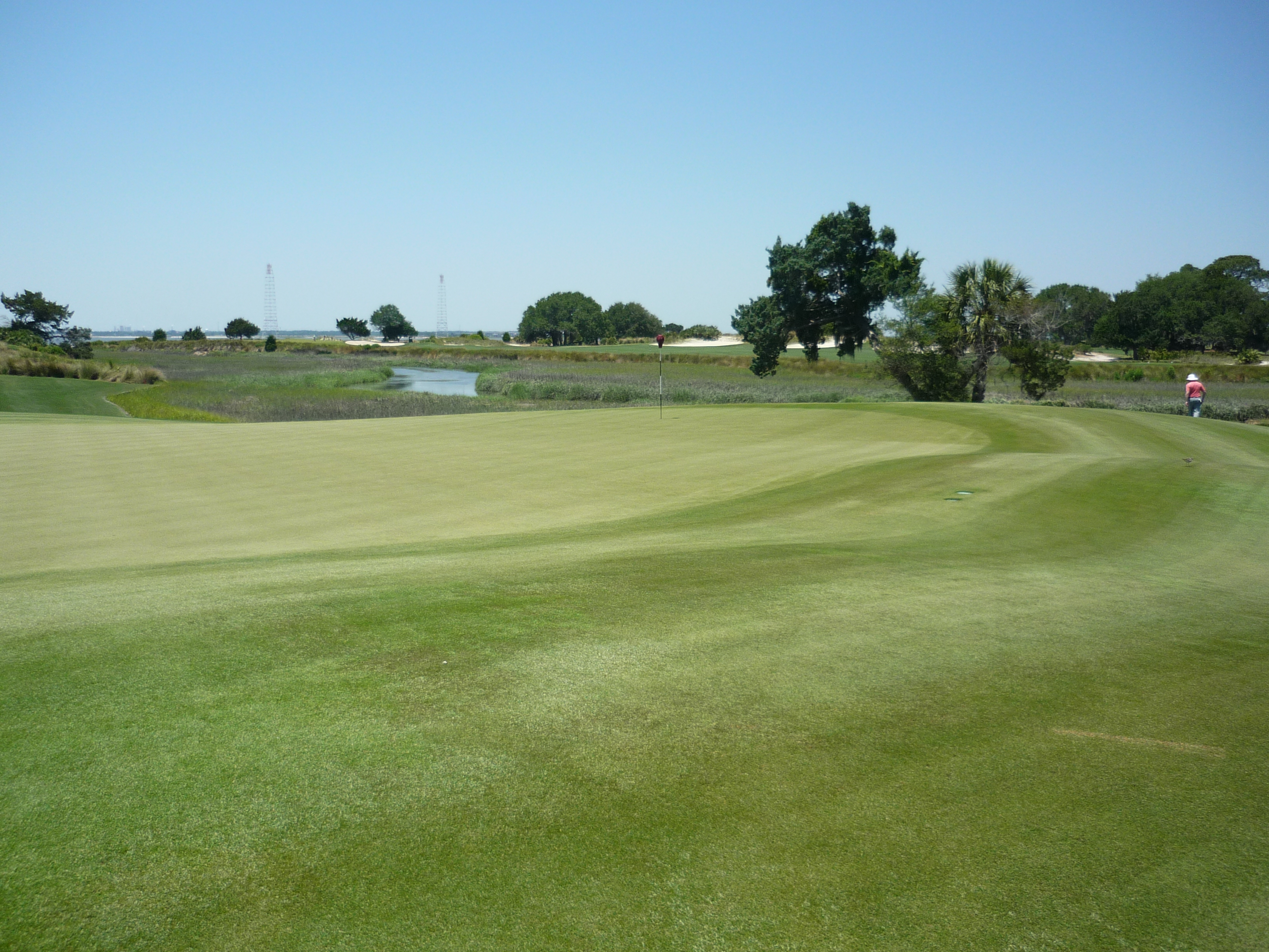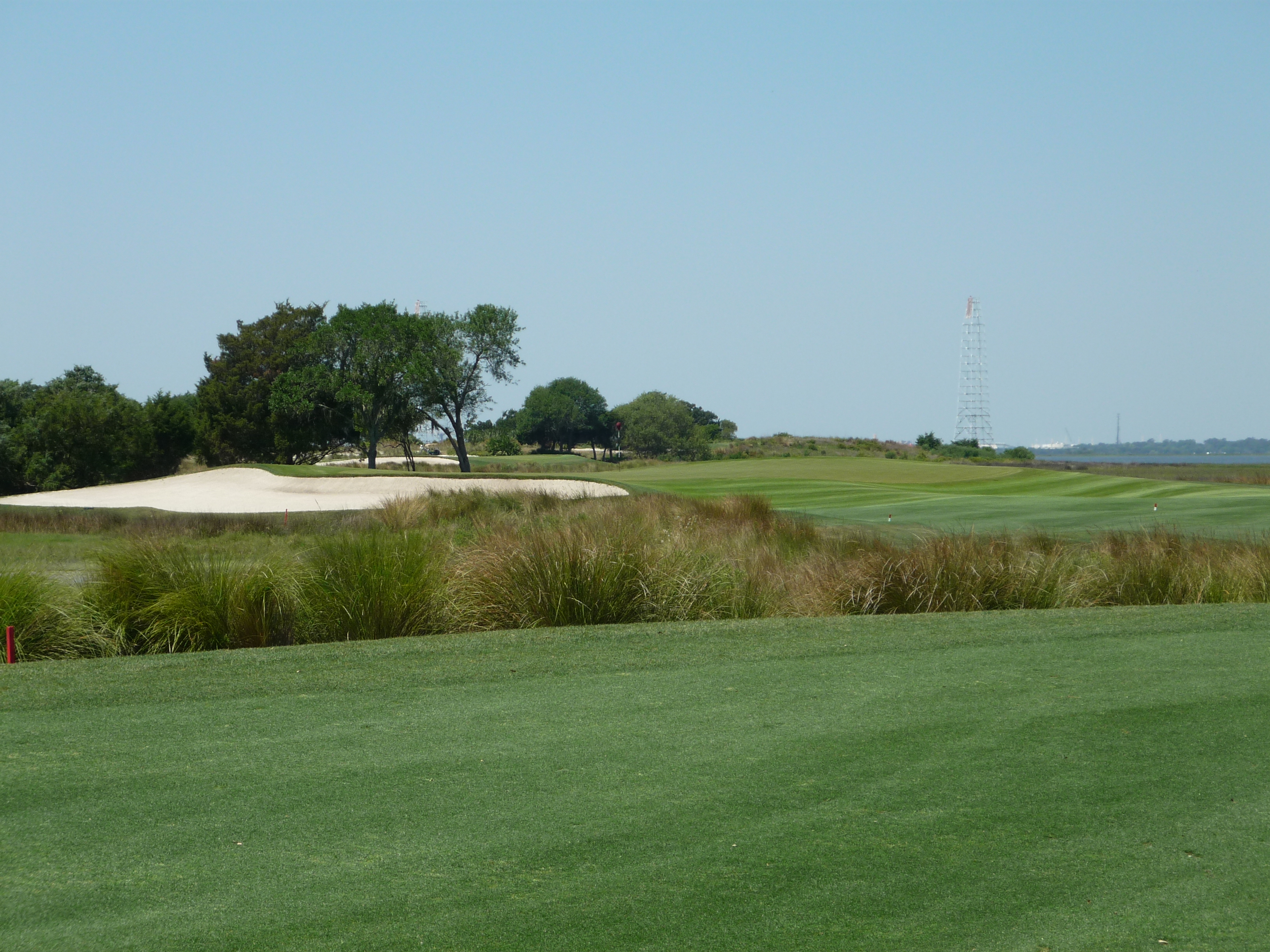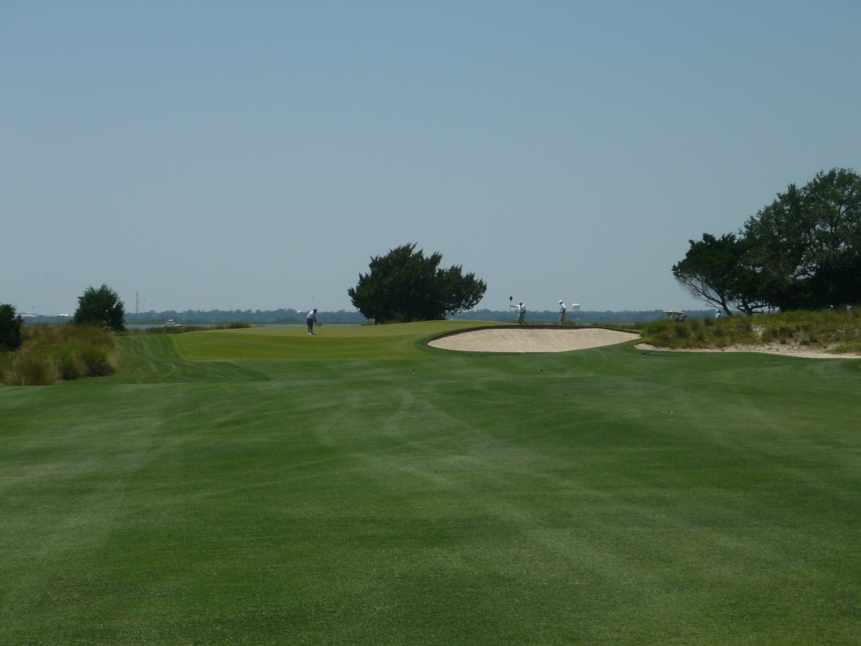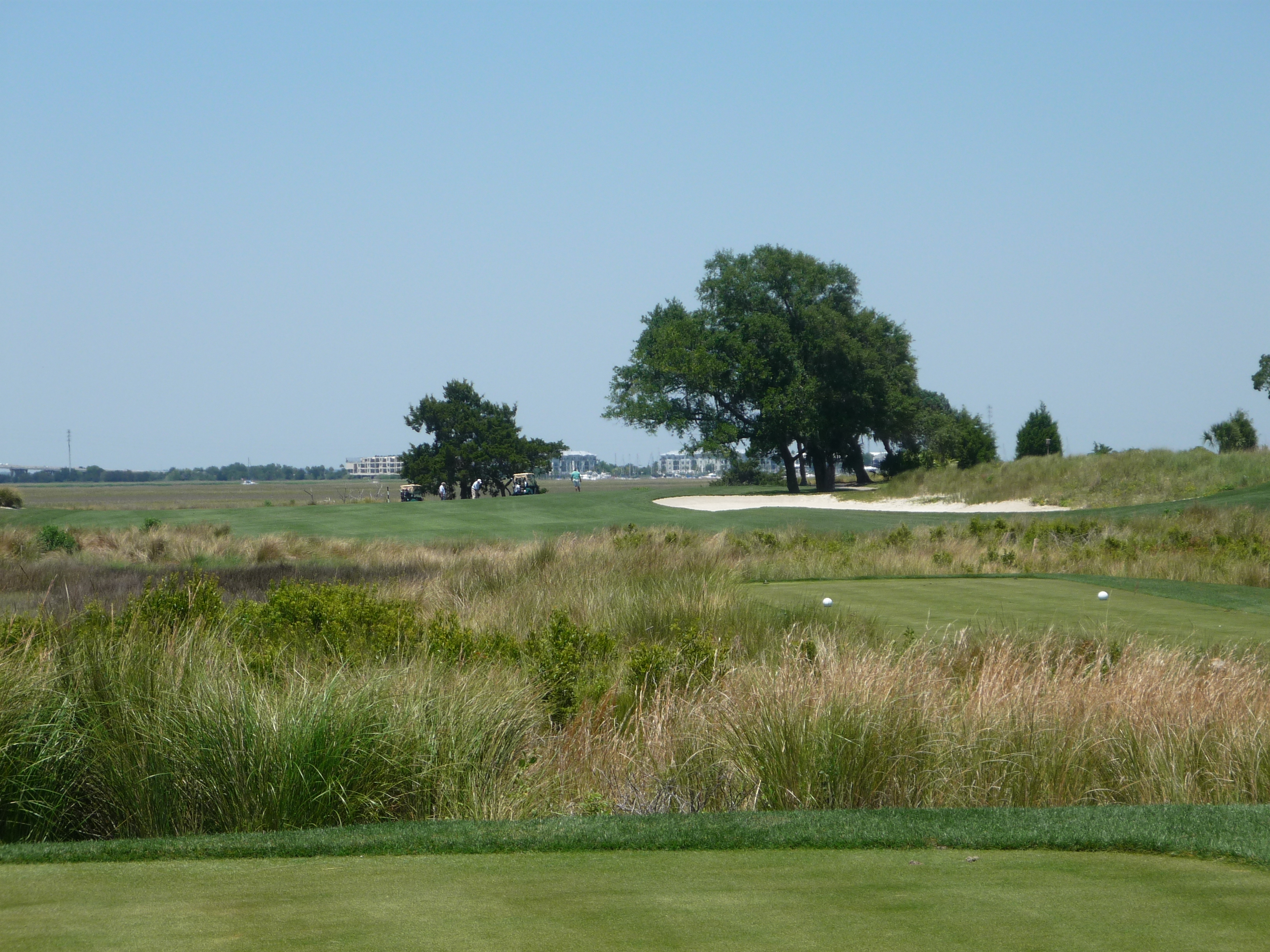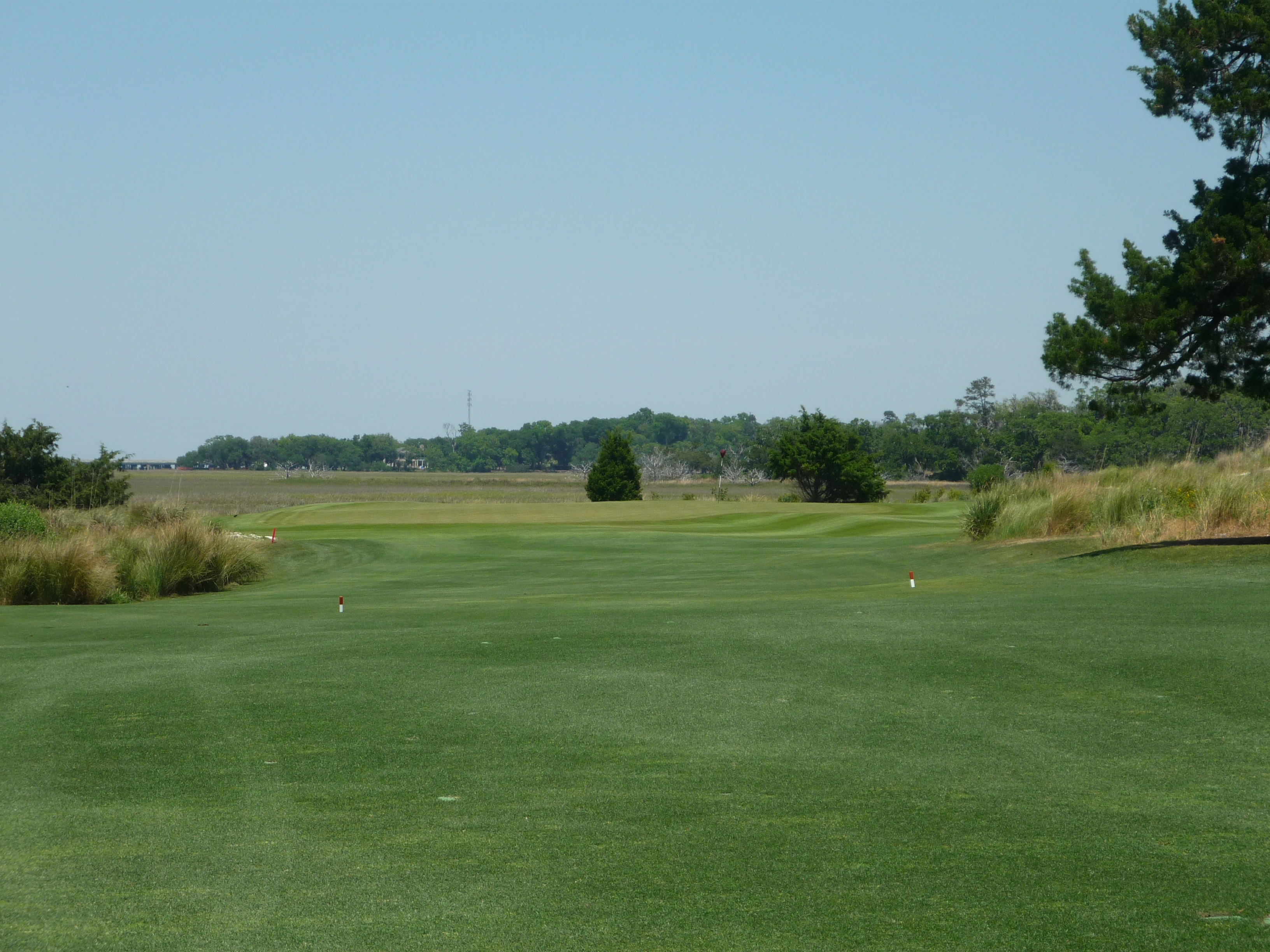 The second shot plays back to the left over the marsh. Like the last few holes the green is at the big bunker.