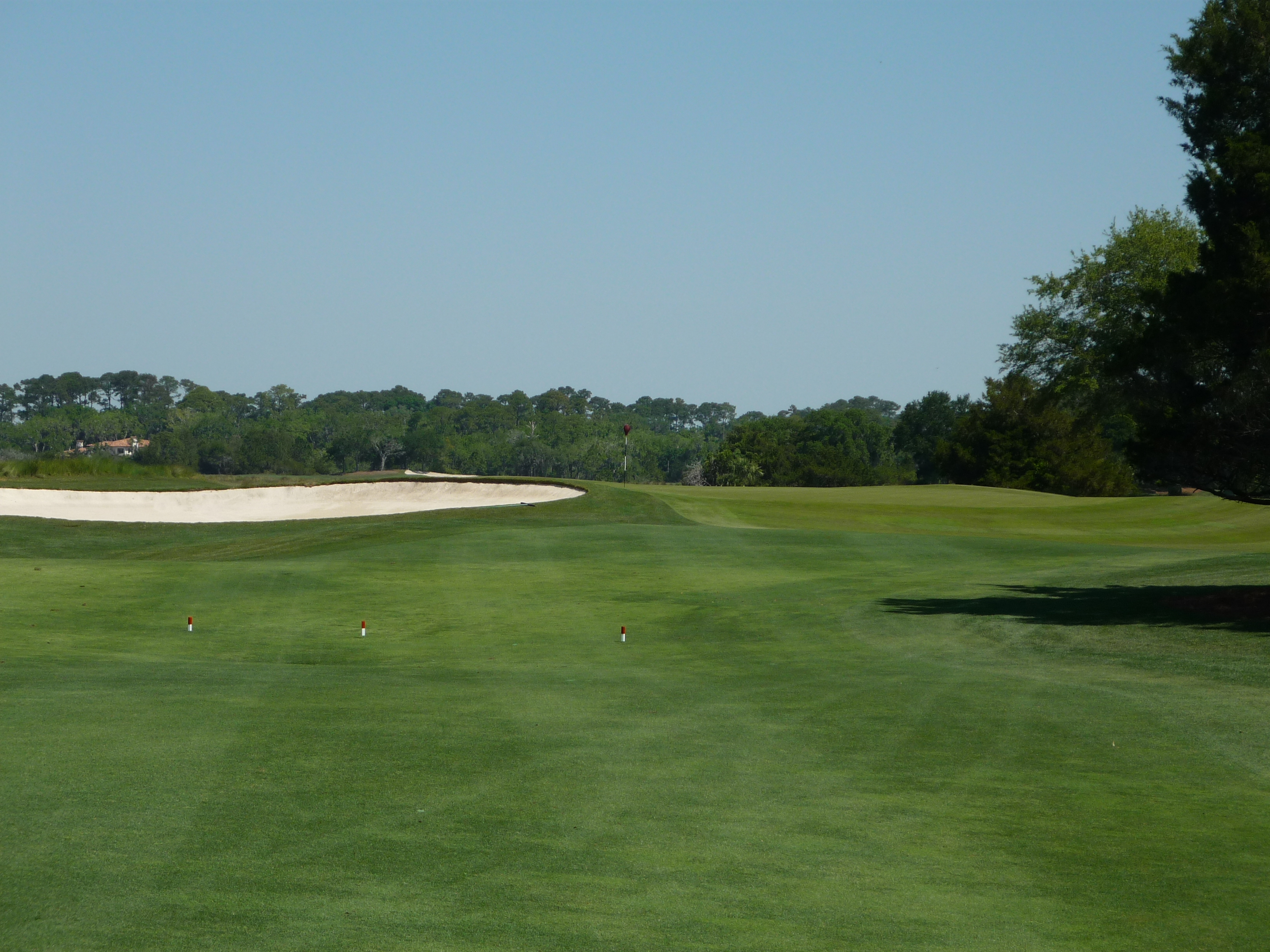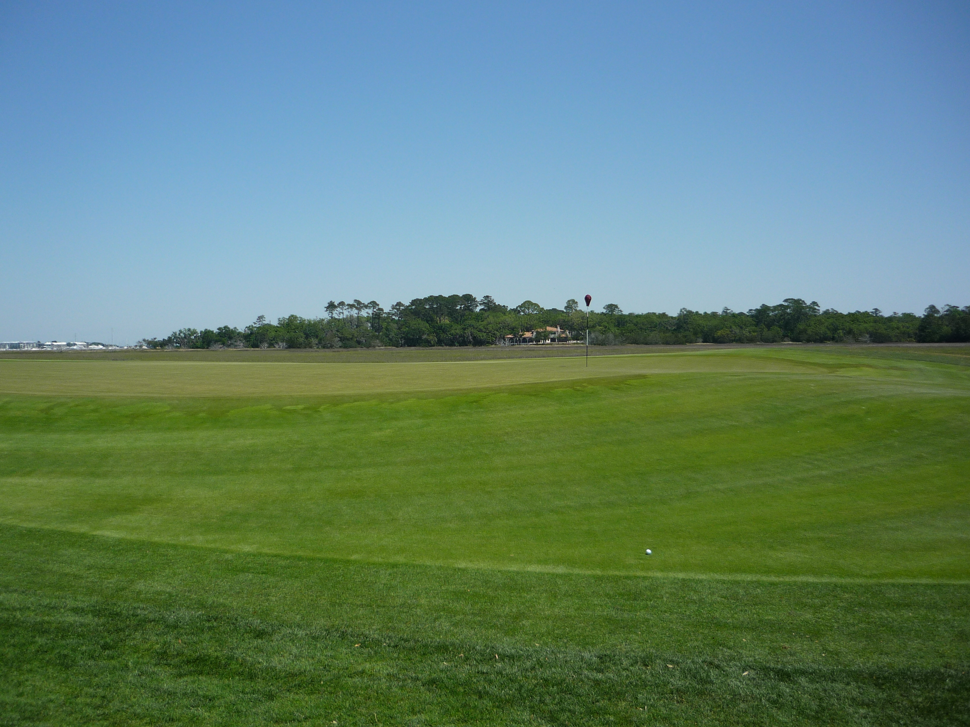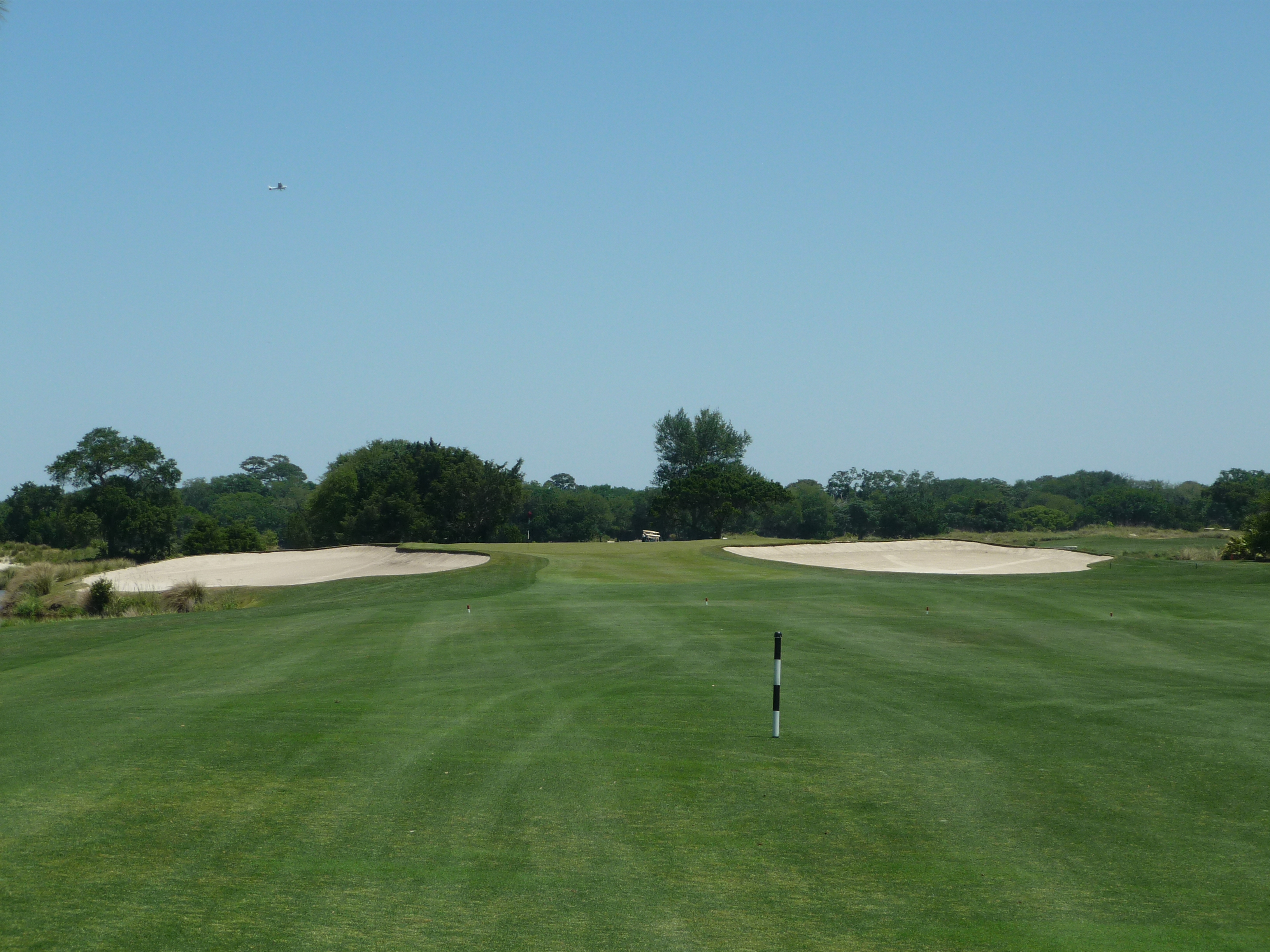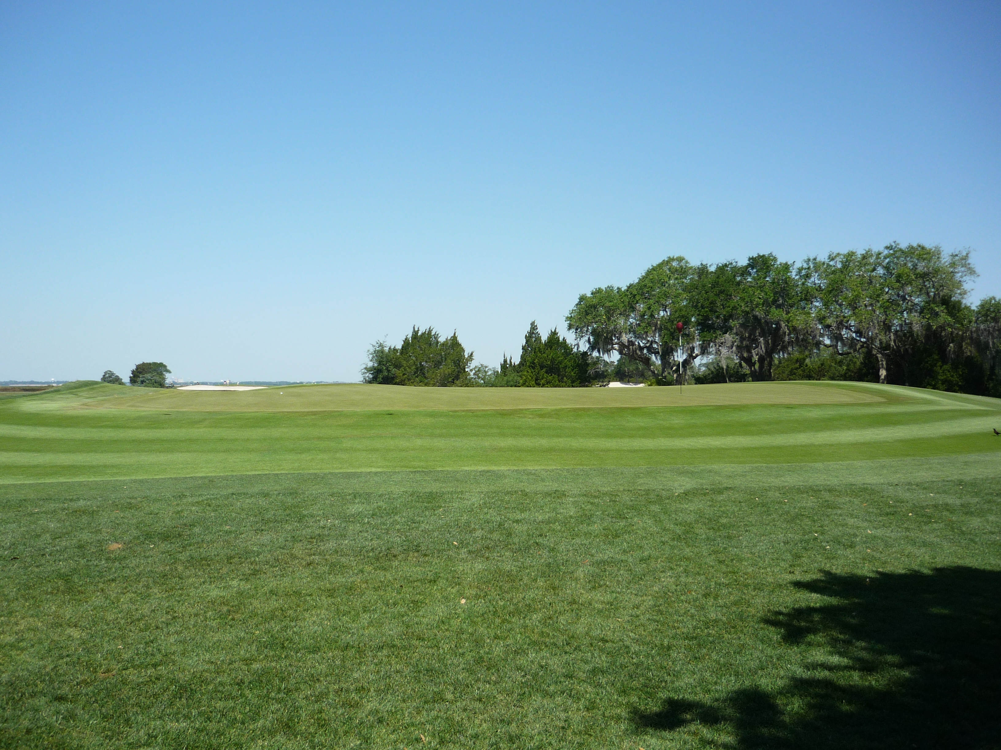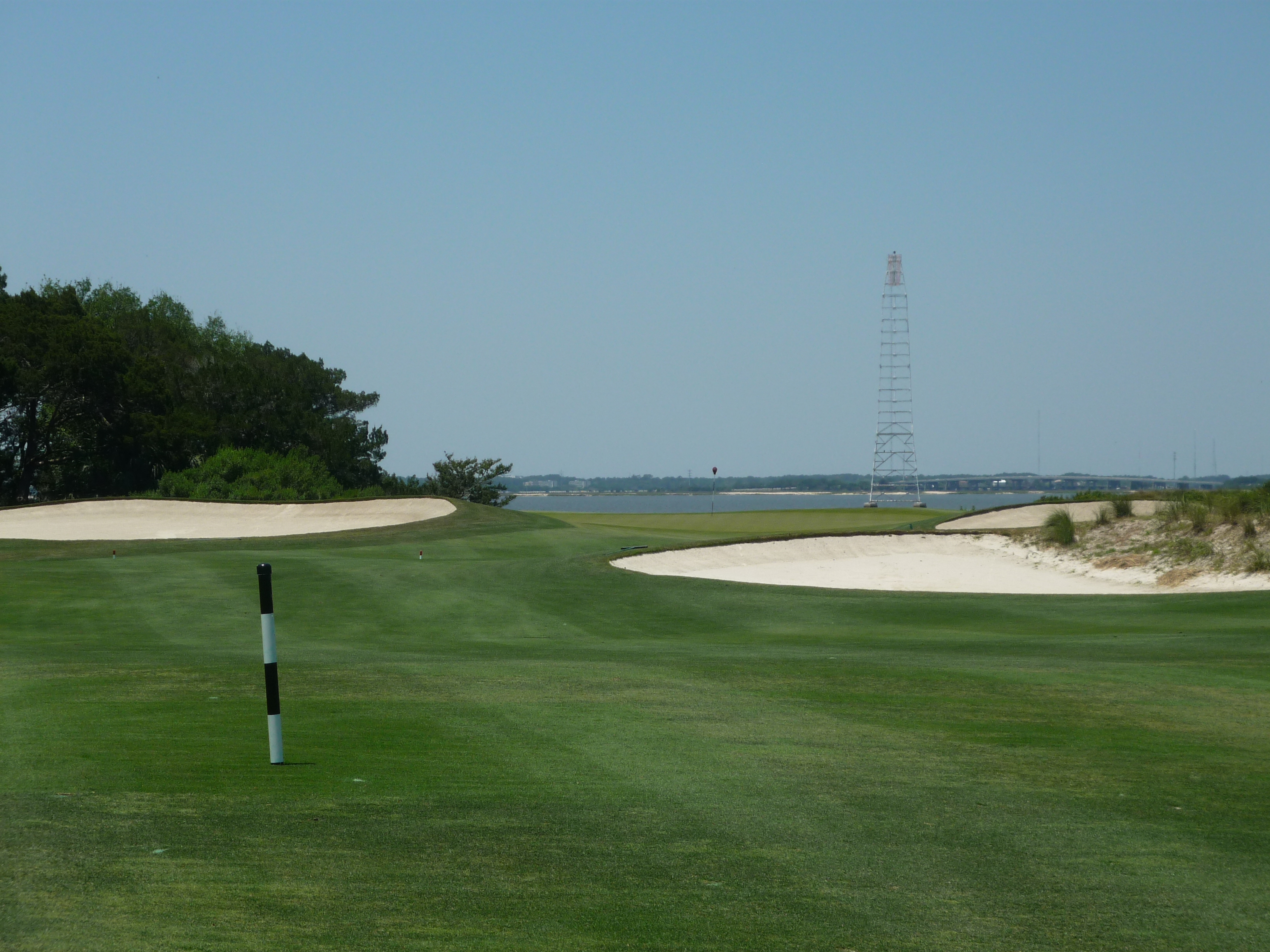 The second shot plays back to the left over the marsh. Like the last few holes the green is at the big bunker.