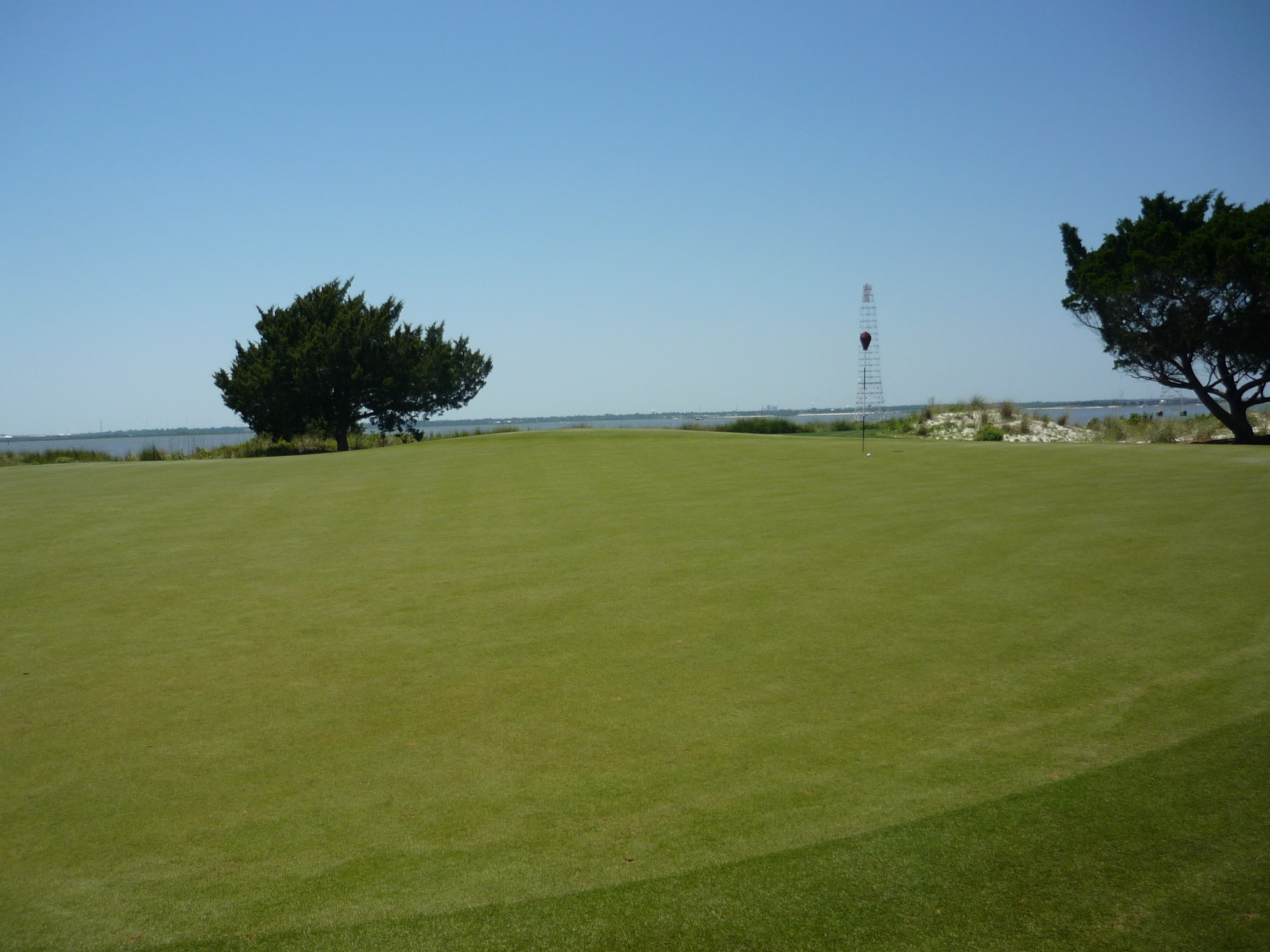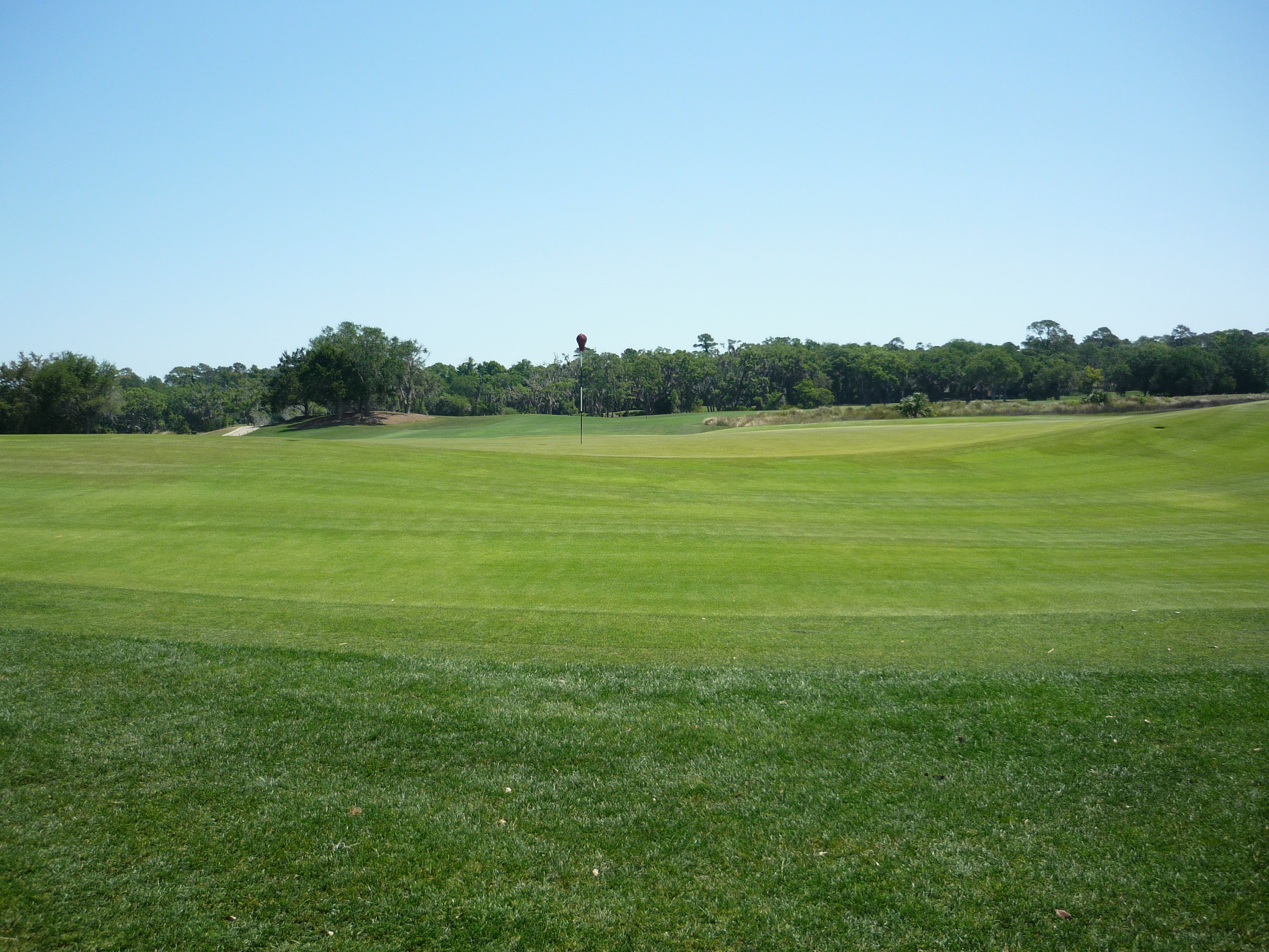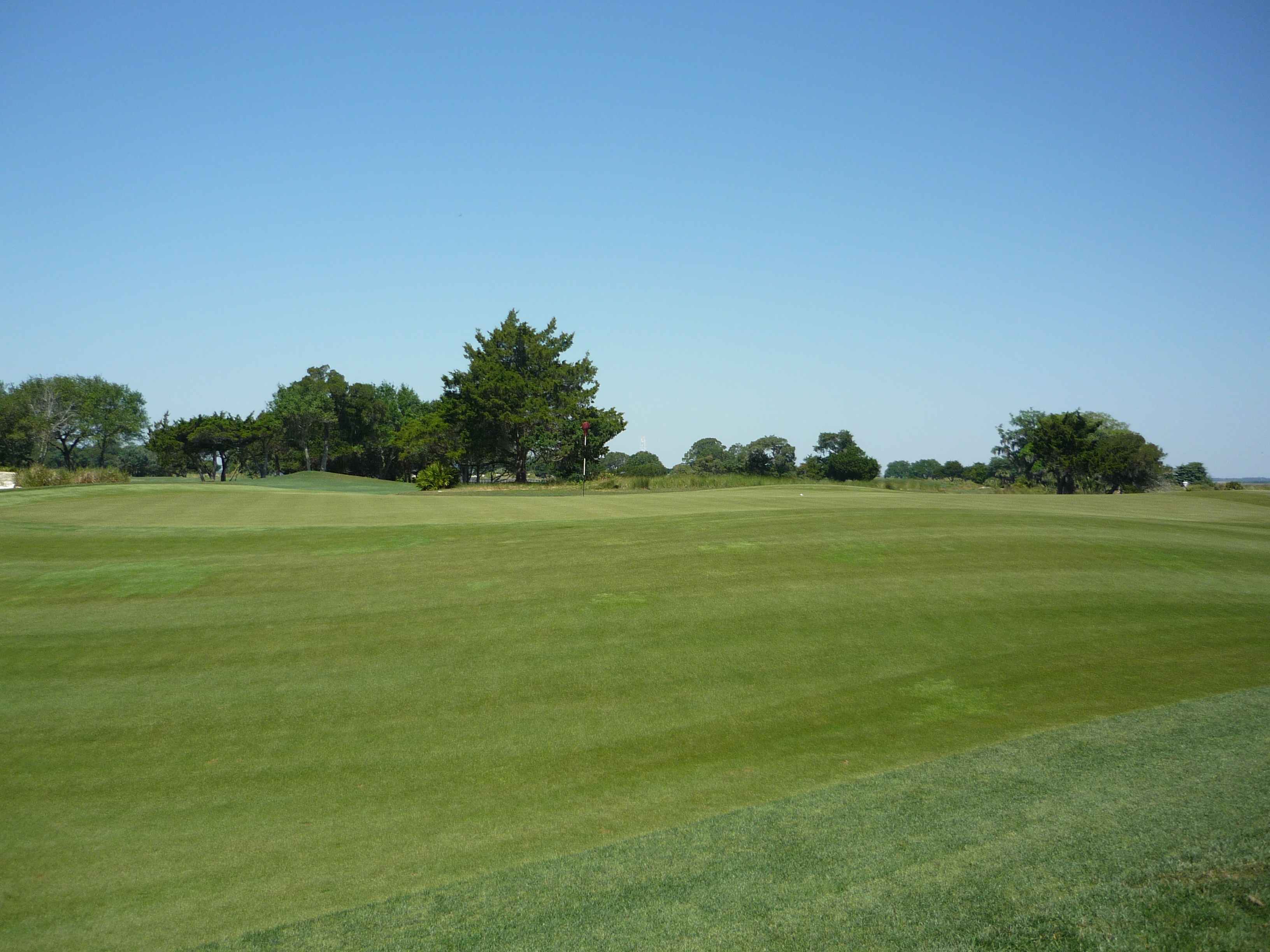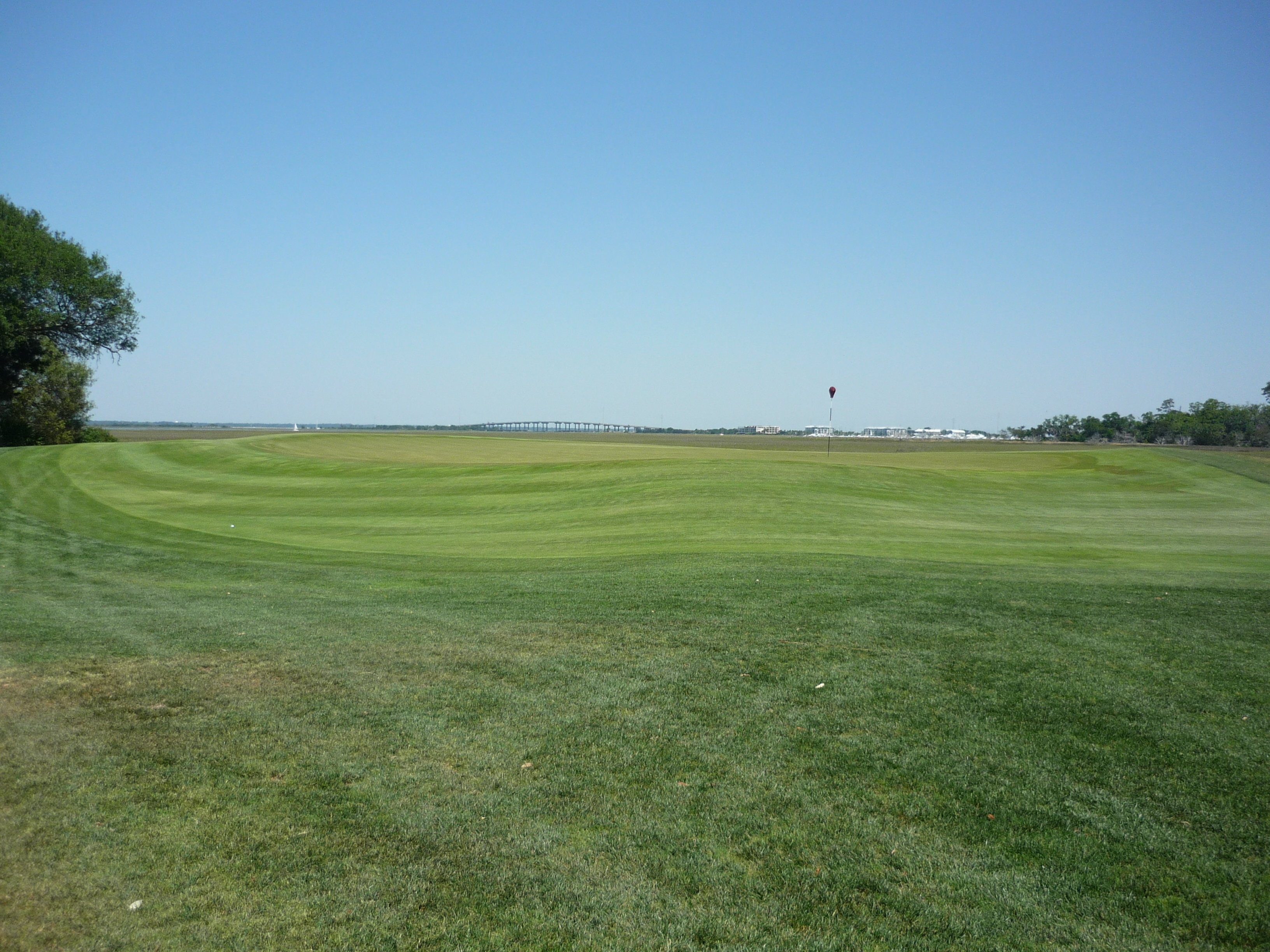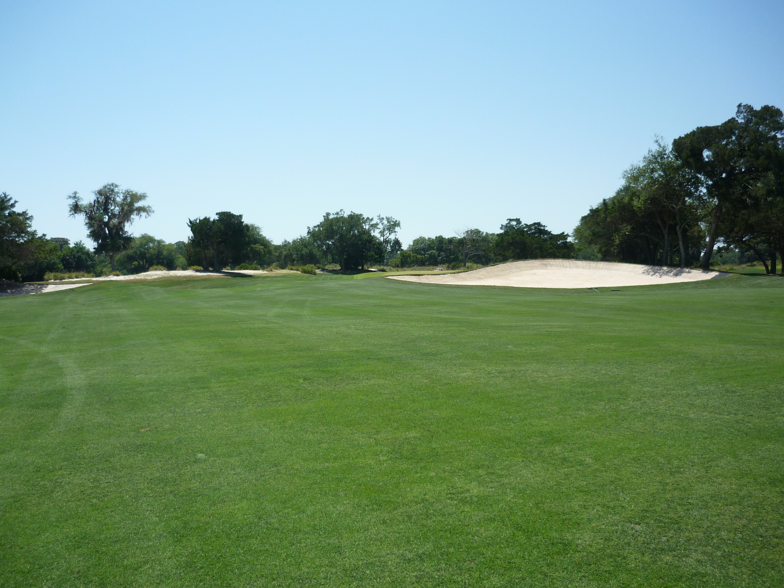 The second shot plays back to the left over the marsh. Like the last few holes the green is at the big bunker.