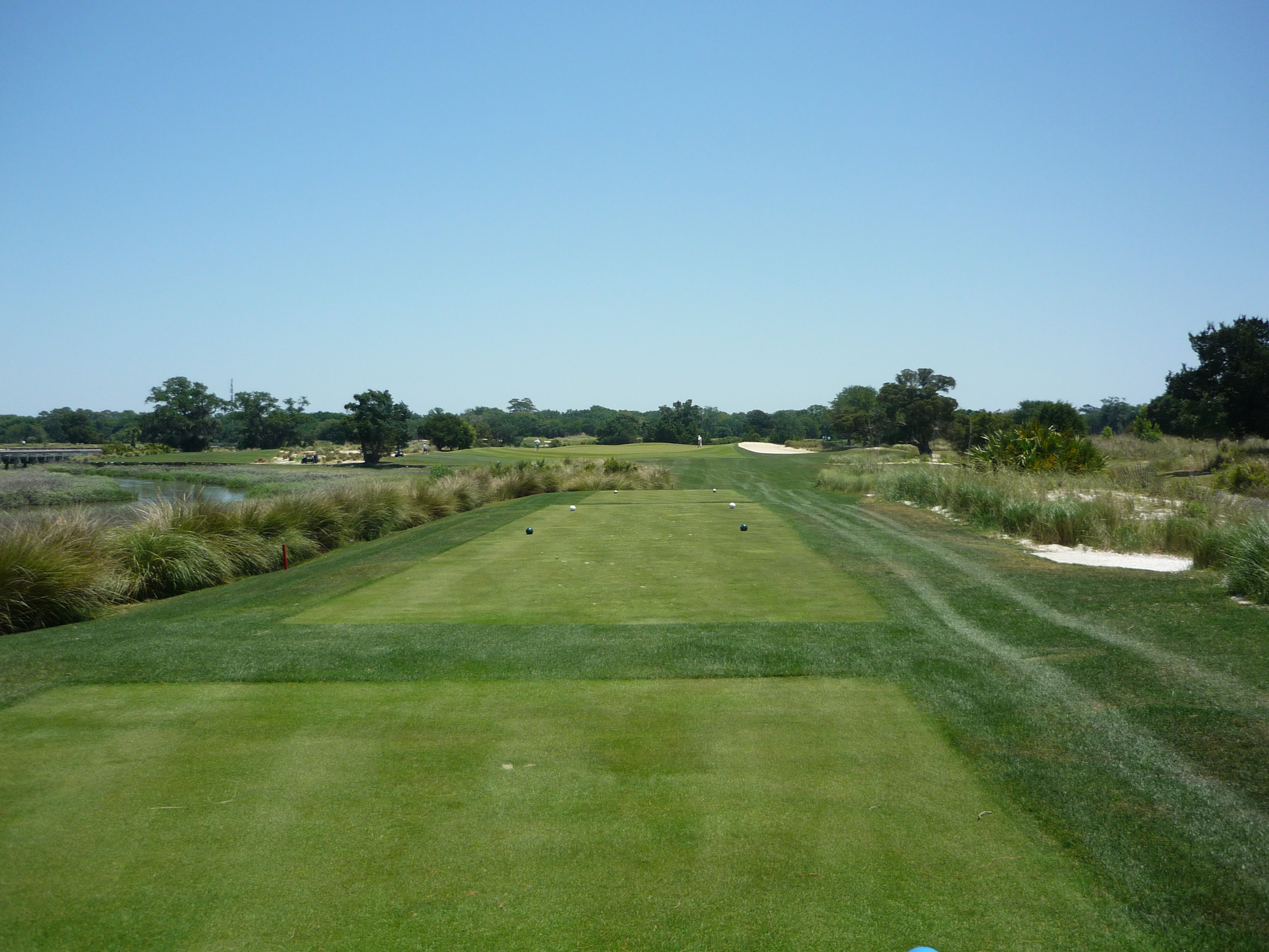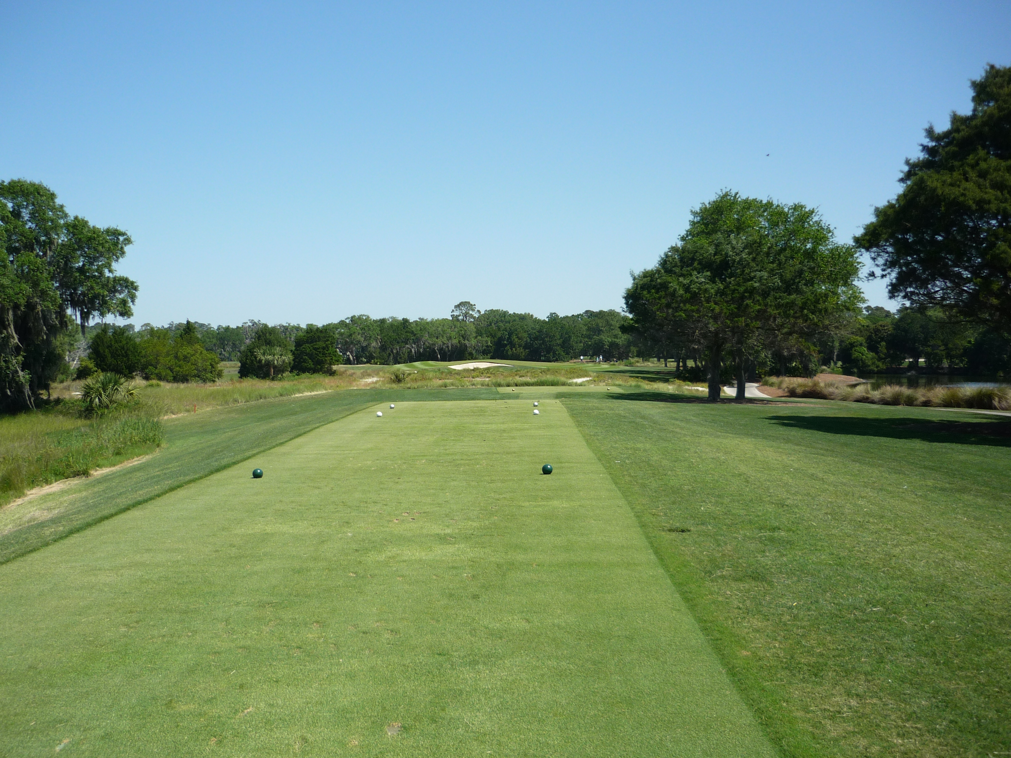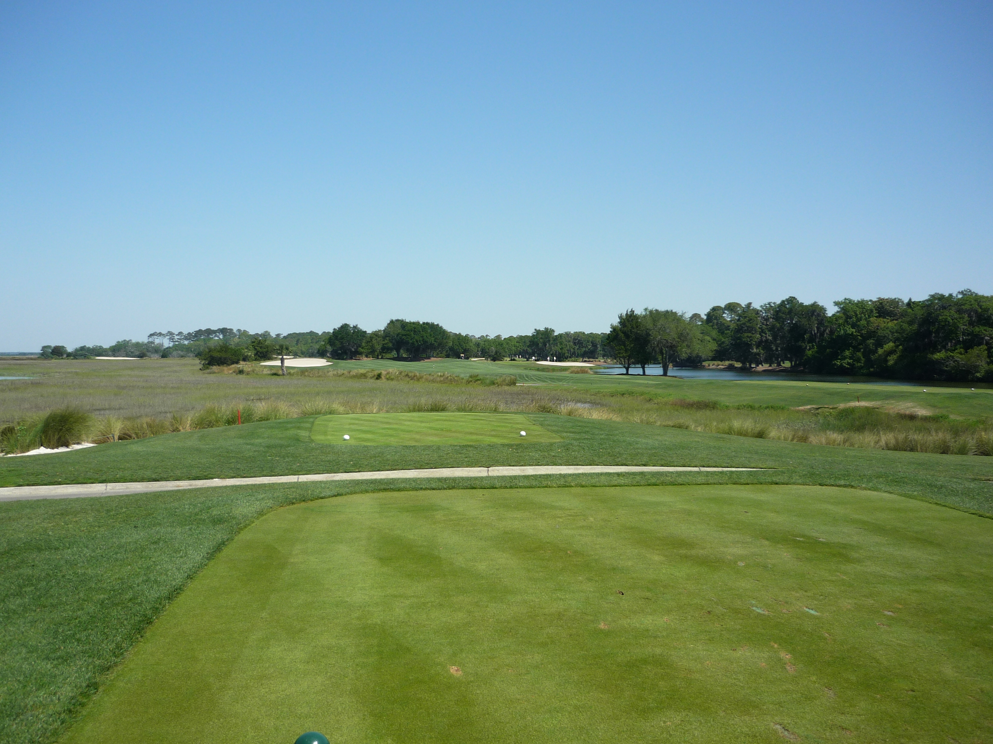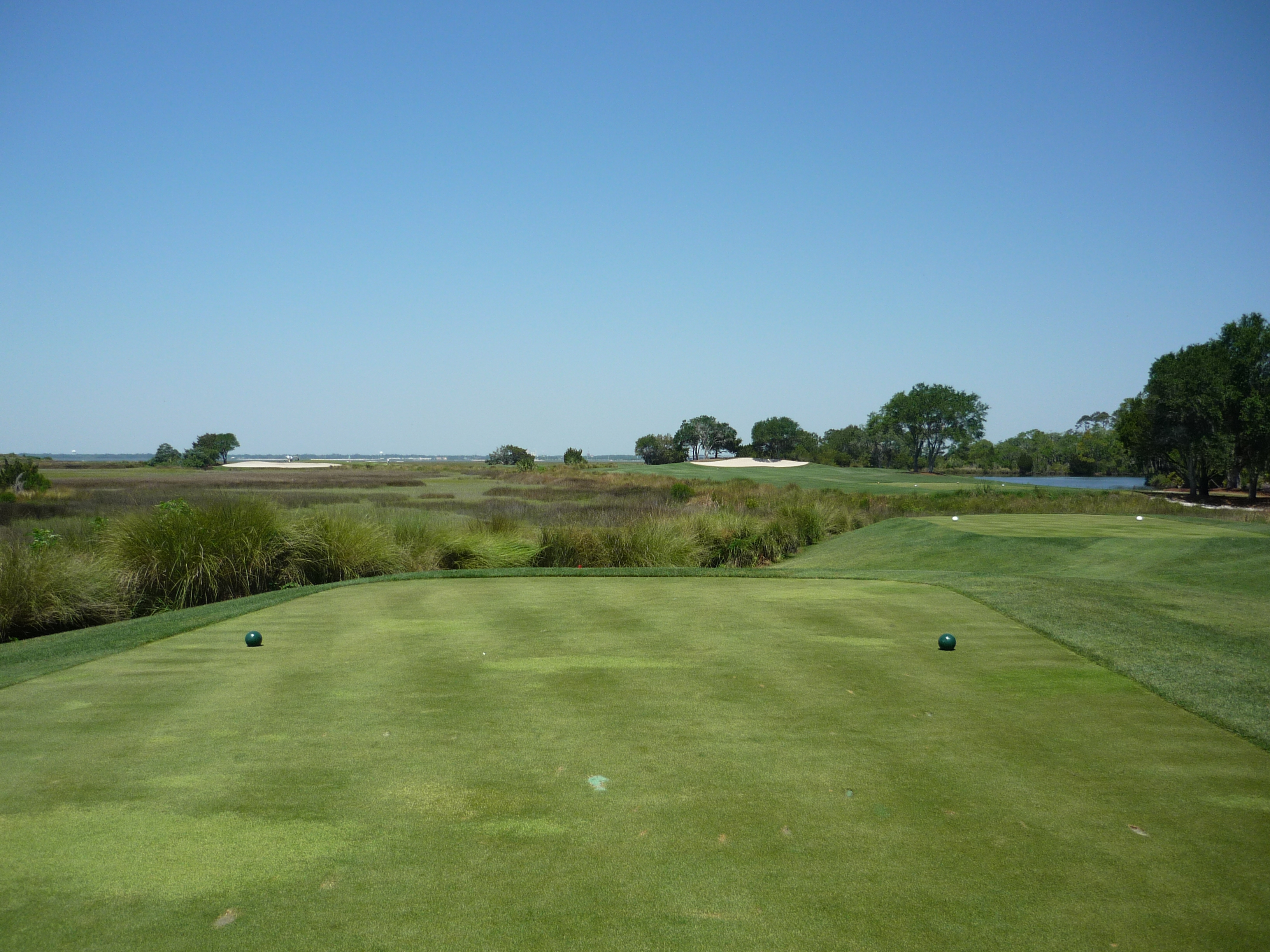 This is a great looking hole in my opinion. The marsh runs all down the left side and the landing area is small. There is some bailout to the right, but if you want to have a shorter shot into the green you will need to take on the left side of the fairway.