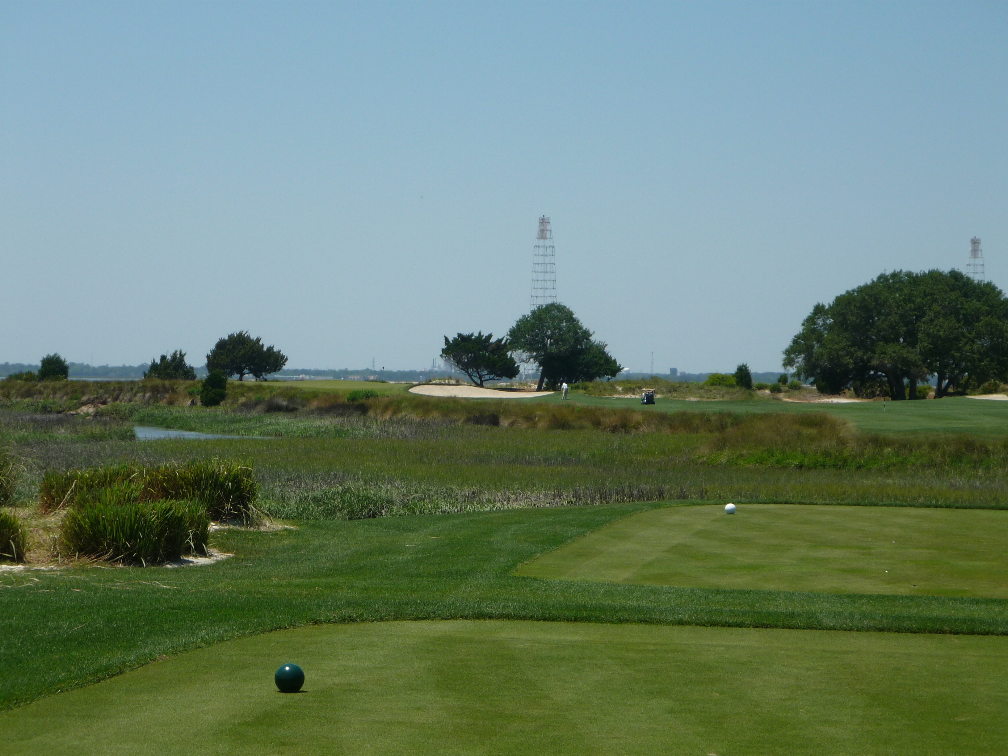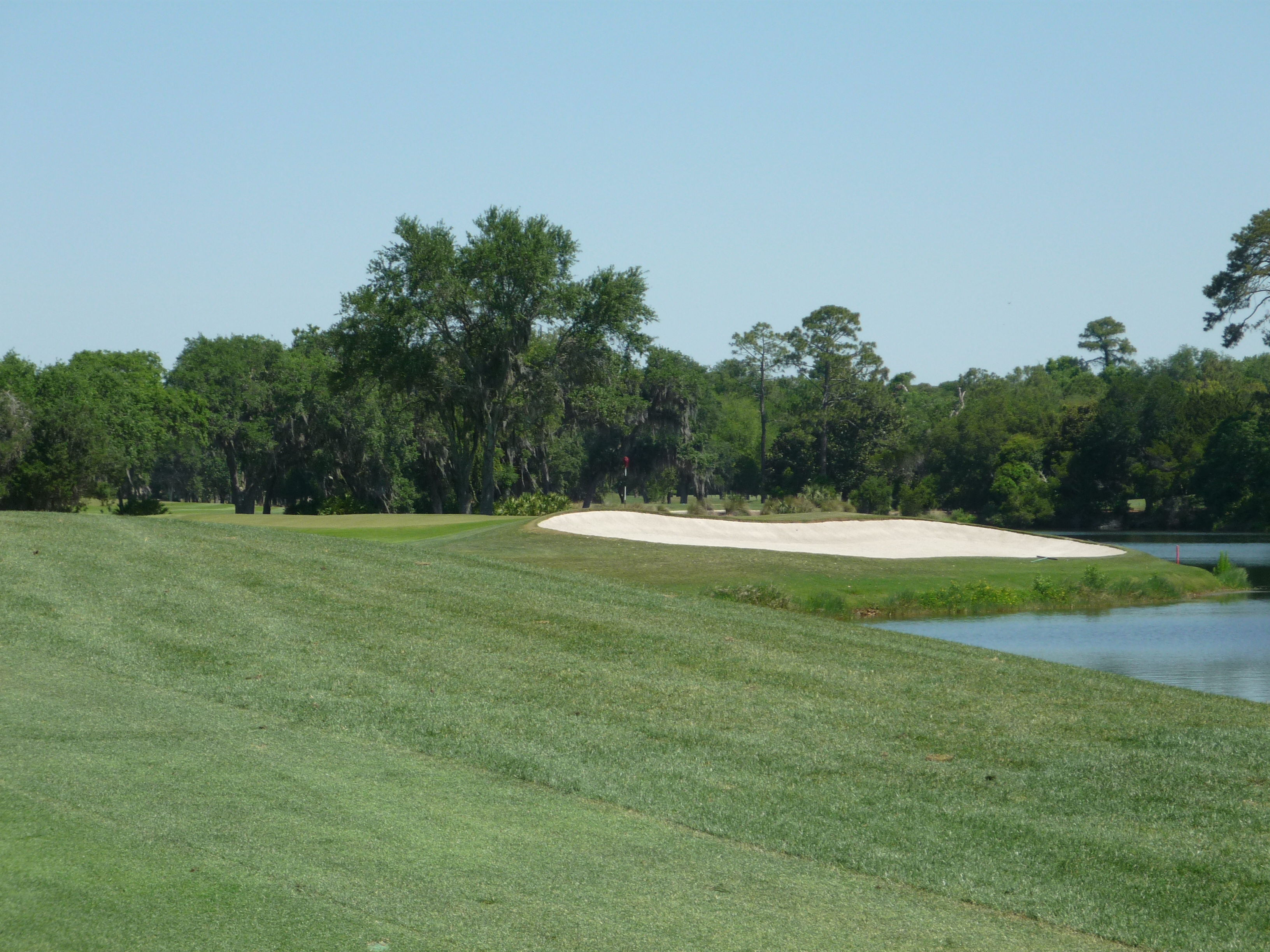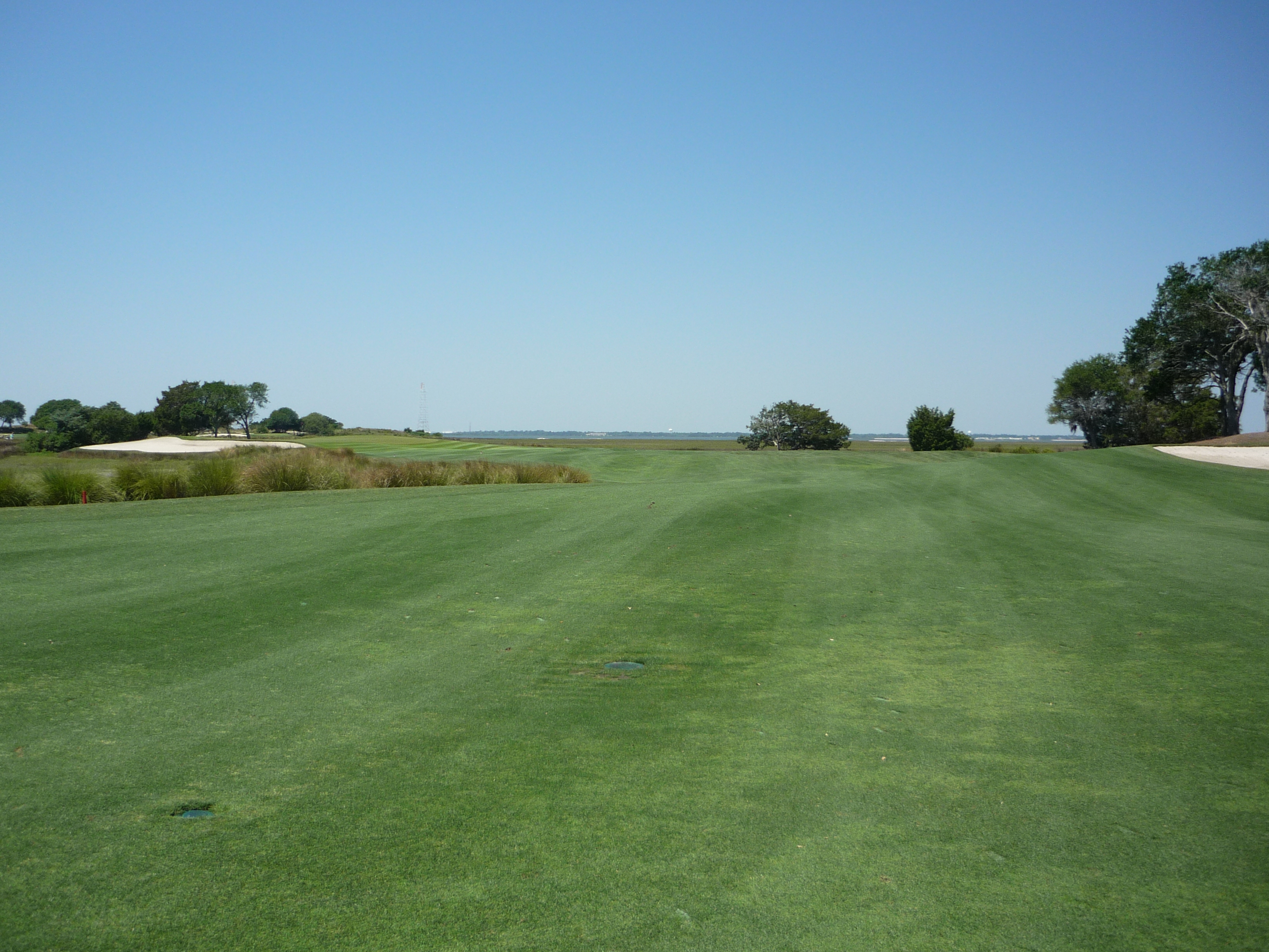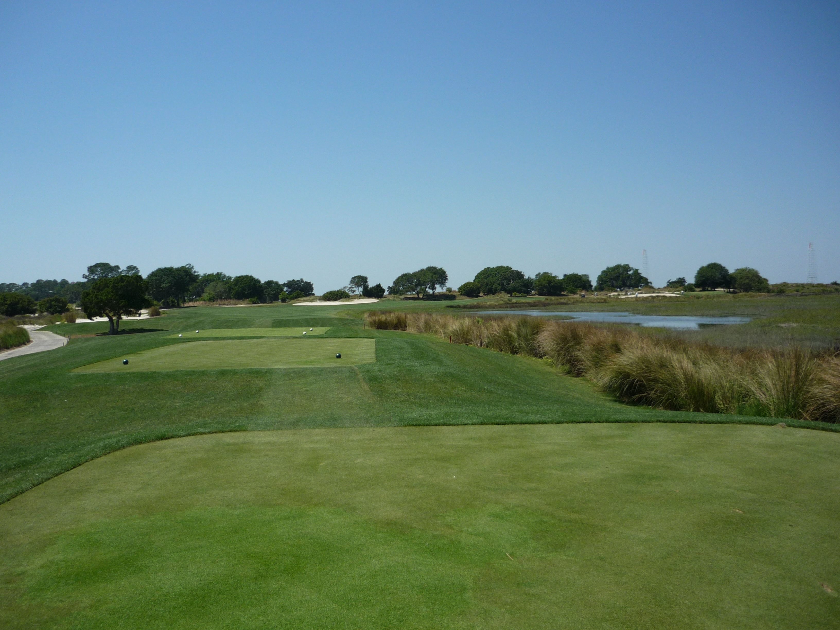 This is a great looking hole in my opinion. The marsh runs all down the left side and the landing area is small. There is some bailout to the right, but if you want to have a shorter shot into the green you will need to take on the left side of the fairway.