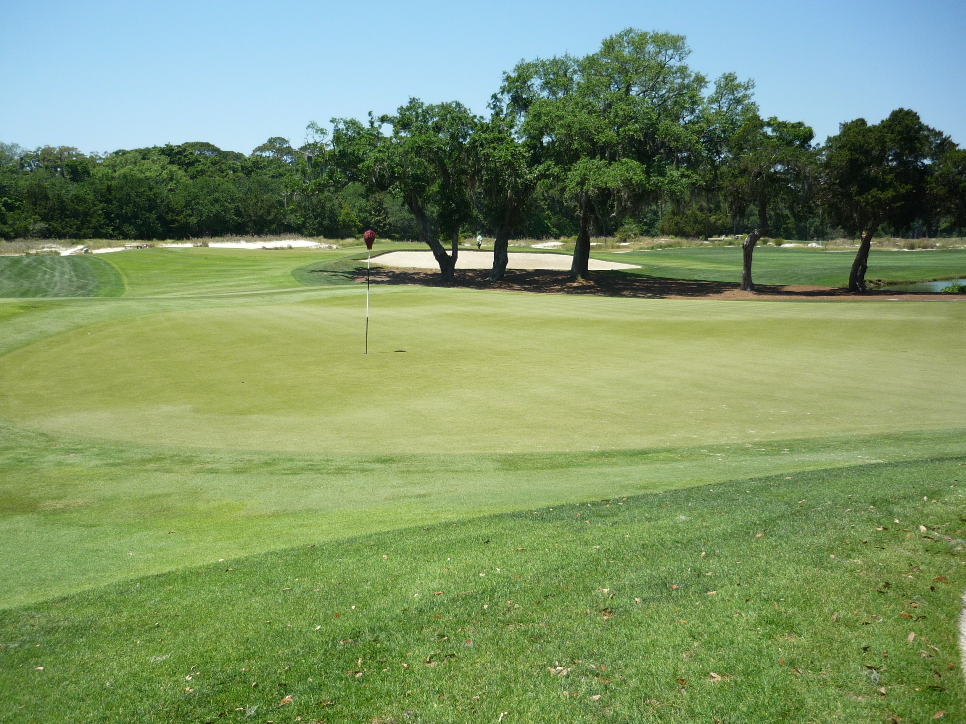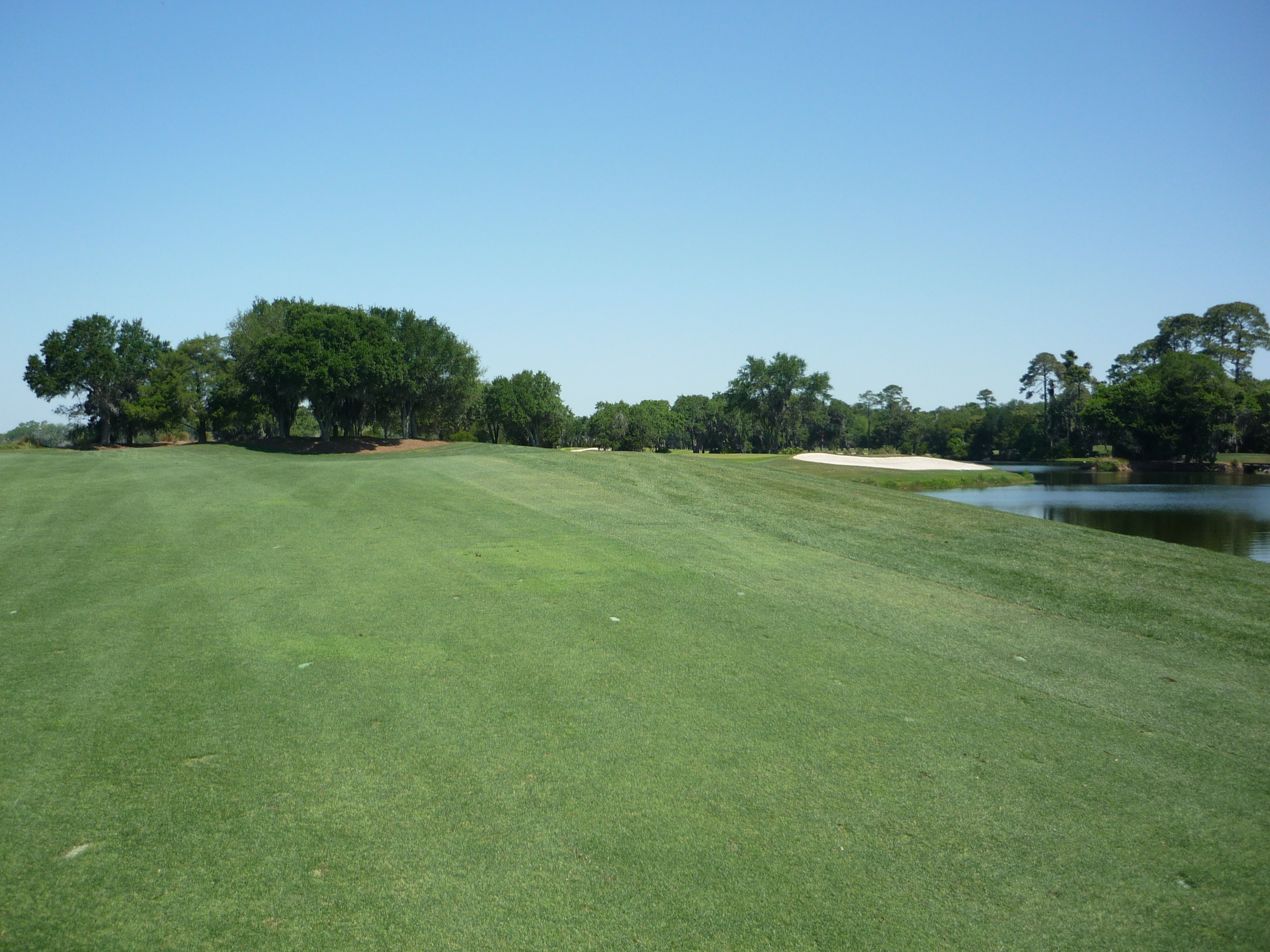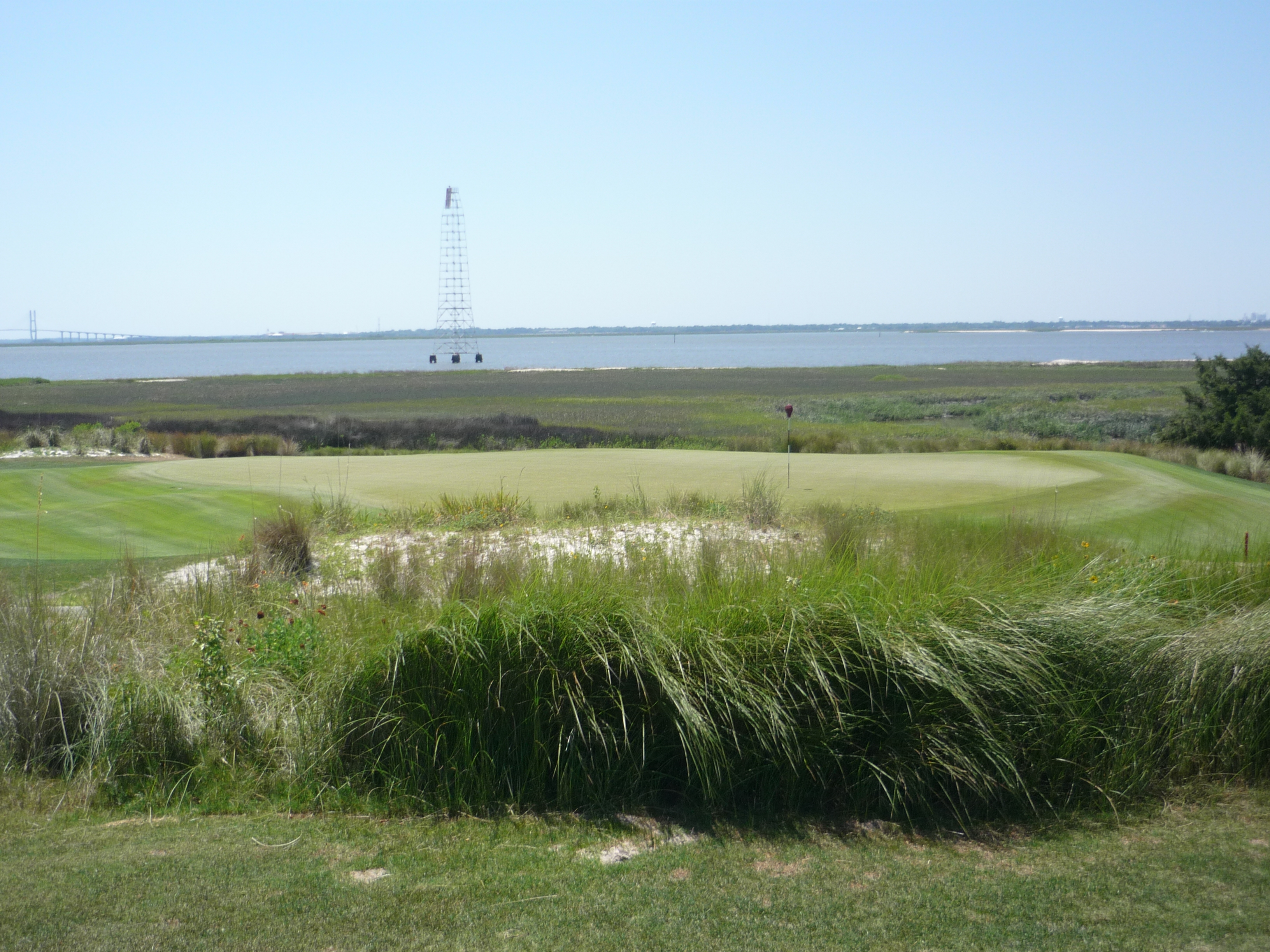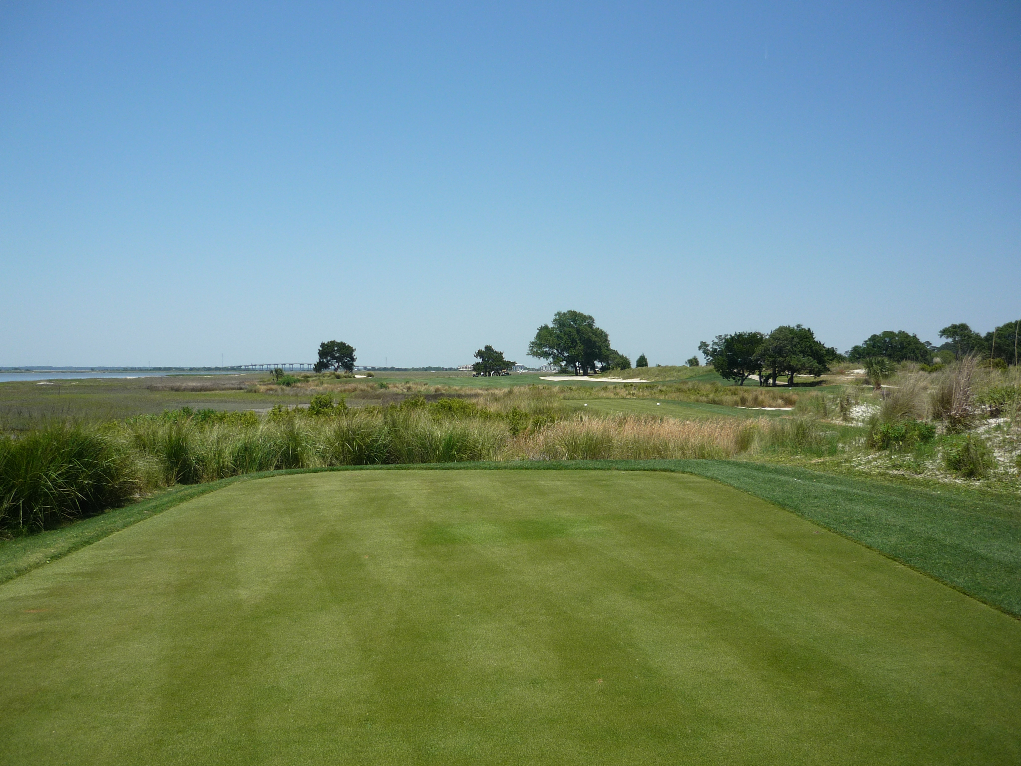 This is a great looking hole in my opinion. The marsh runs all down the left side and the landing area is small. There is some bailout to the right, but if you want to have a shorter shot into the green you will need to take on the left side of the fairway.