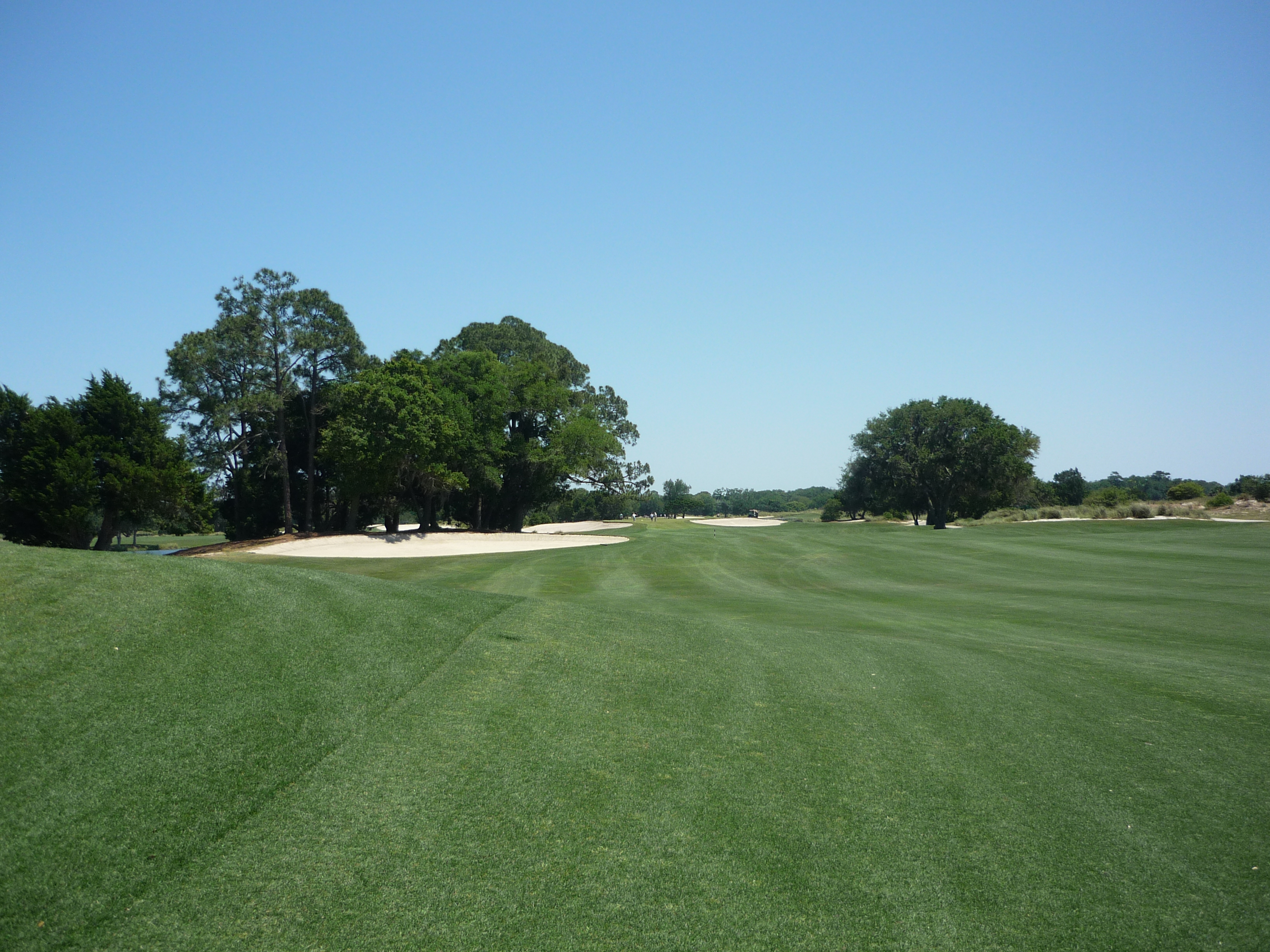 Unlike the last few holes the trouble here is only on one side. You must avoid the water right. Like many of the other holes the best line is at the big bunker straight off the tee.
