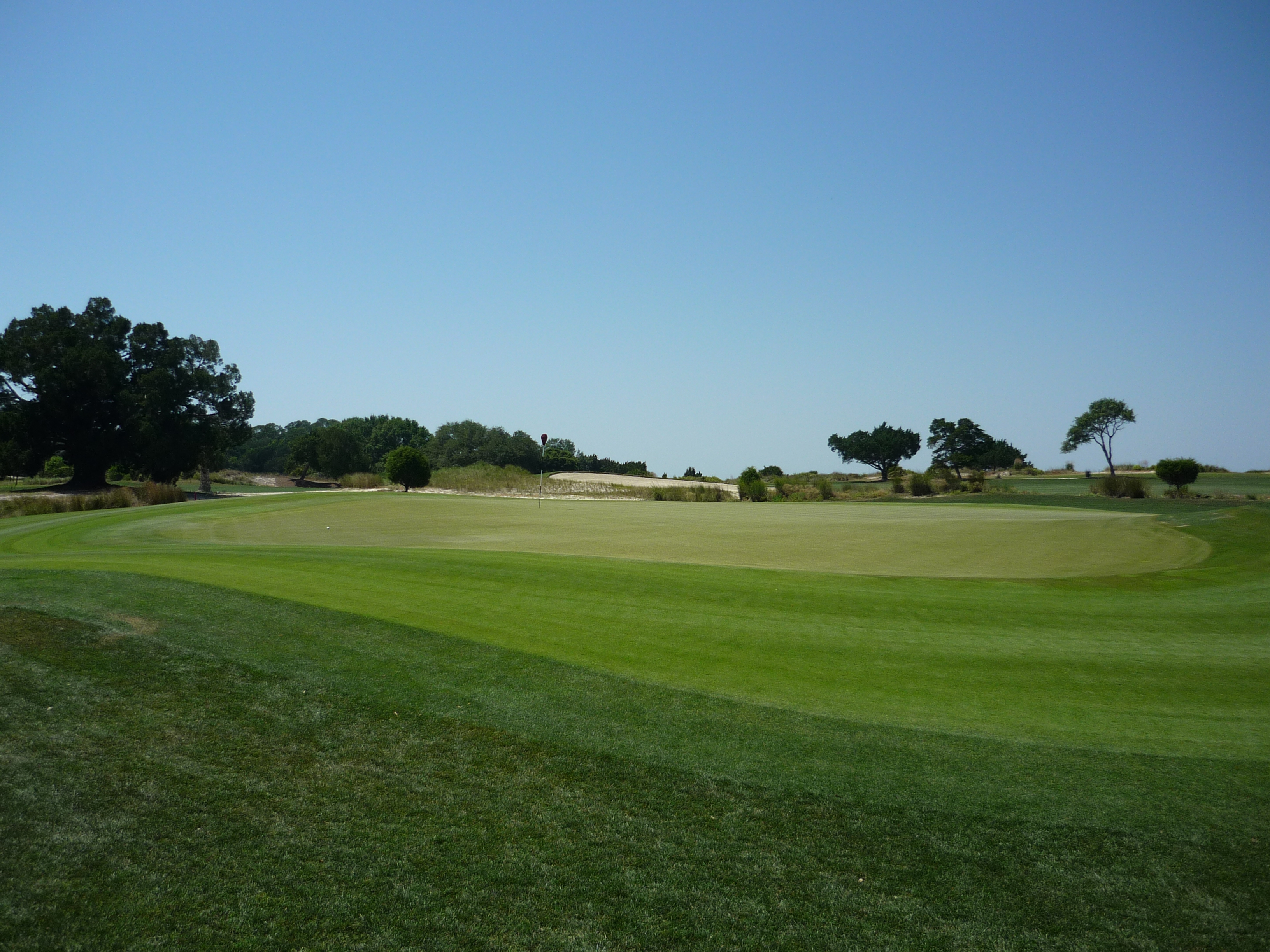 The green is large on this hole. For those big hitters the large green is welcoming if going for it in two.