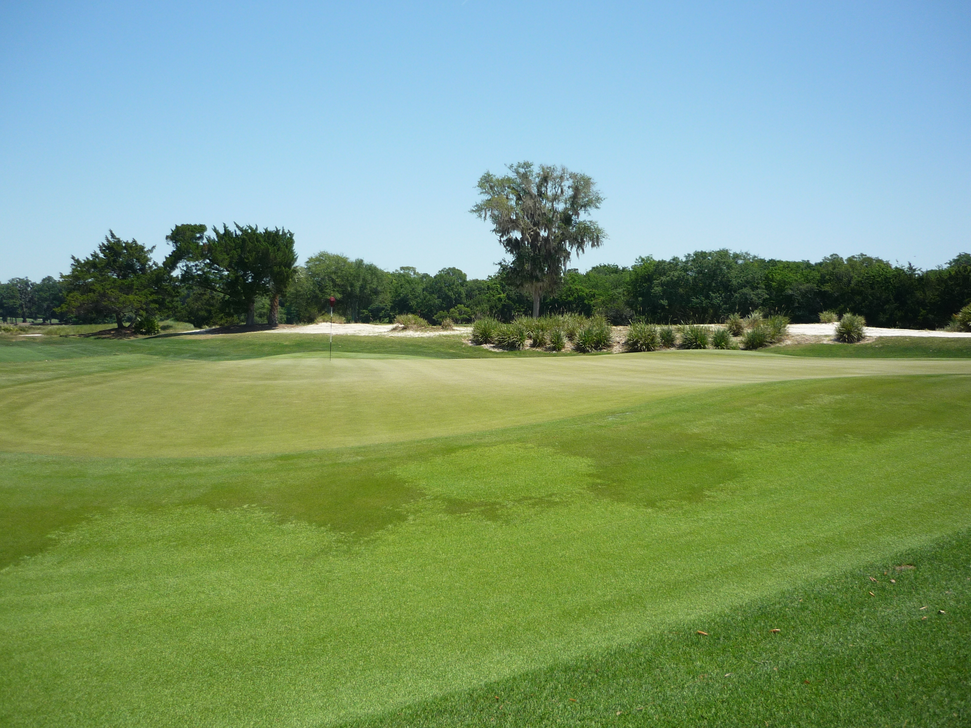 This higher view shows that this a big green. There are plenty of runoff areas for chipping.
