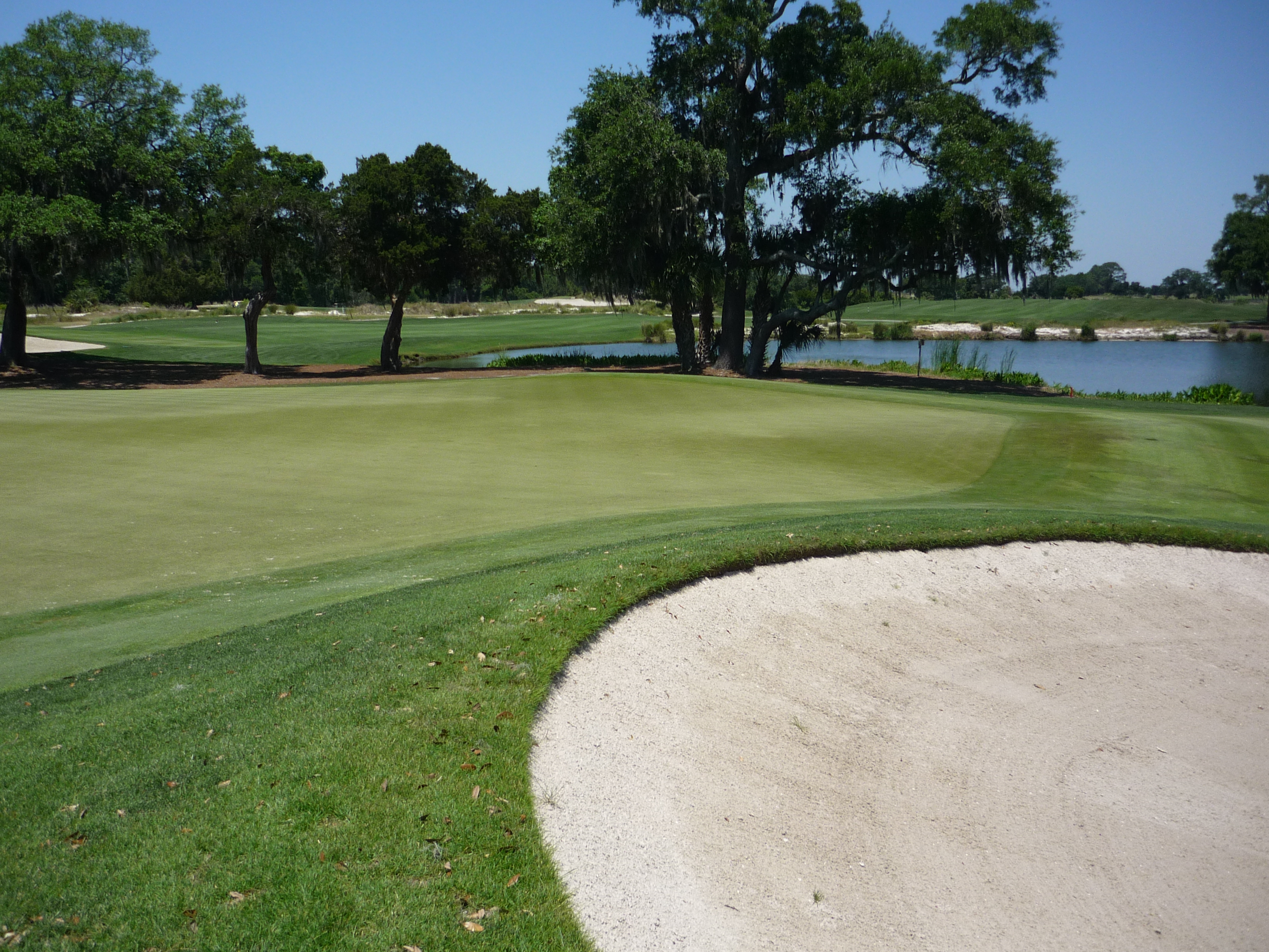 You can see that bunker was a fairway bunker and optical illusion. The green is only surrounded by chipping areas.