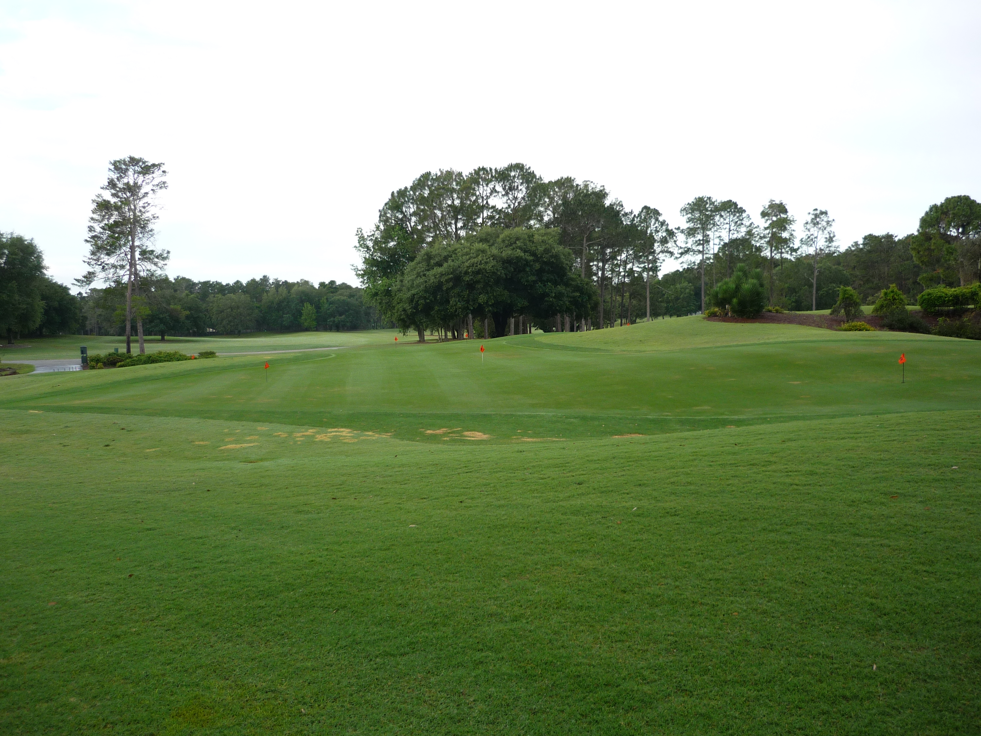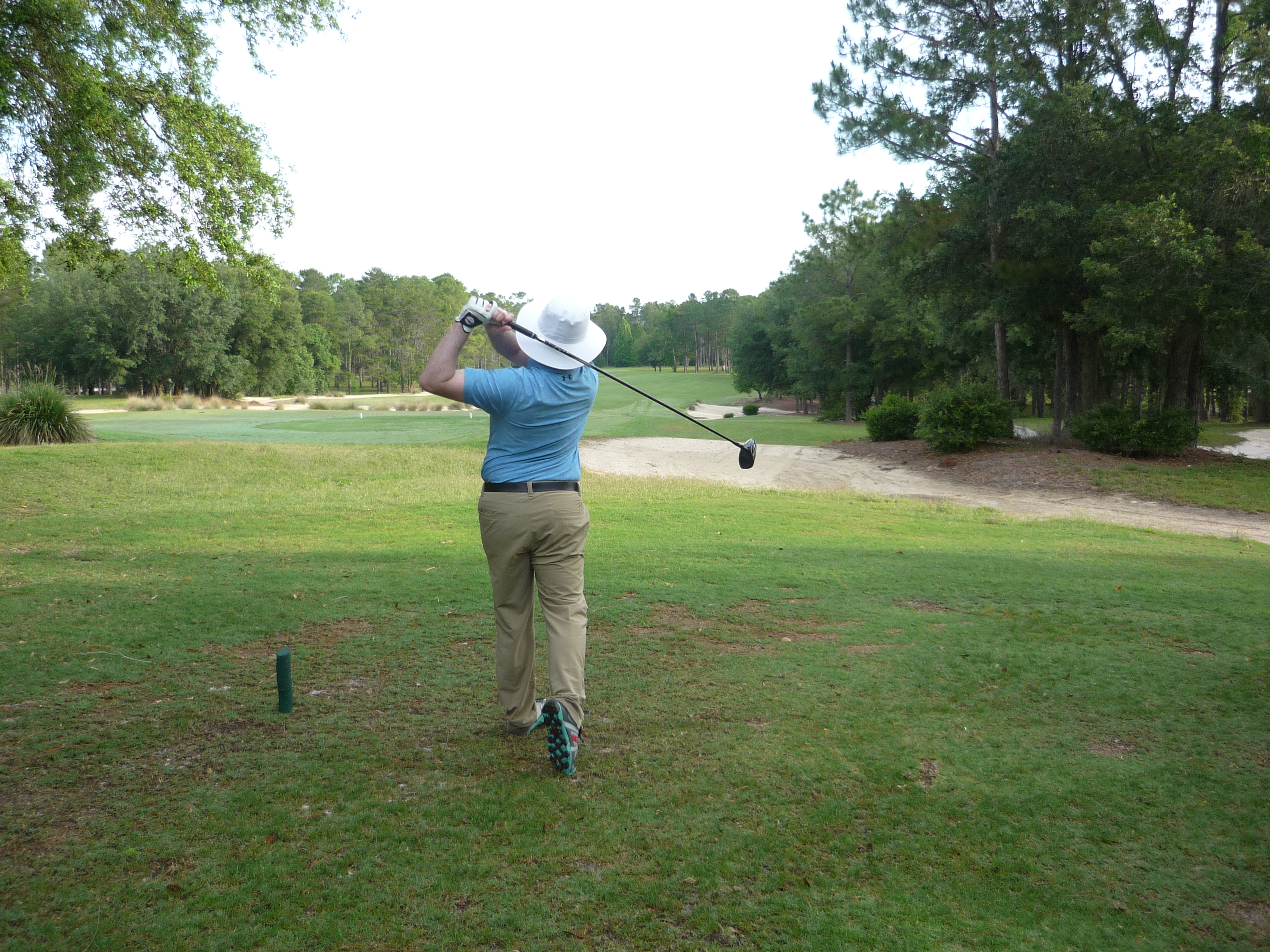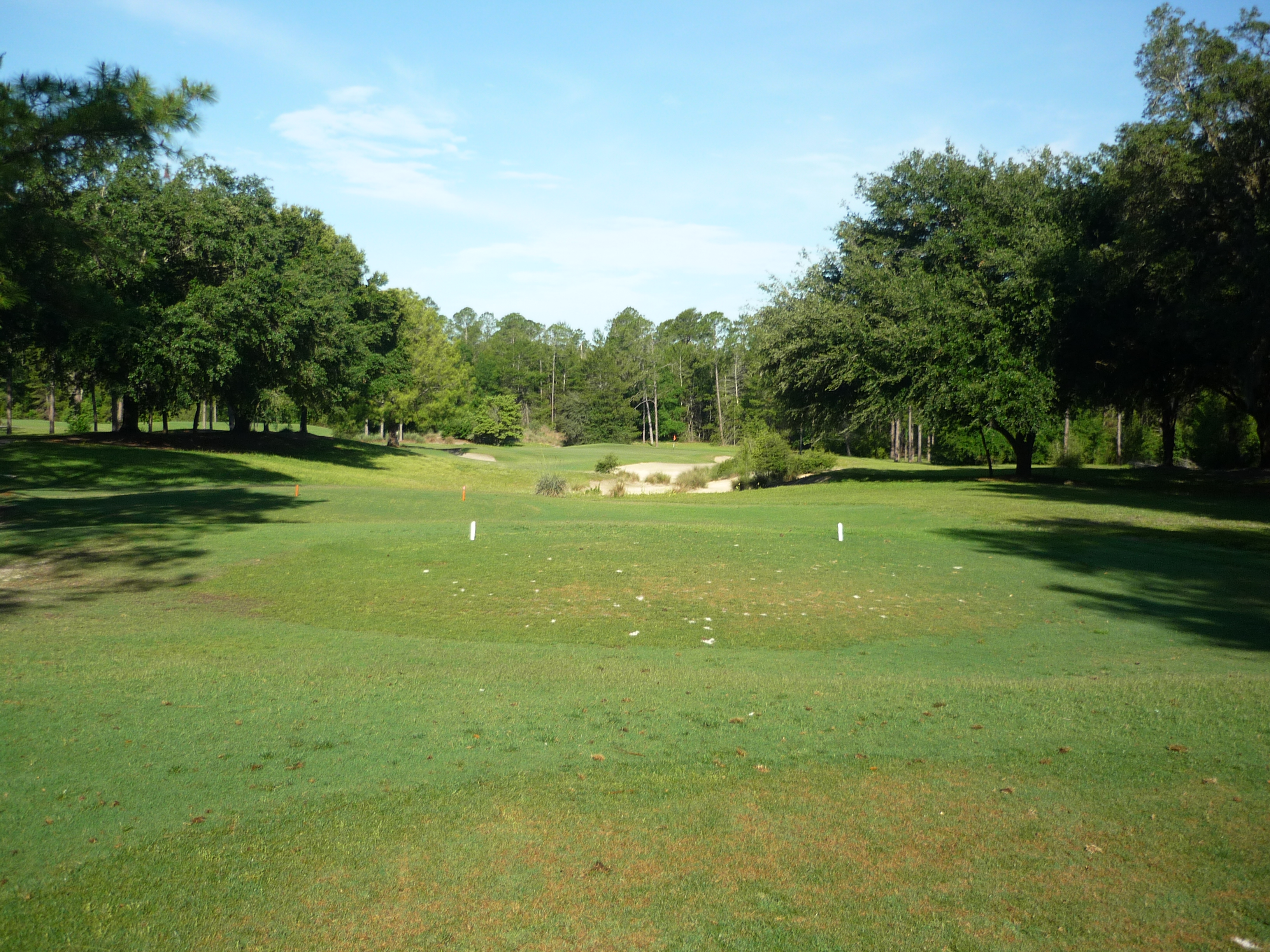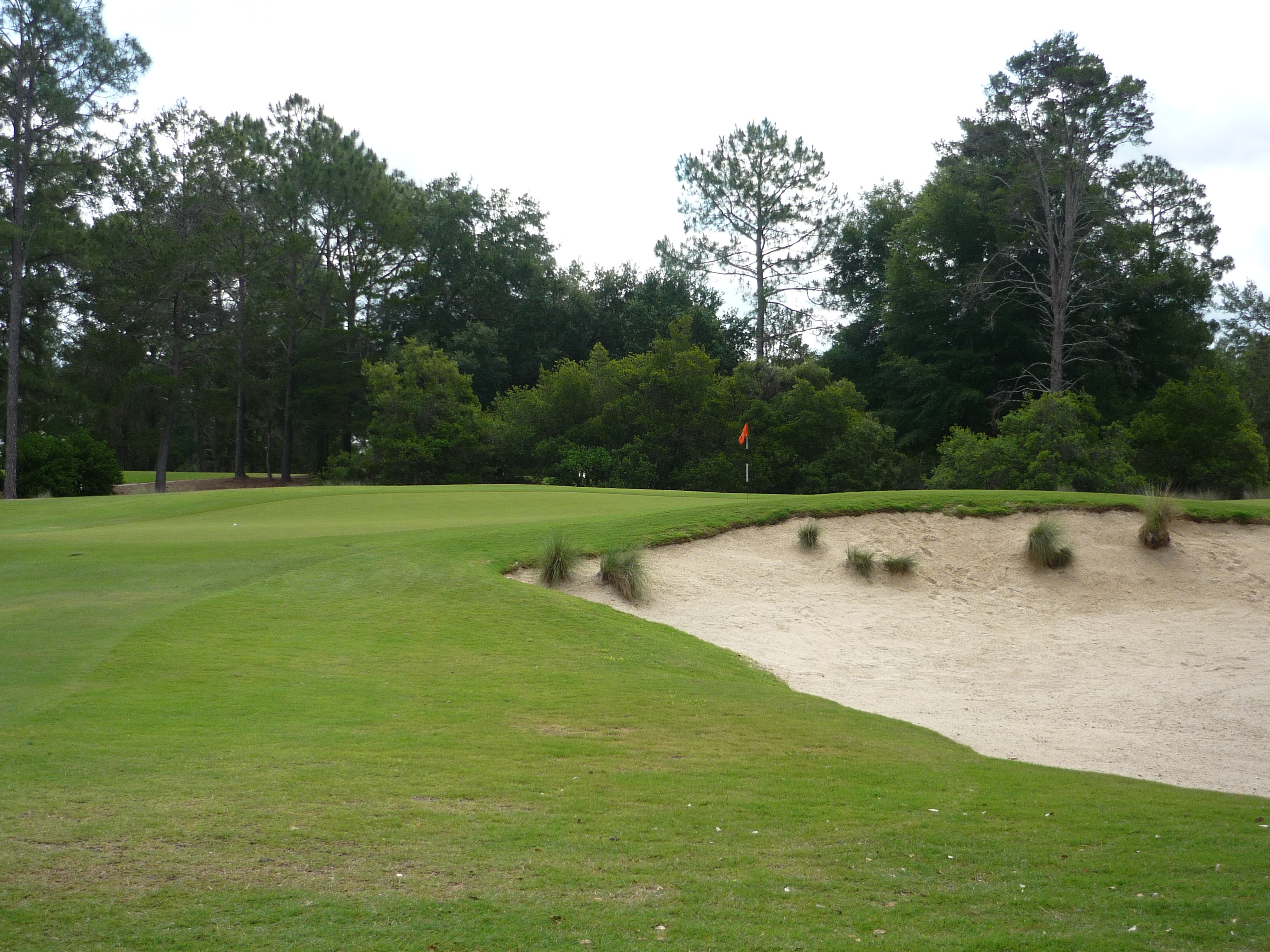 The last tee shot at World Woods opens up for you and is not overly taxing. If you hit a draw you can hit it as far as you want. A straight ball may run out of real estate depending on how far you hit it.