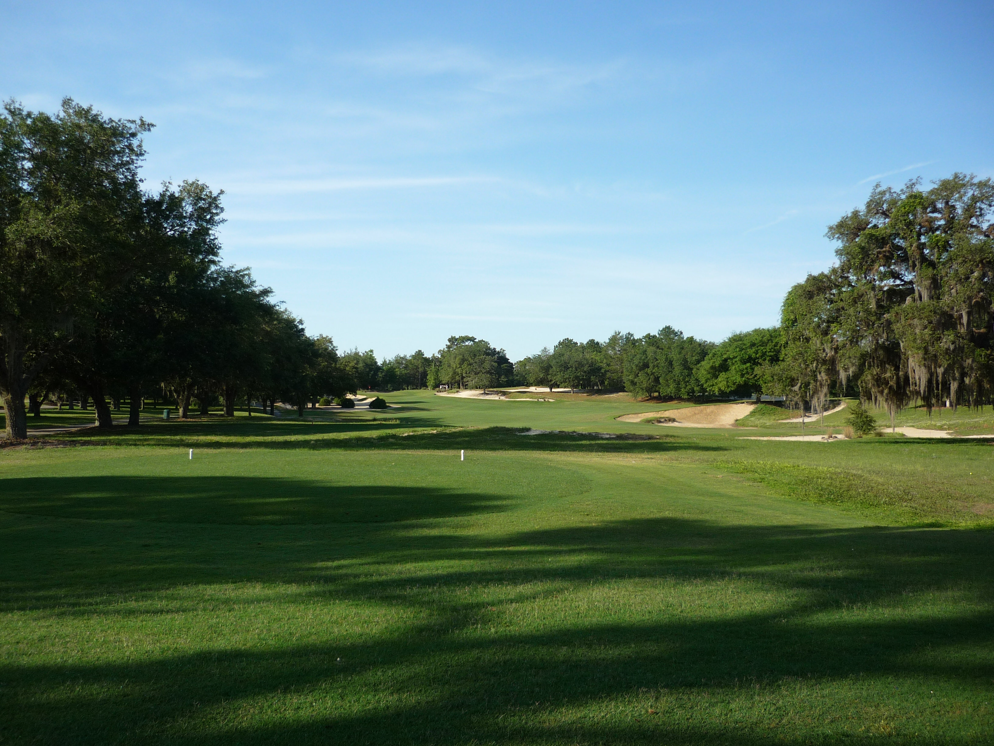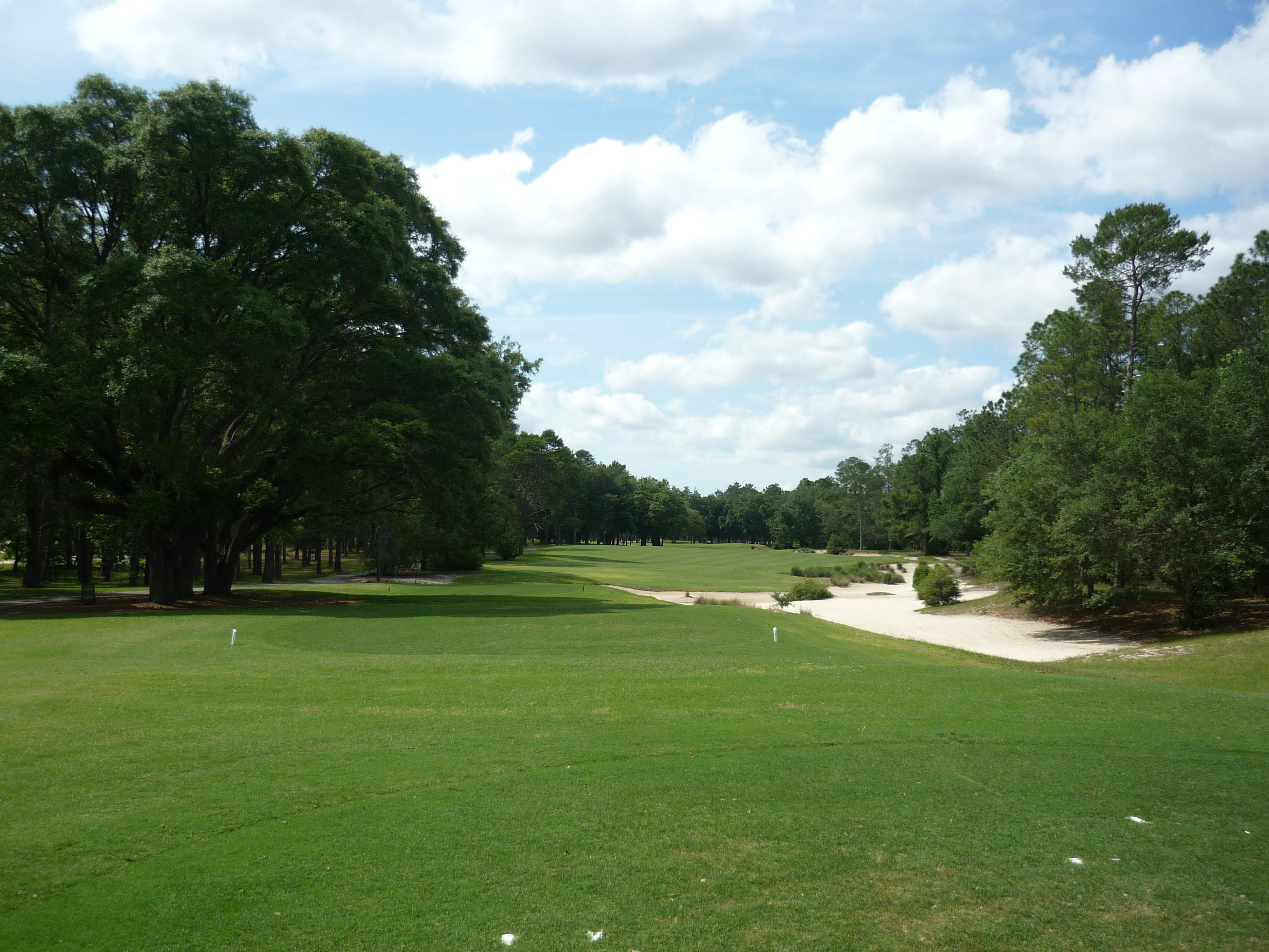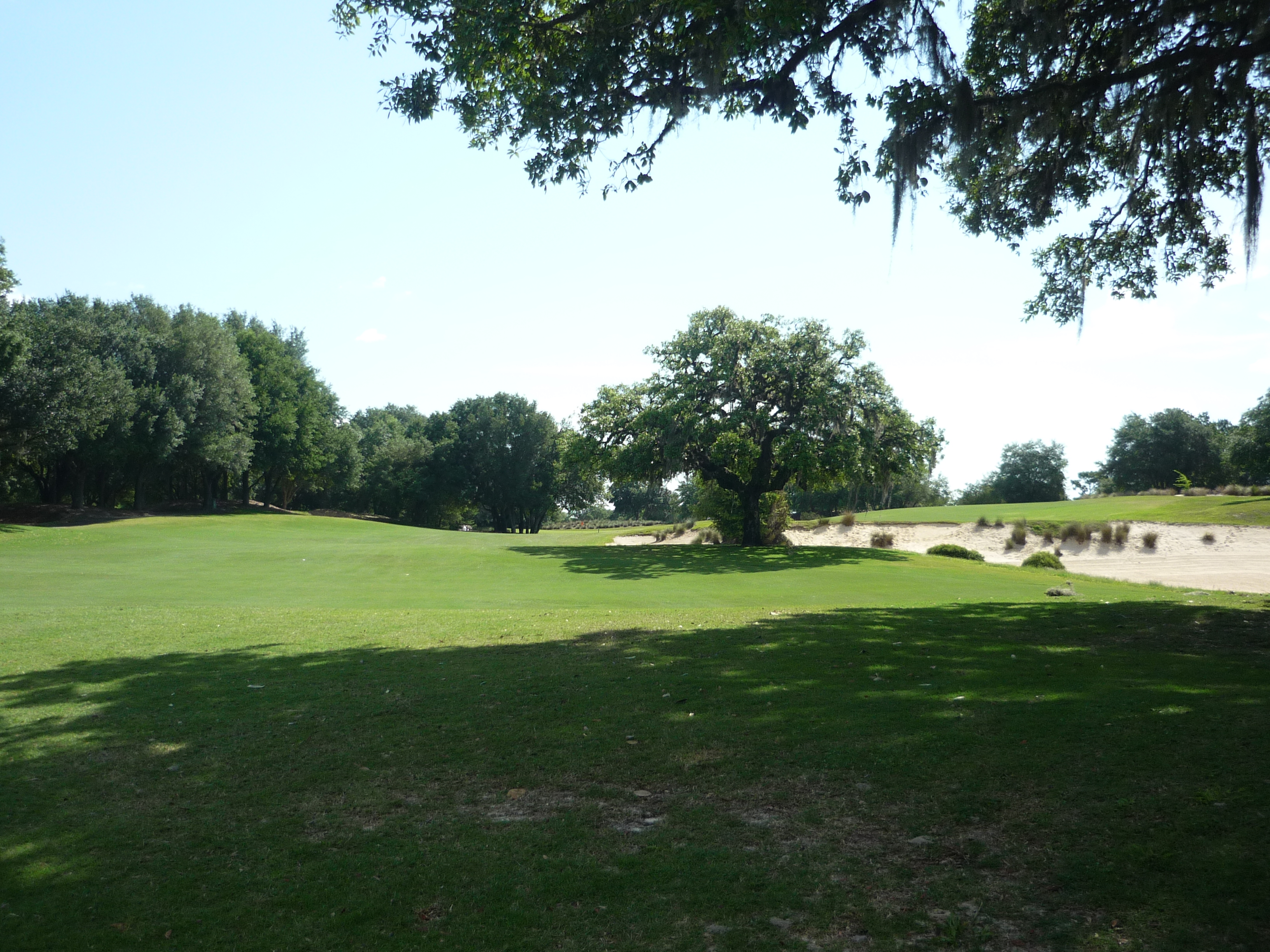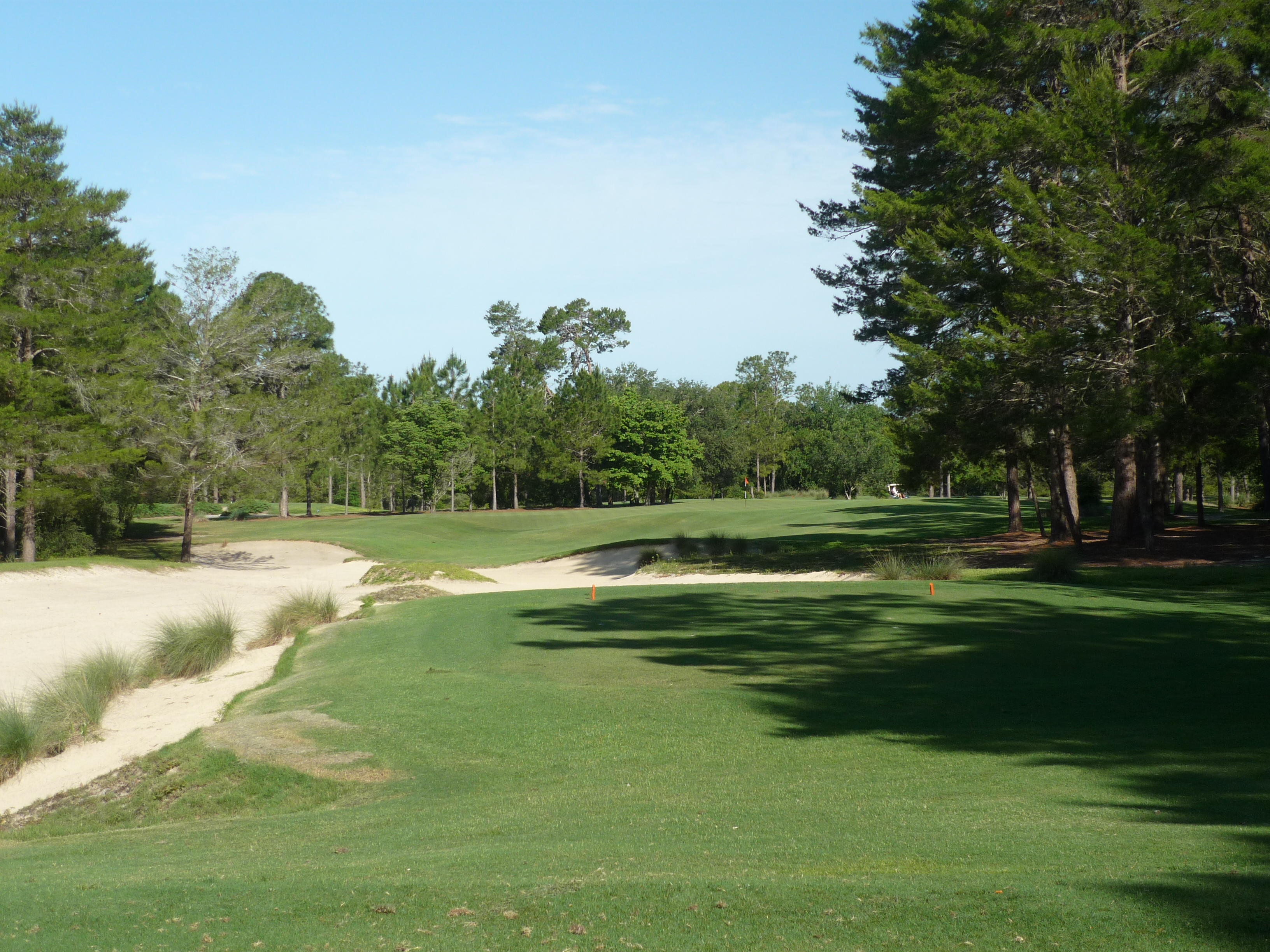 The last tee shot at World Woods opens up for you and is not overly taxing. If you hit a draw you can hit it as far as you want. A straight ball may run out of real estate depending on how far you hit it.
