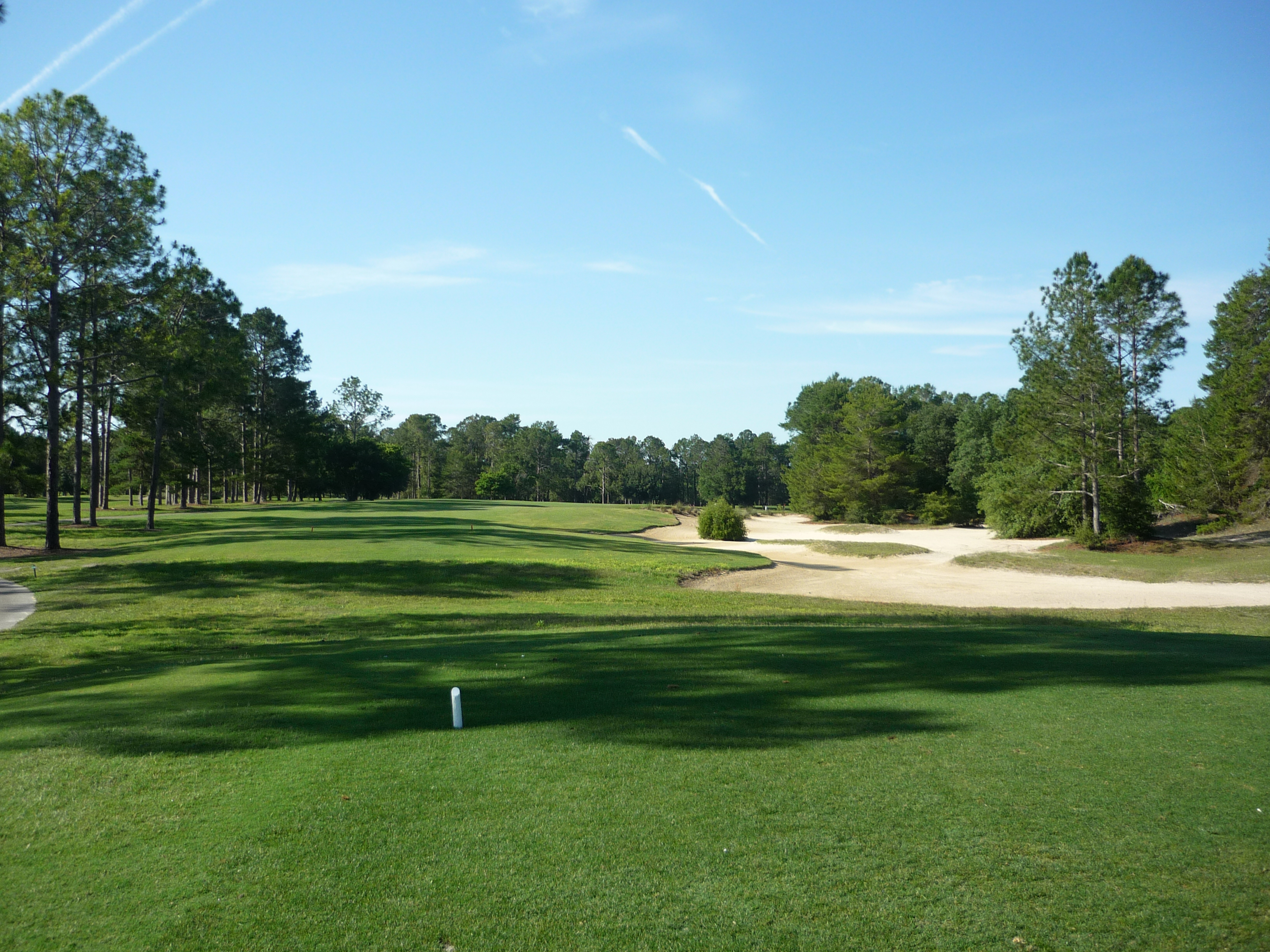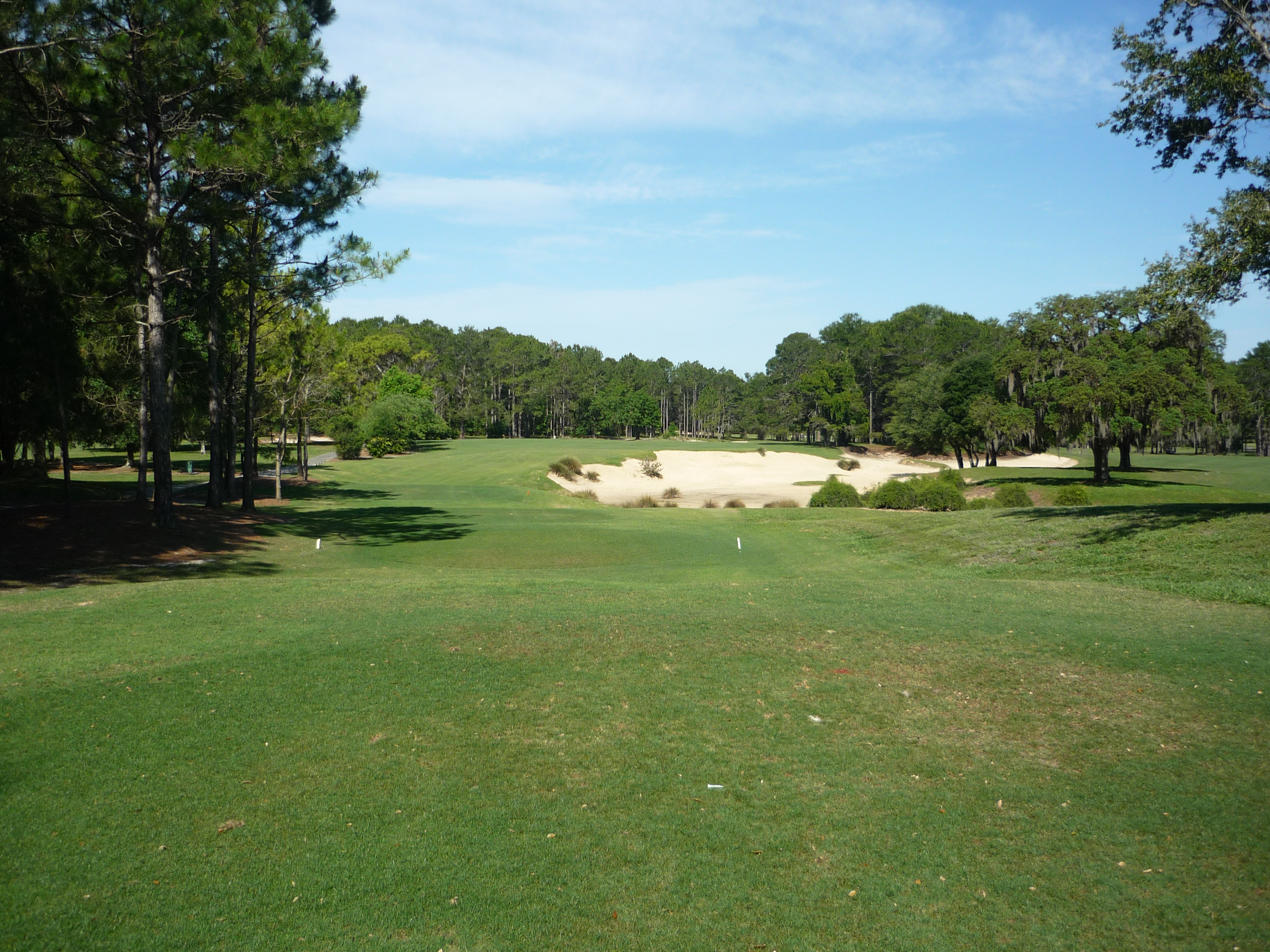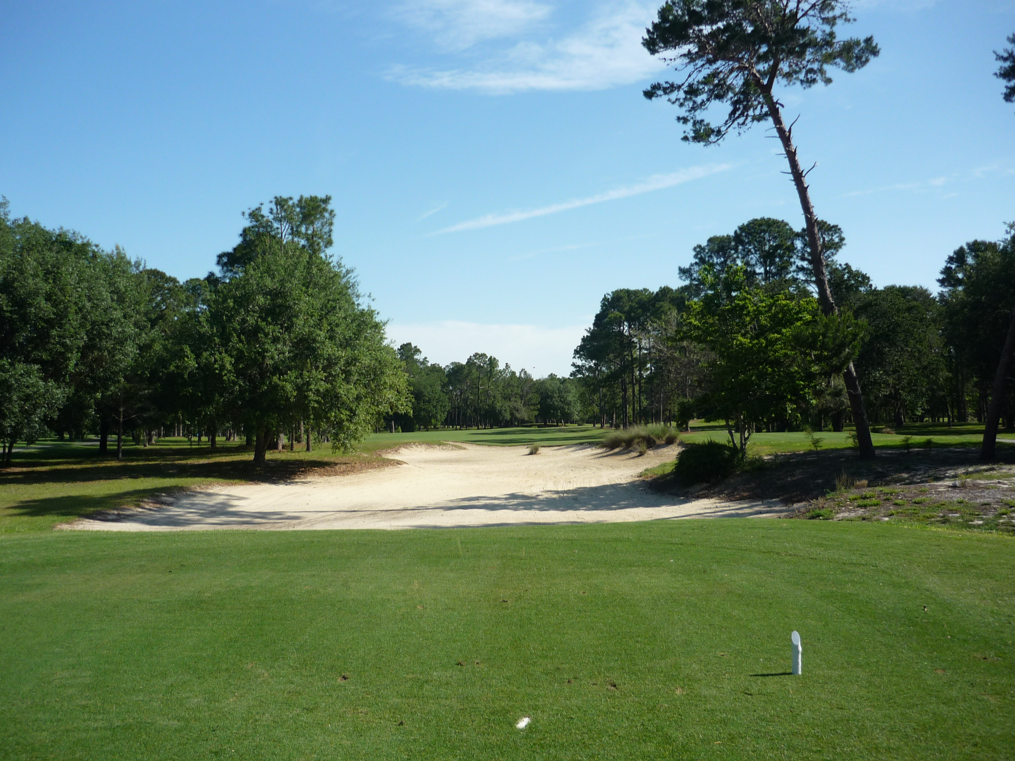 This hole is a gentle bender to the right. You can see the massive waste area all up the right side. Obviously you want to favor the left side on this one.