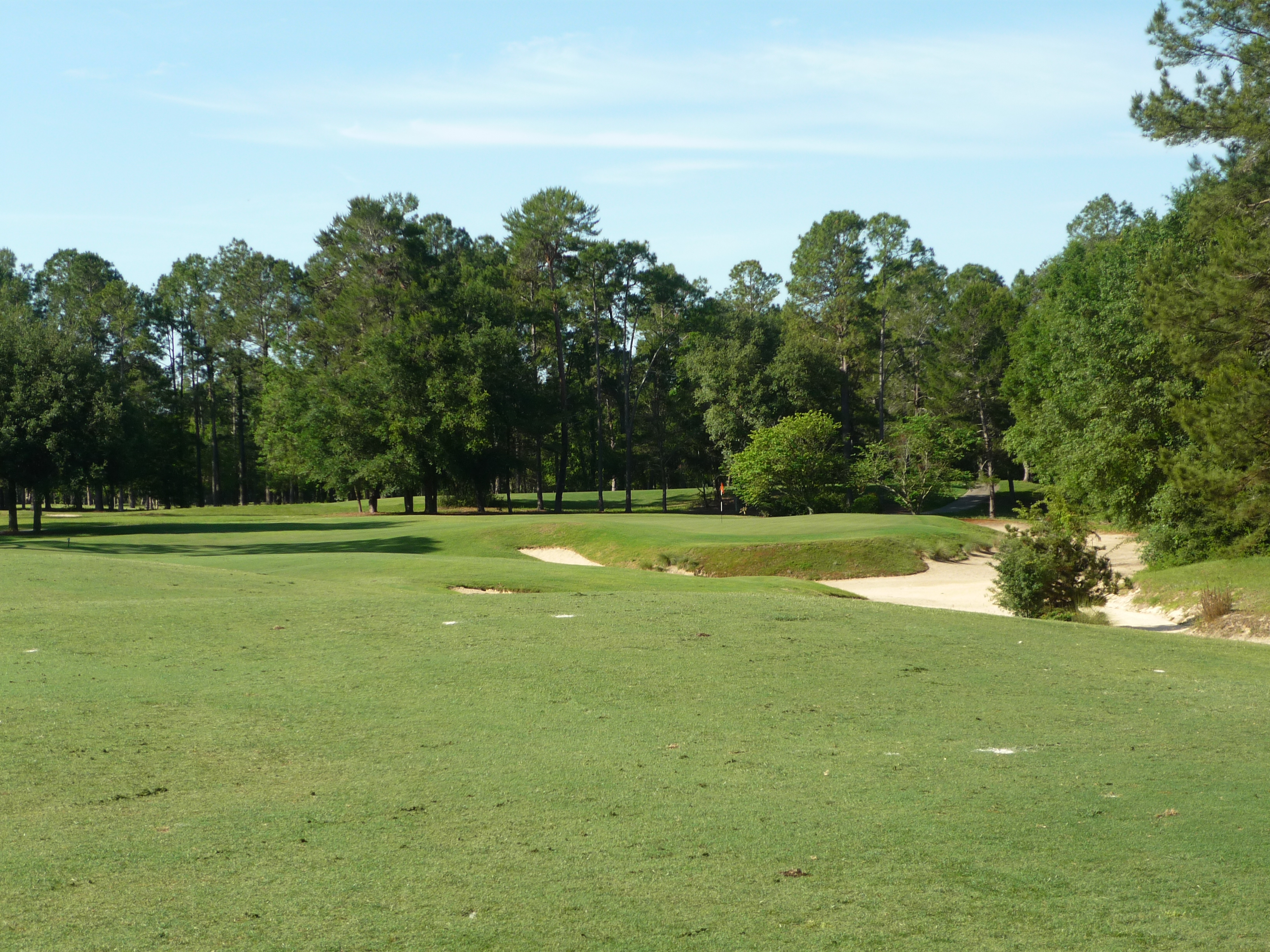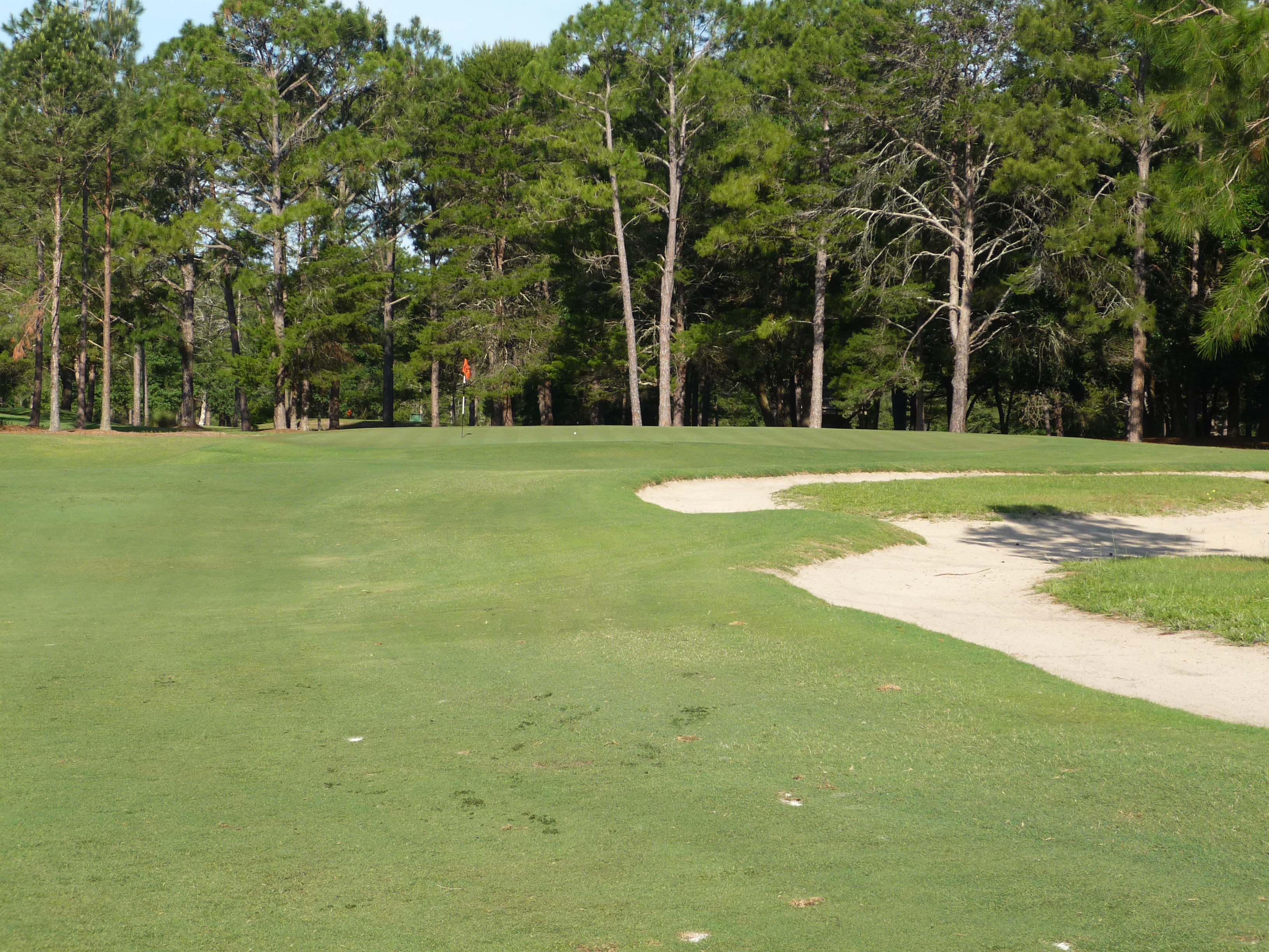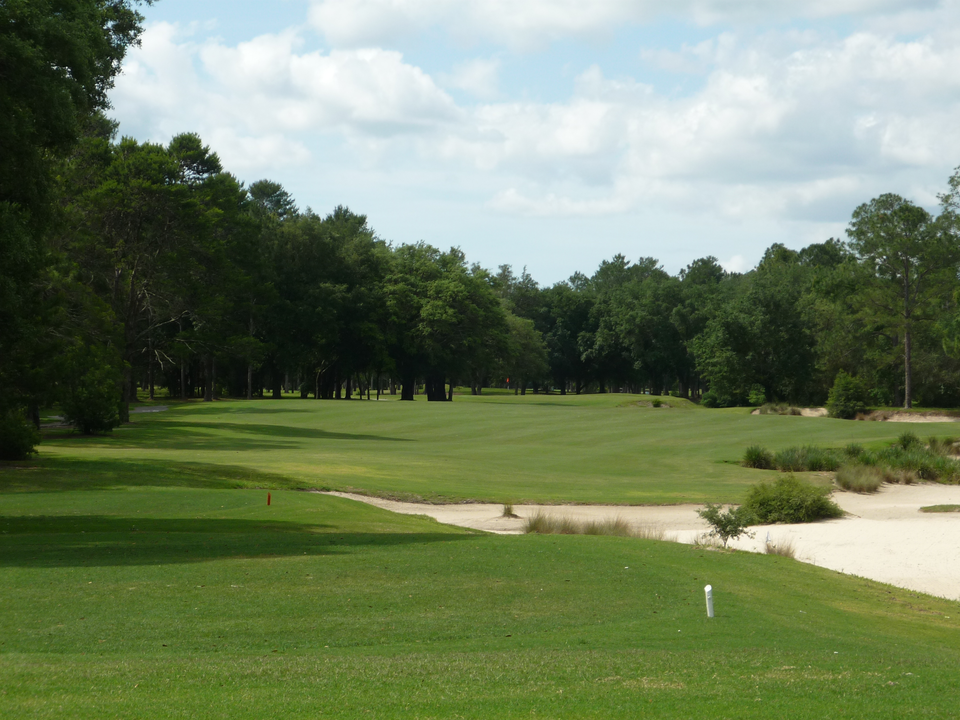 This hole is a gentle bender to the right. You can see the massive waste area all up the right side. Obviously you want to favor the left side on this one.