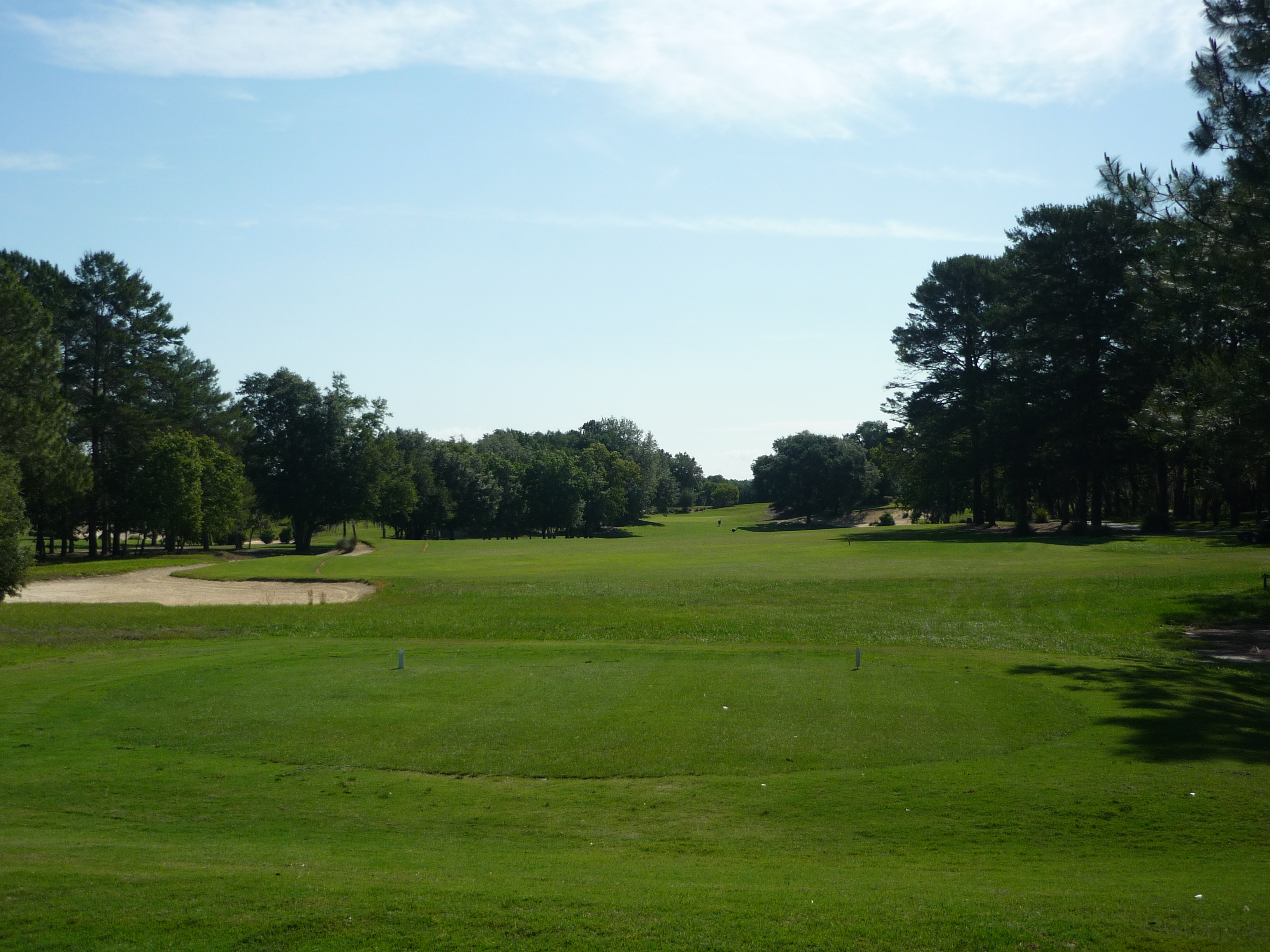 This hole opens up after the last few tighter holes. A good line is splitting the tee markers just ahead of you.