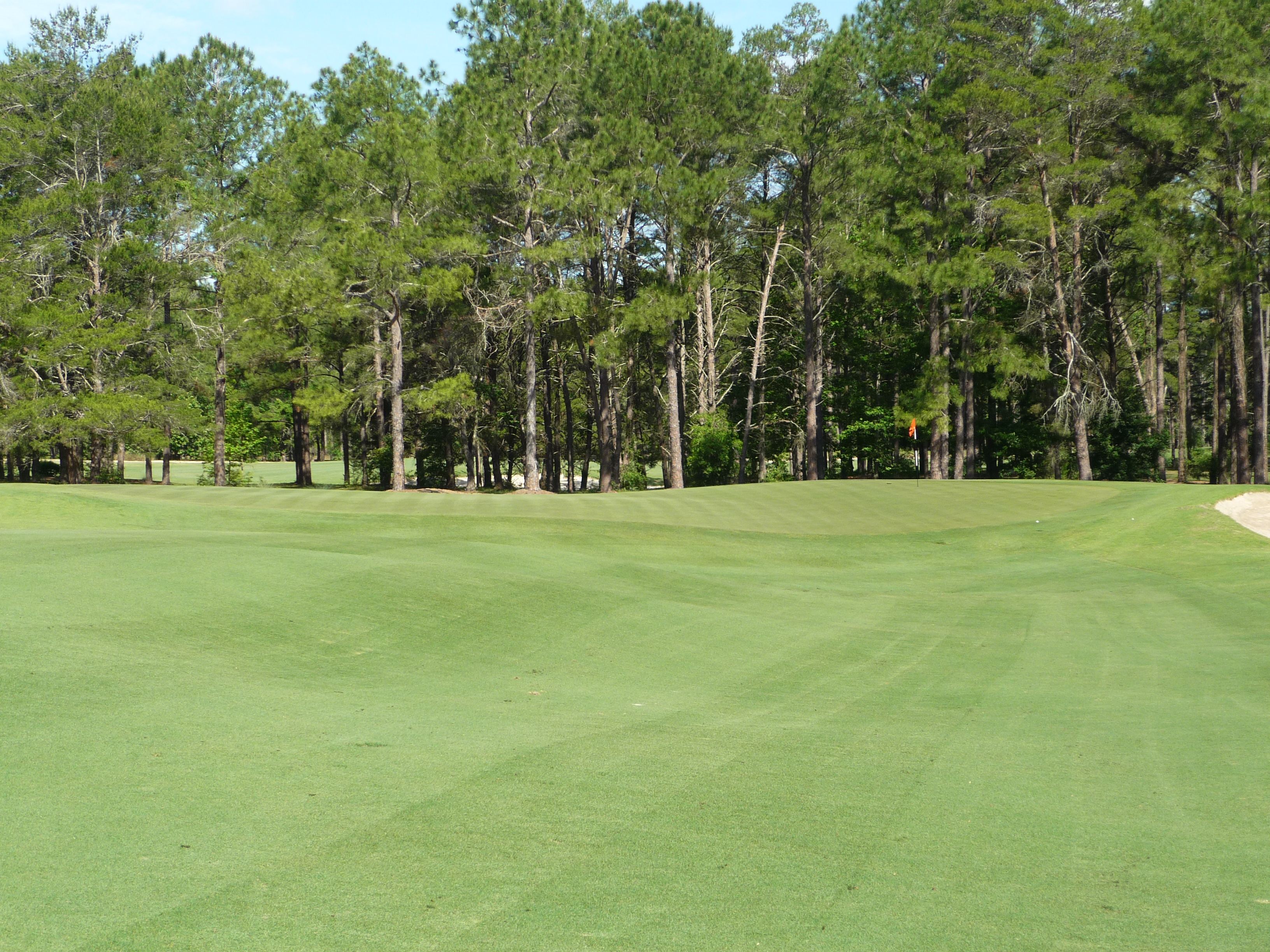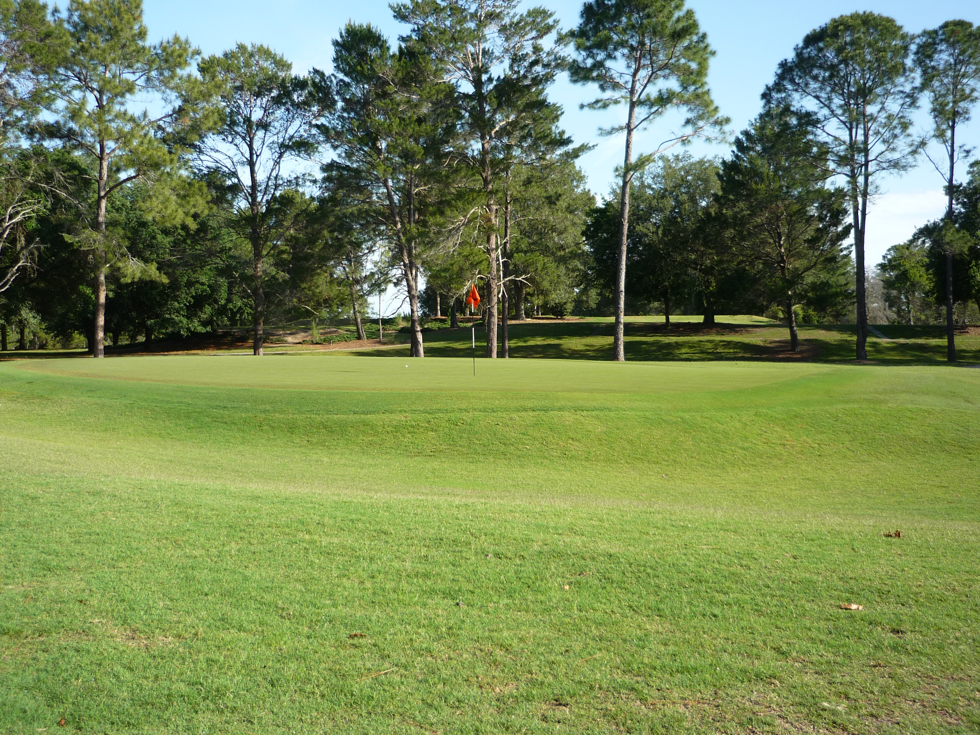 This angle shows the waviness of the outside edges of the green. There is also a small ridge that runs through the middle of the putting surface.