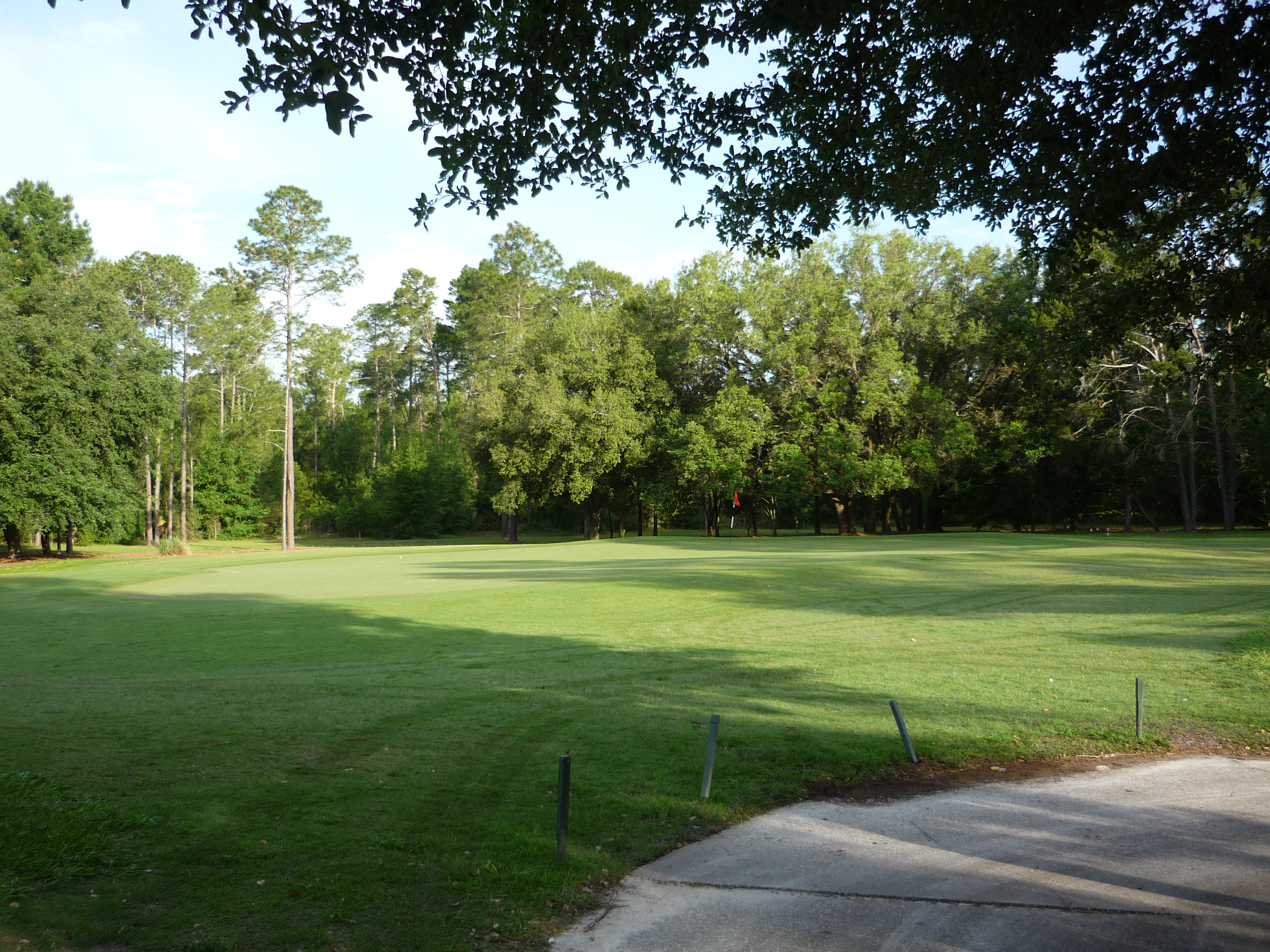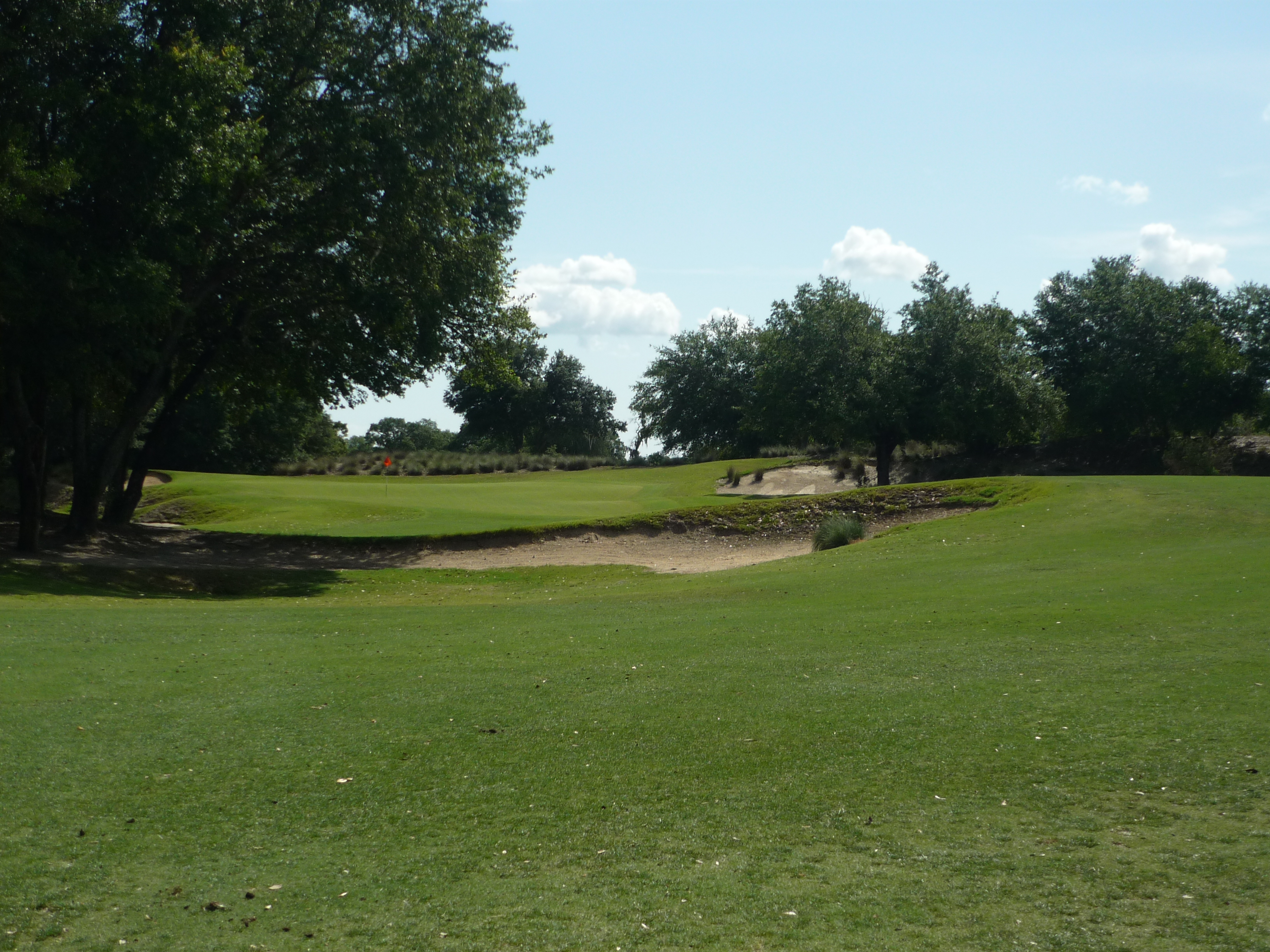 I had to bunt one to this location. The green is obscured by the tree on the left.