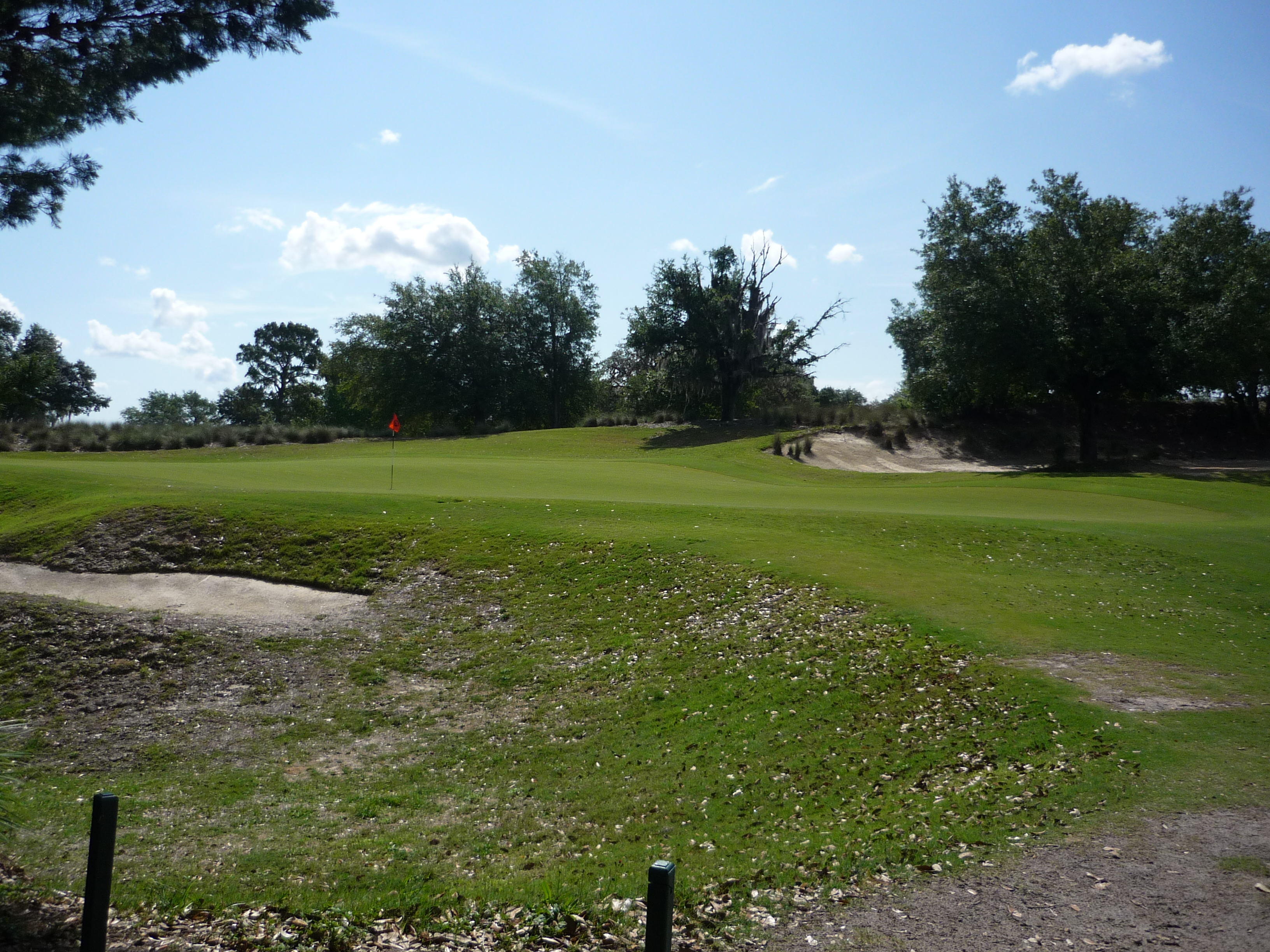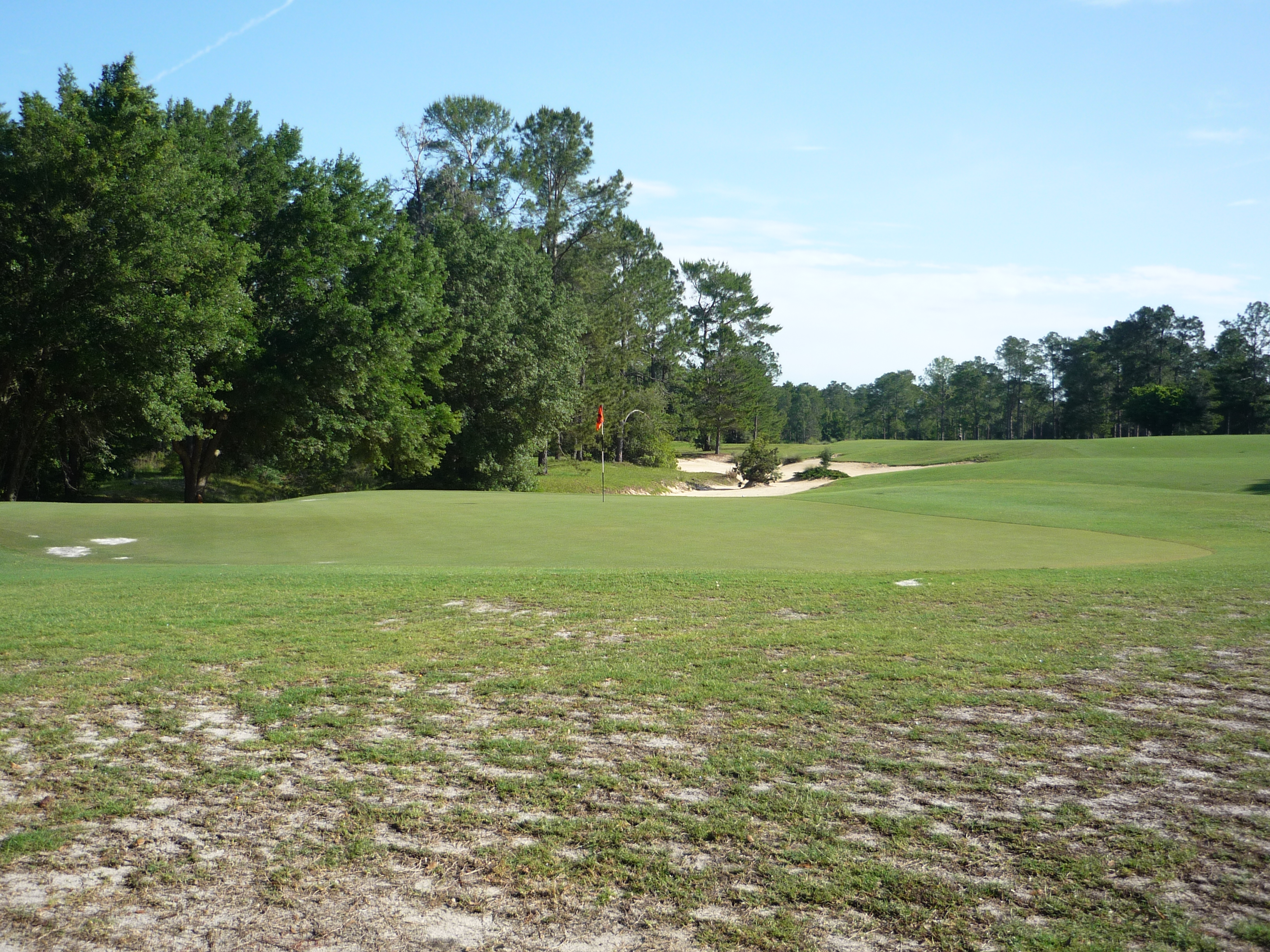 Here is a view from behind the green. You don’t want to be in this area with thin grass and sandy soil. Making good contact with chips is nearly impossible.