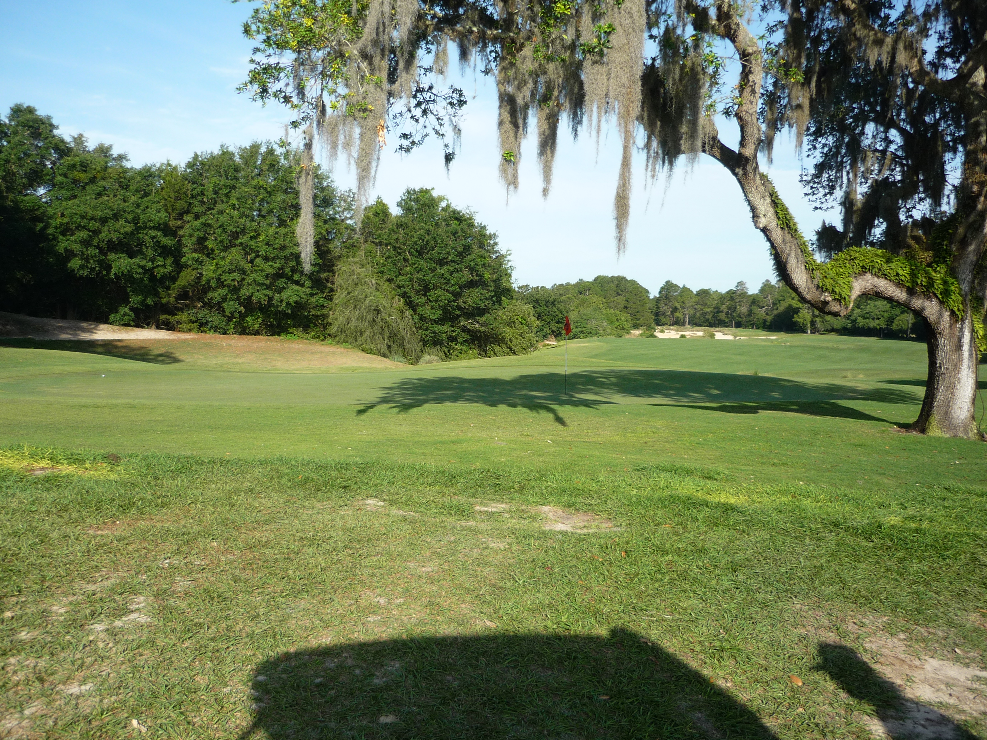 The view from behind the green shows just how close the tree is to the putting surface.