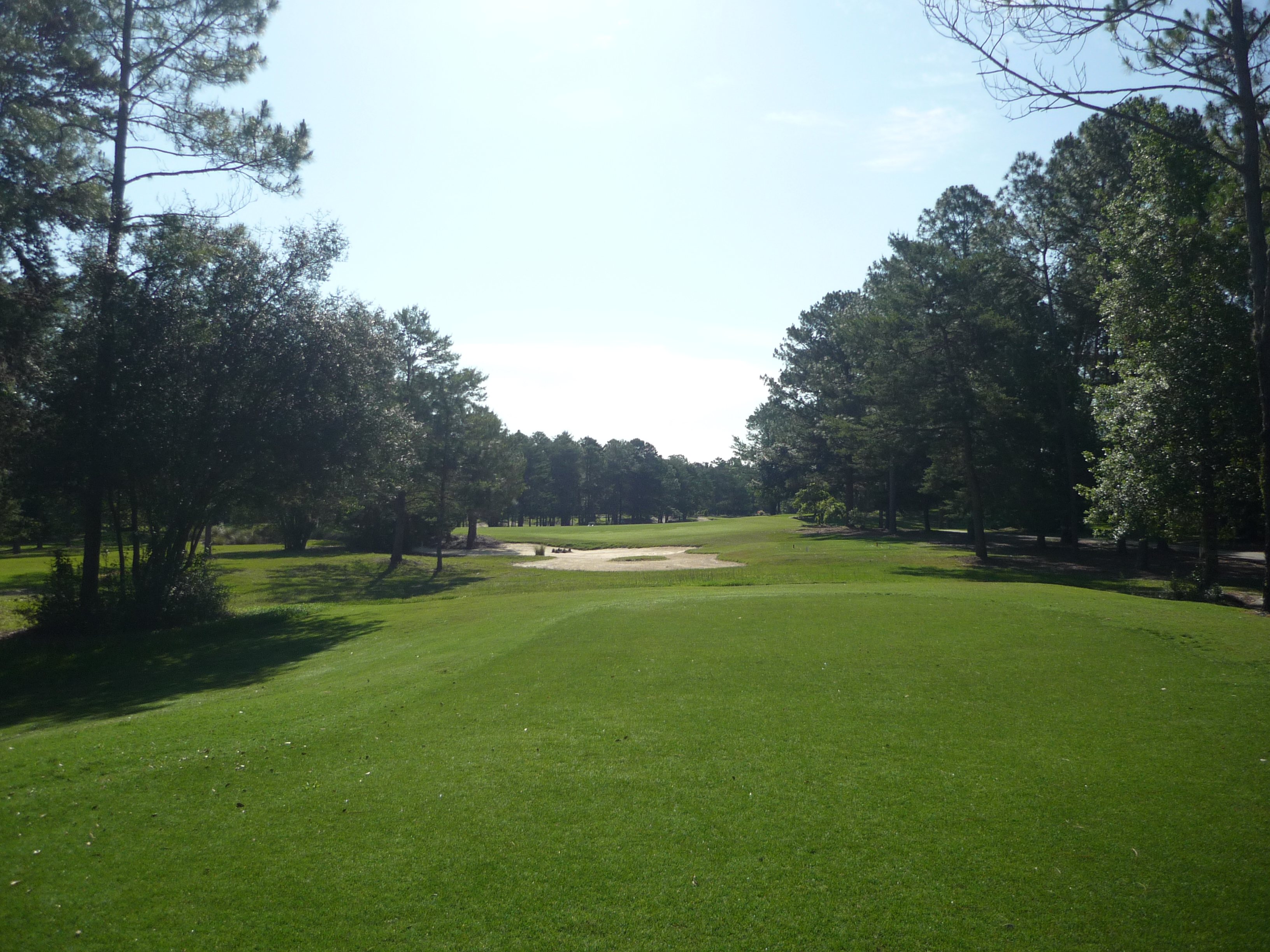 You hit out of a bit of a chute here which guides you on where to hit it. Down the middle here.