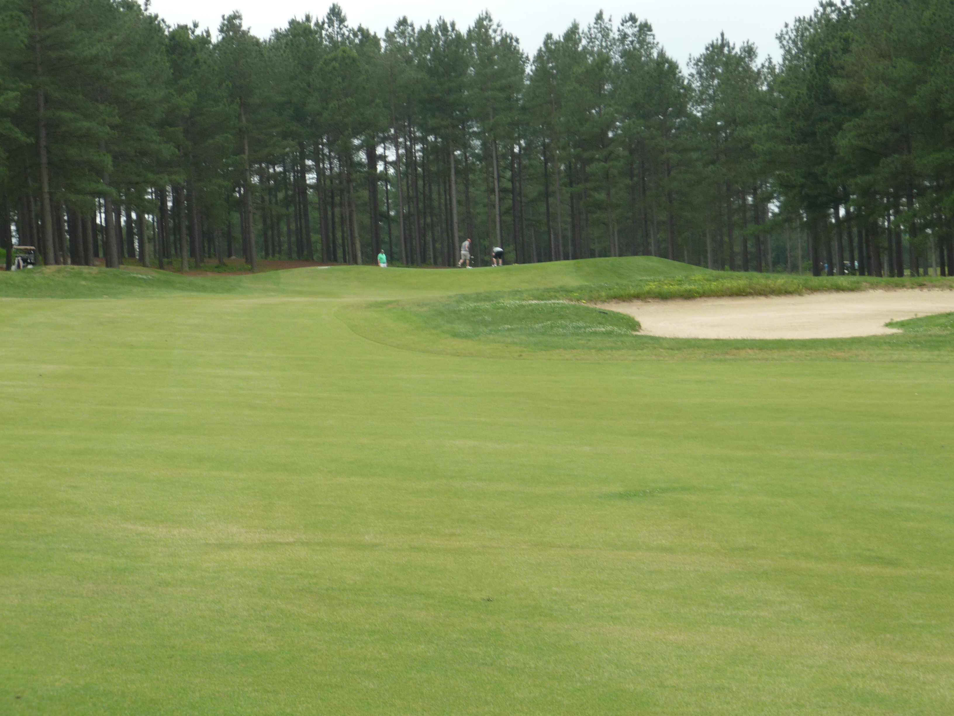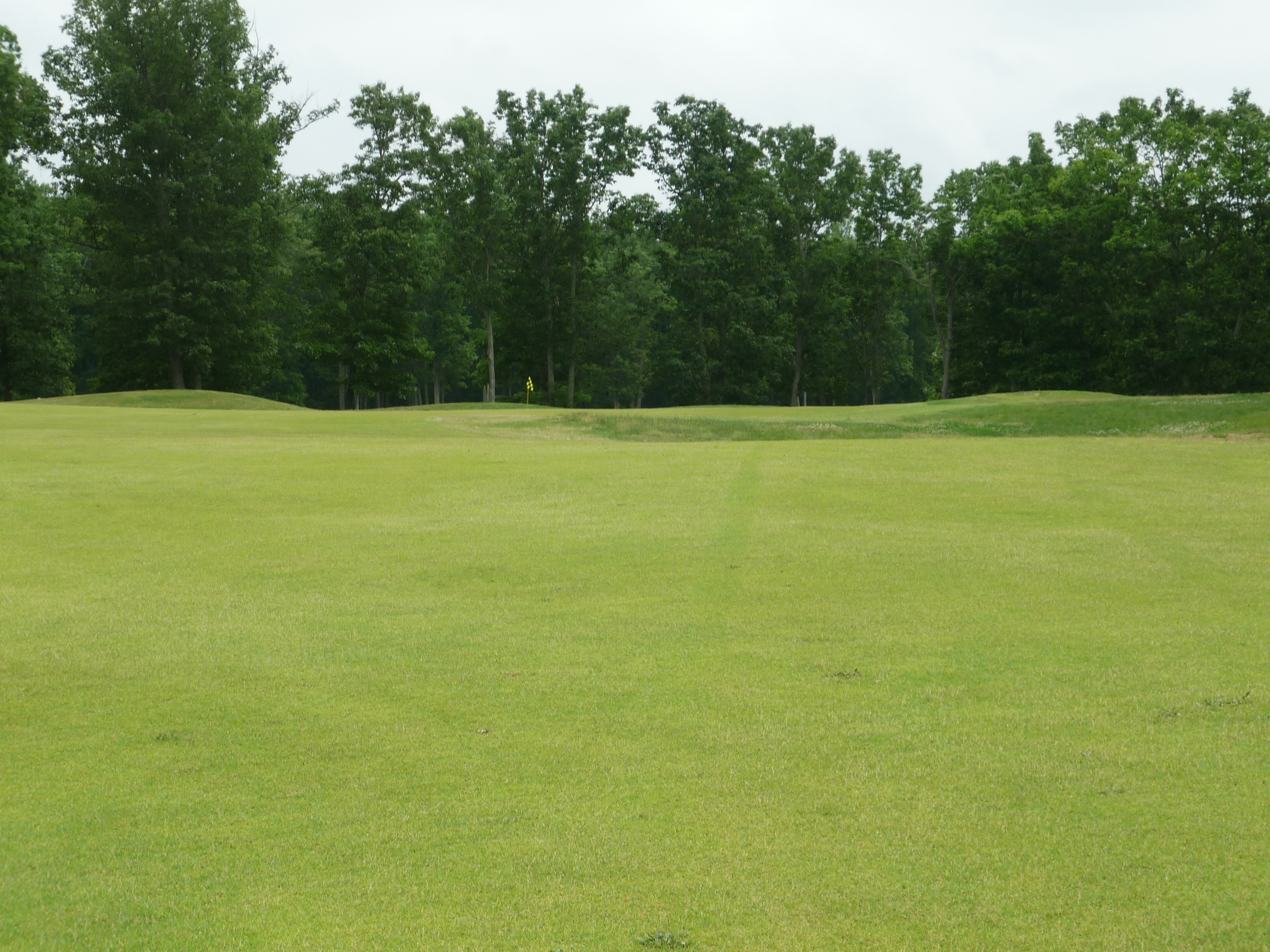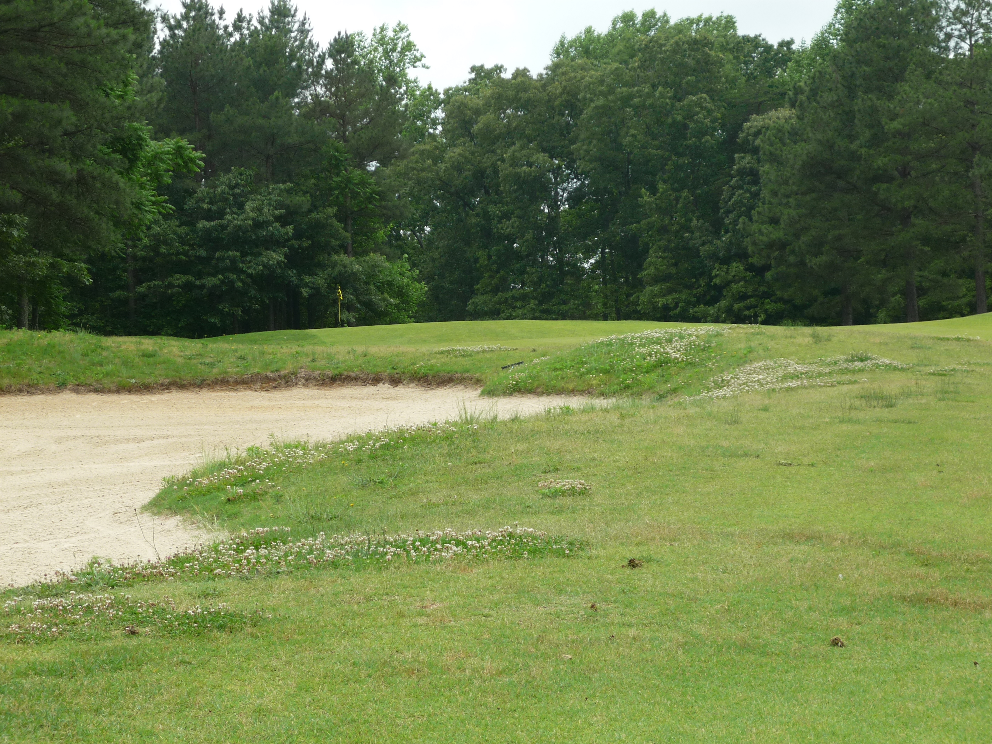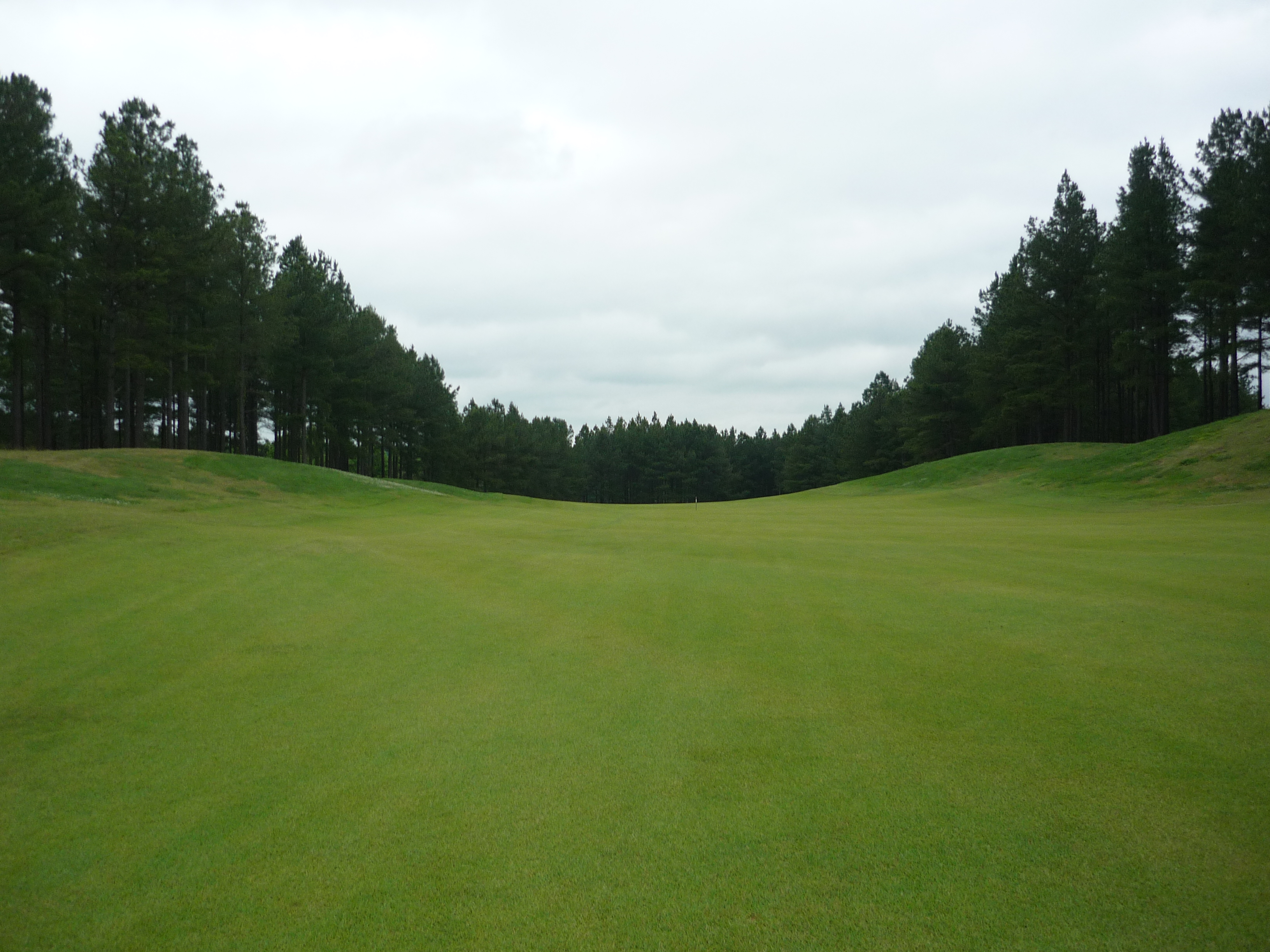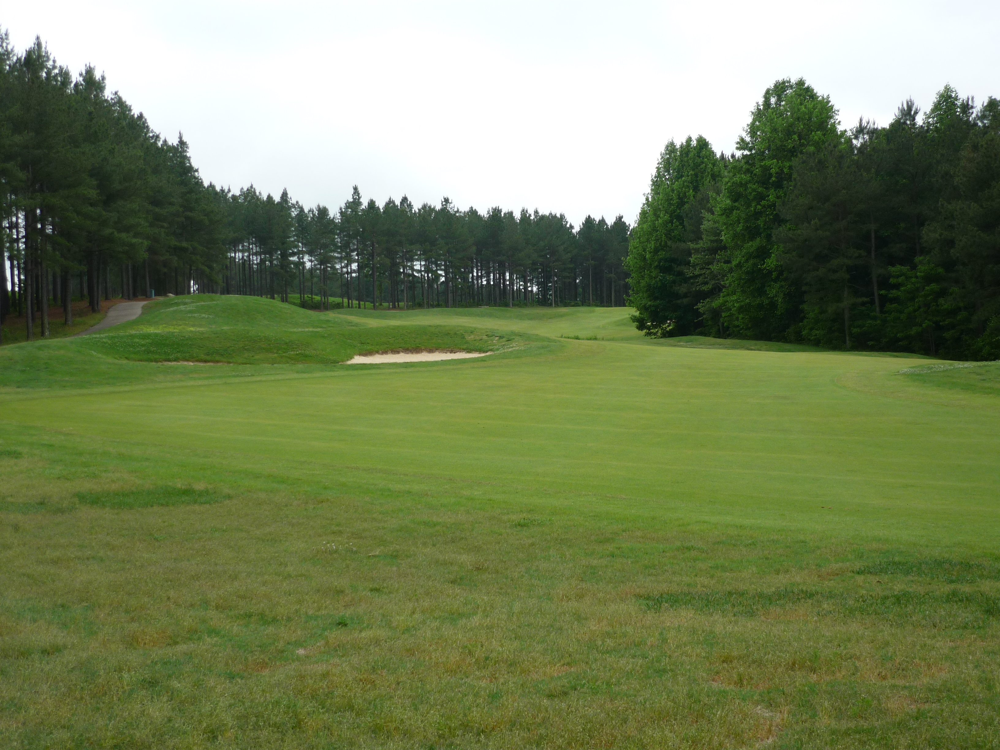 The beginning of the back nine at Mattaponi Springs is not overly difficult. It bends a bit to the right and your line is straightaway towards the bunker you can barely see.